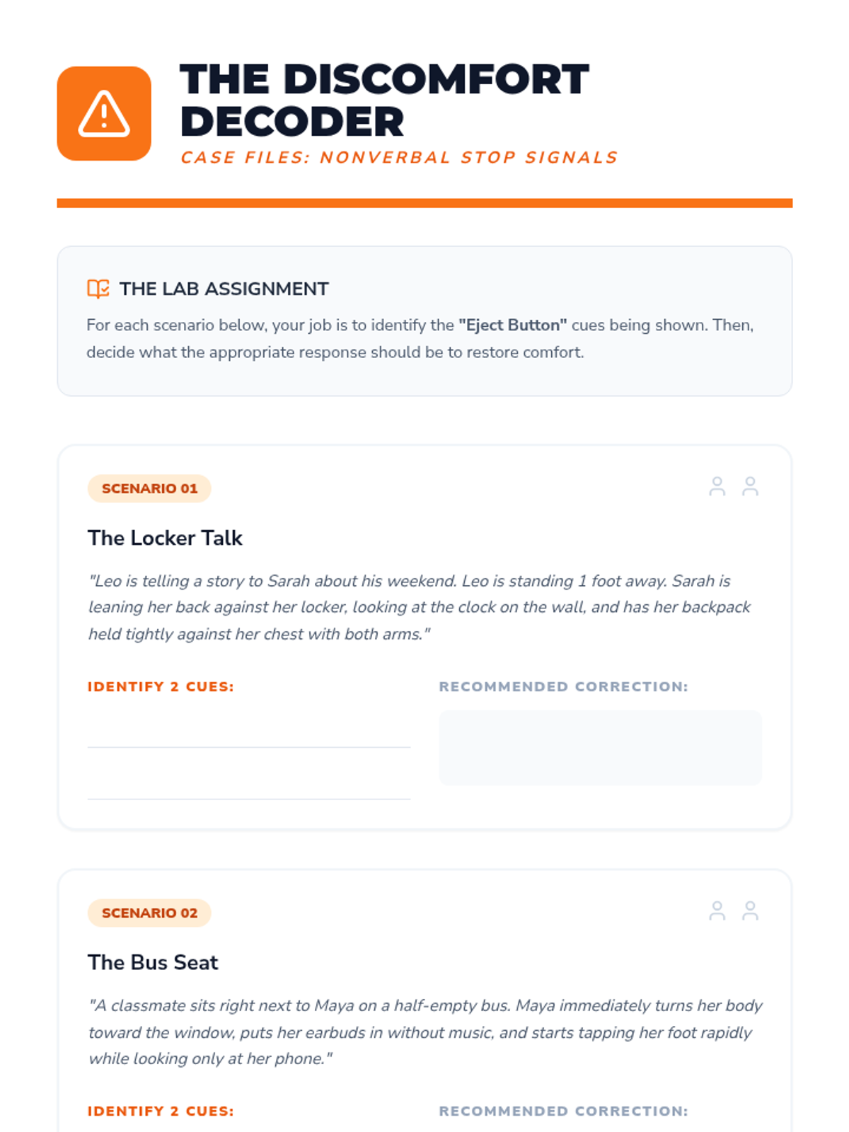 A comprehensive 5-lesson series designed for high school students with intellectual disabilities, Down Syndrome, and autism. The series uses a 'Social Signals' framework to help students distinguish between genuine kindness and manipulative behavior, fostering independence and safety in community settings.