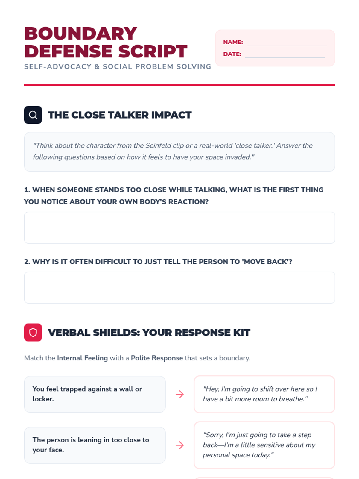 A comprehensive 2-week unit designed for autistic students to explore their identity, identify personal strengths and needs, and master self-advocacy skills in school, work, and community settings.