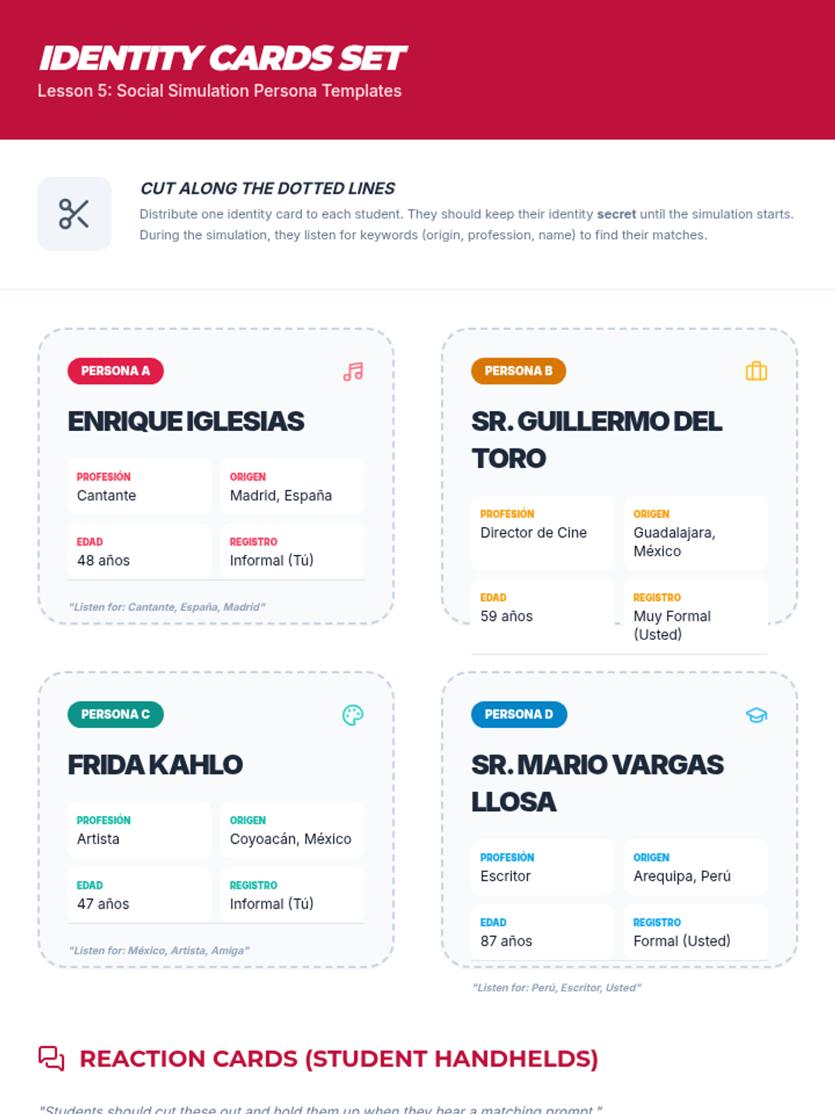 A two-lesson sequence for Spanish class exploring themes of diversity, social tolerance, and empathy through language and cultural connection. Students develop vocabulary to describe identity and practice perspective-taking to build inclusive communities.