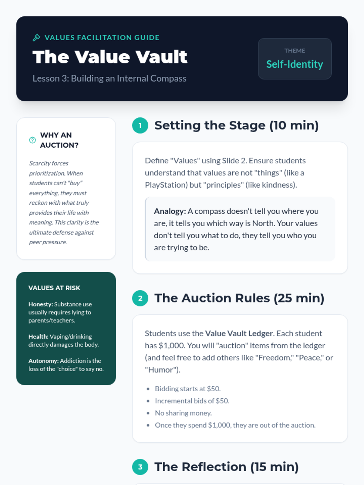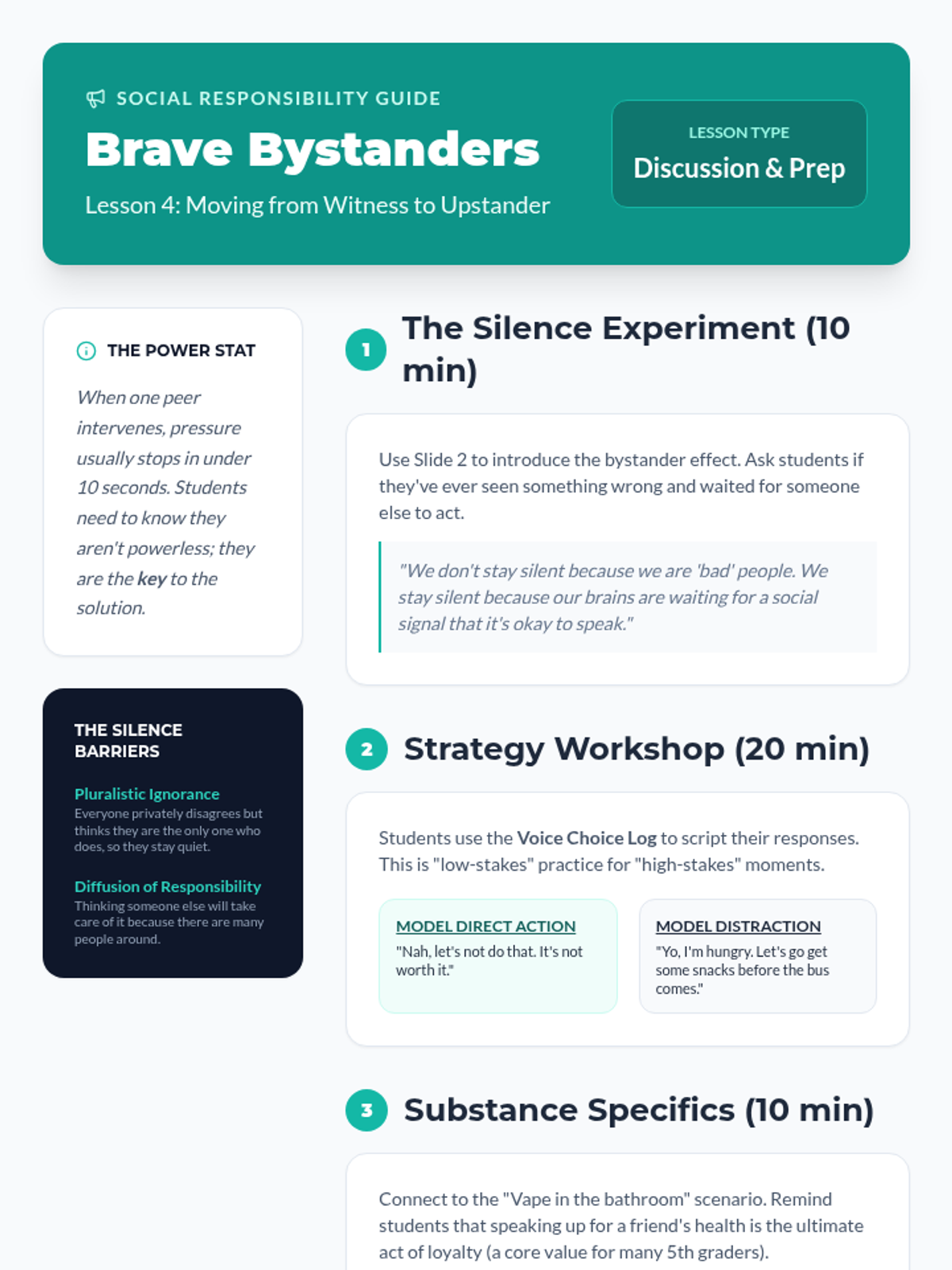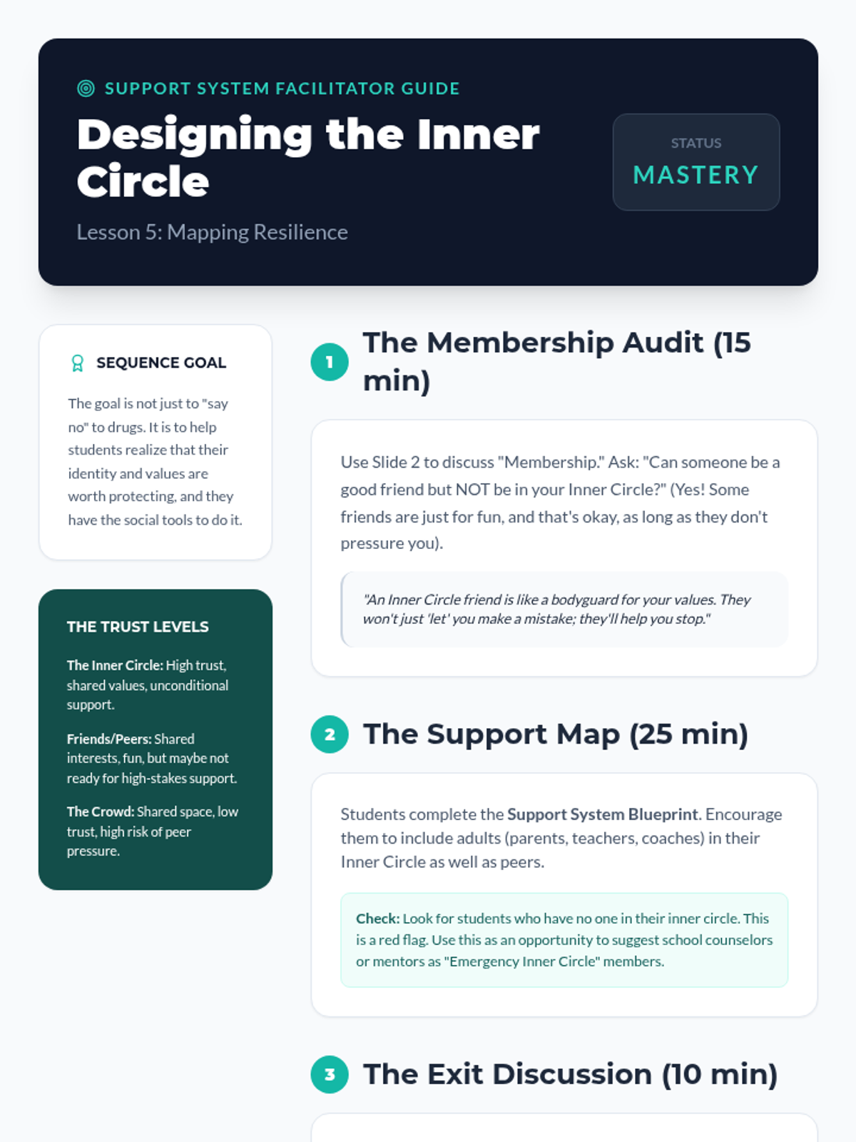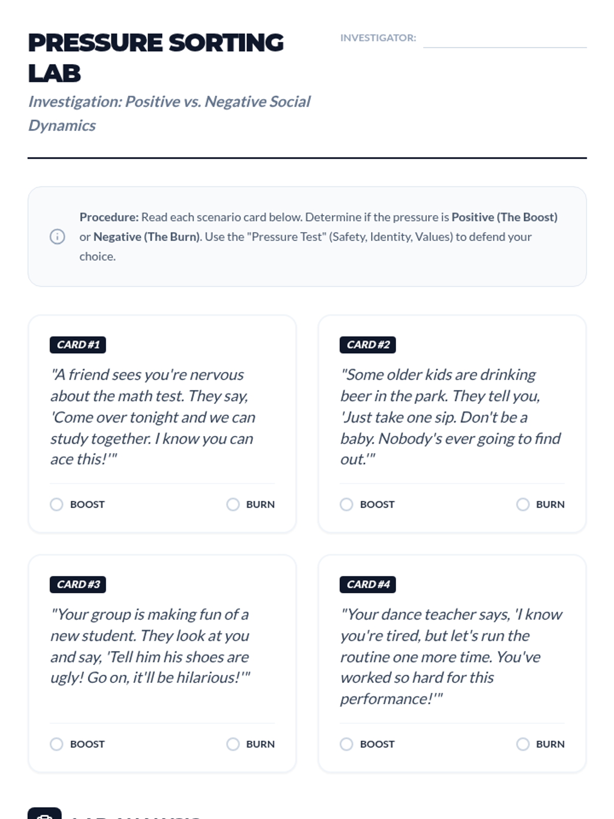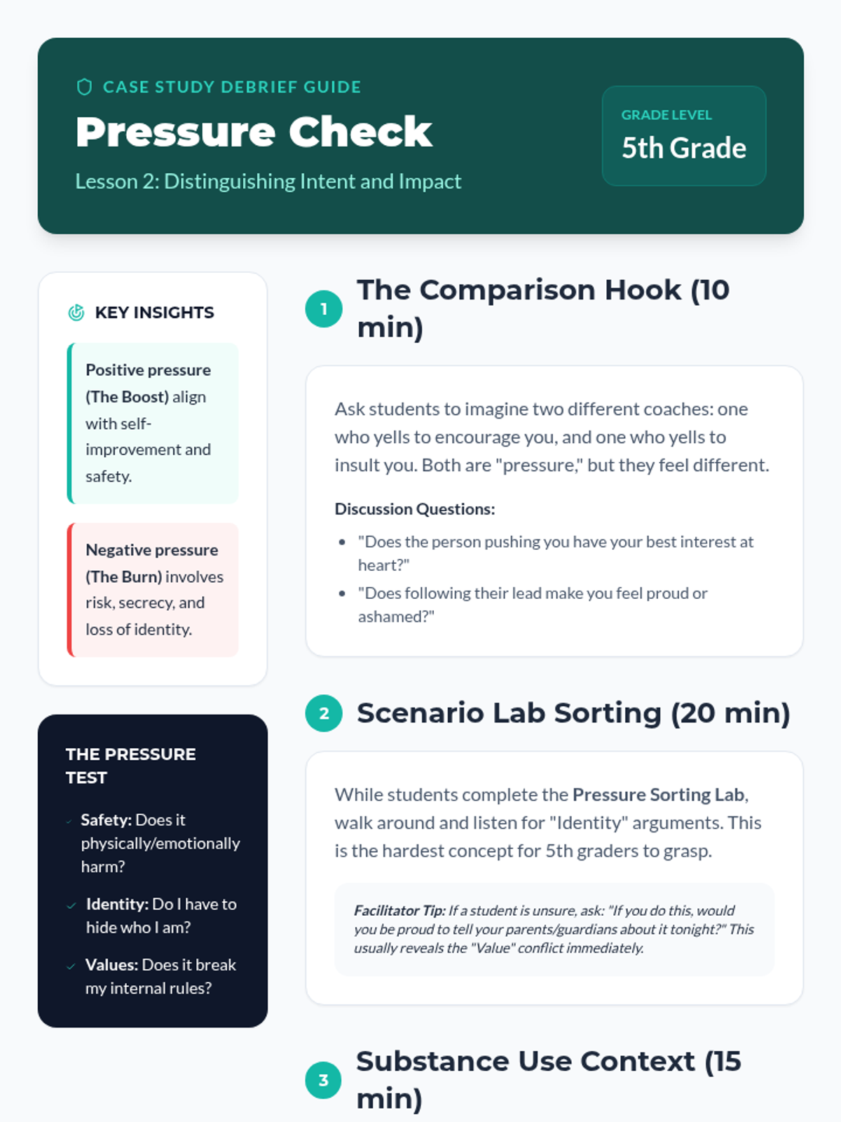 An inquiry-based sequence exploring the psychology of belonging, the nature of peer pressure, and the power of personal values. Students investigate social dynamics to build resilience and decision-making skills in high-risk situations involving substance use.