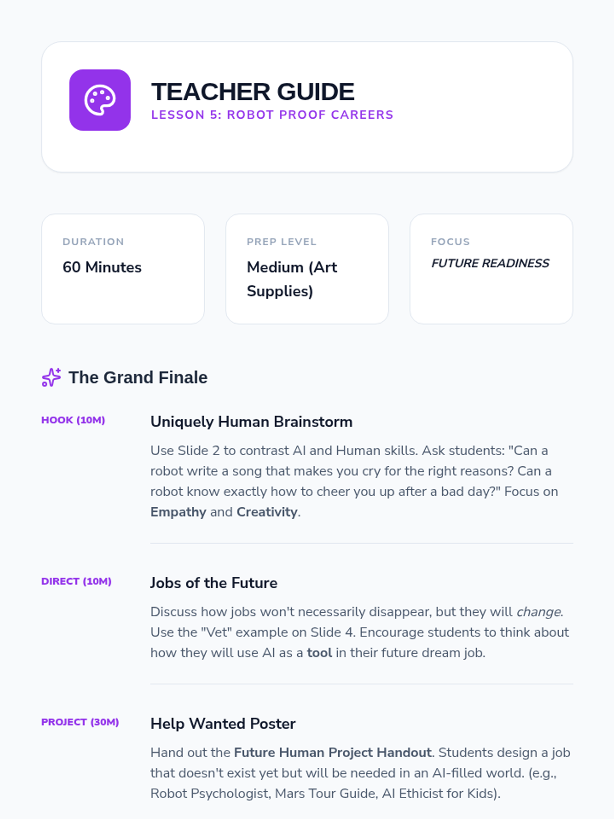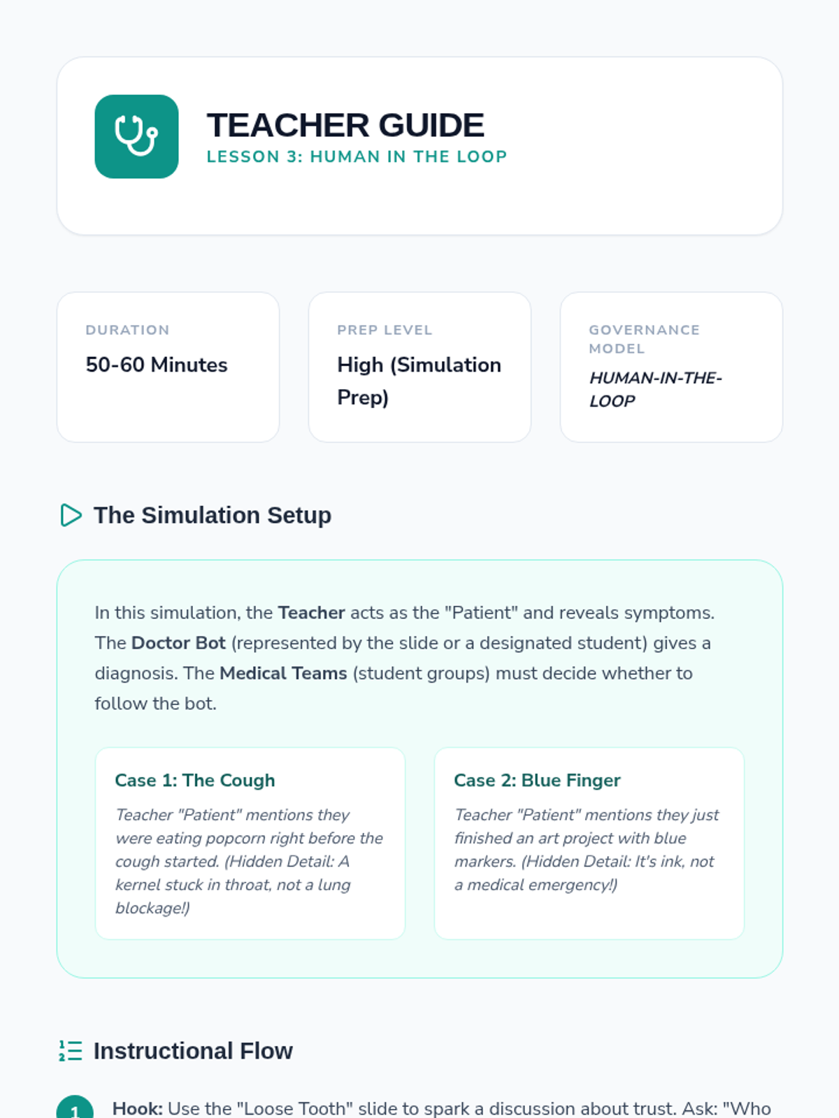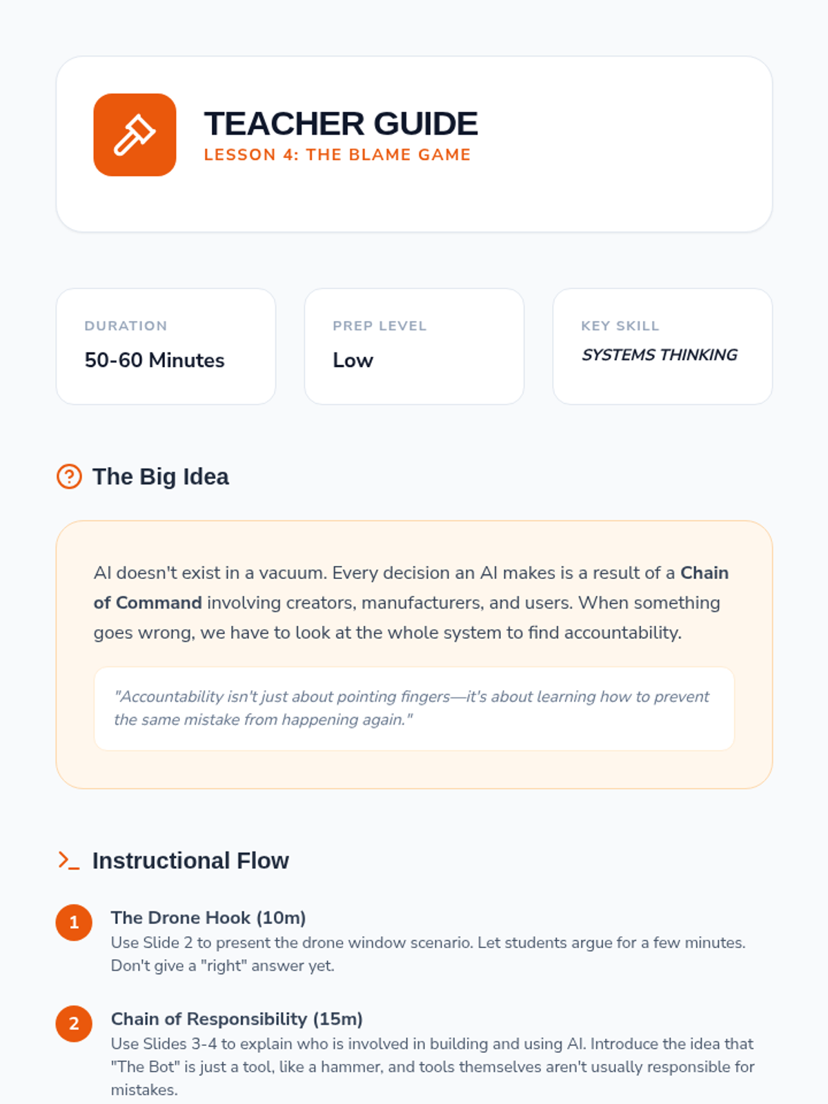 This sequence explores the societal impacts of AI, focusing on automation, responsibility, and the 'human-in-the-loop' concept. Students engage with case studies and simulations to understand the ethical complexities of AI integration in their communities and future careers.