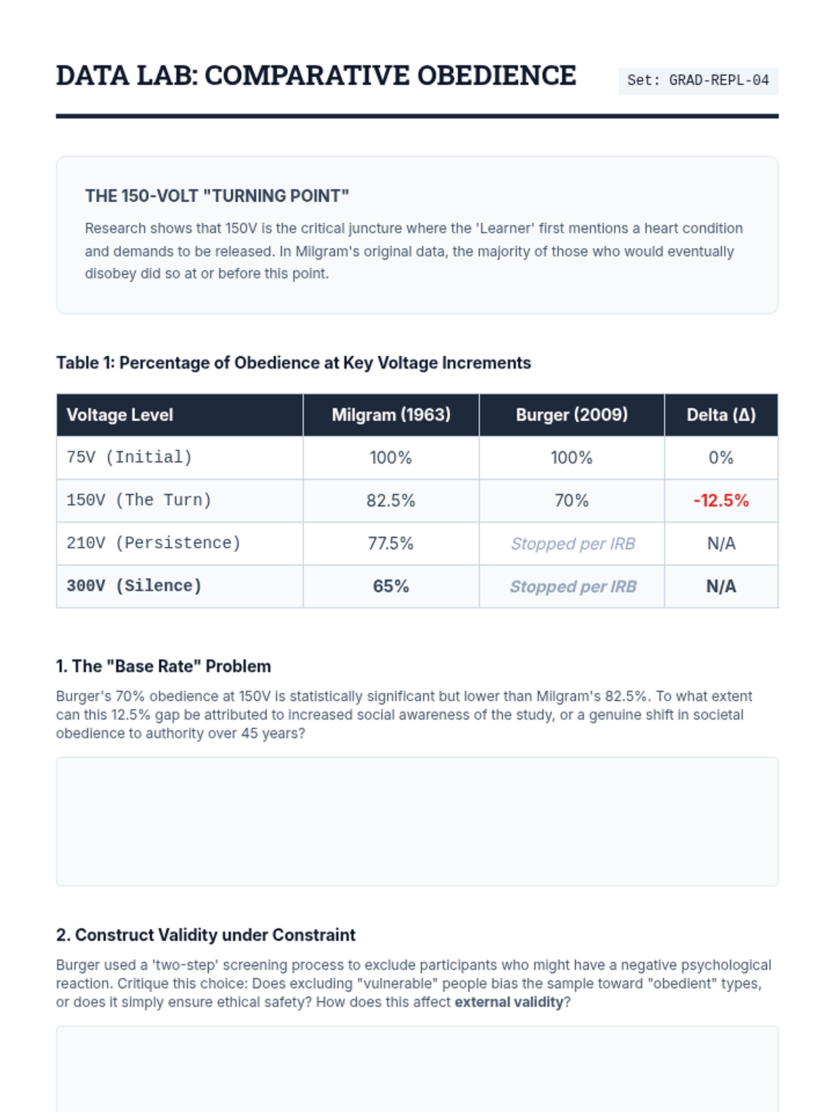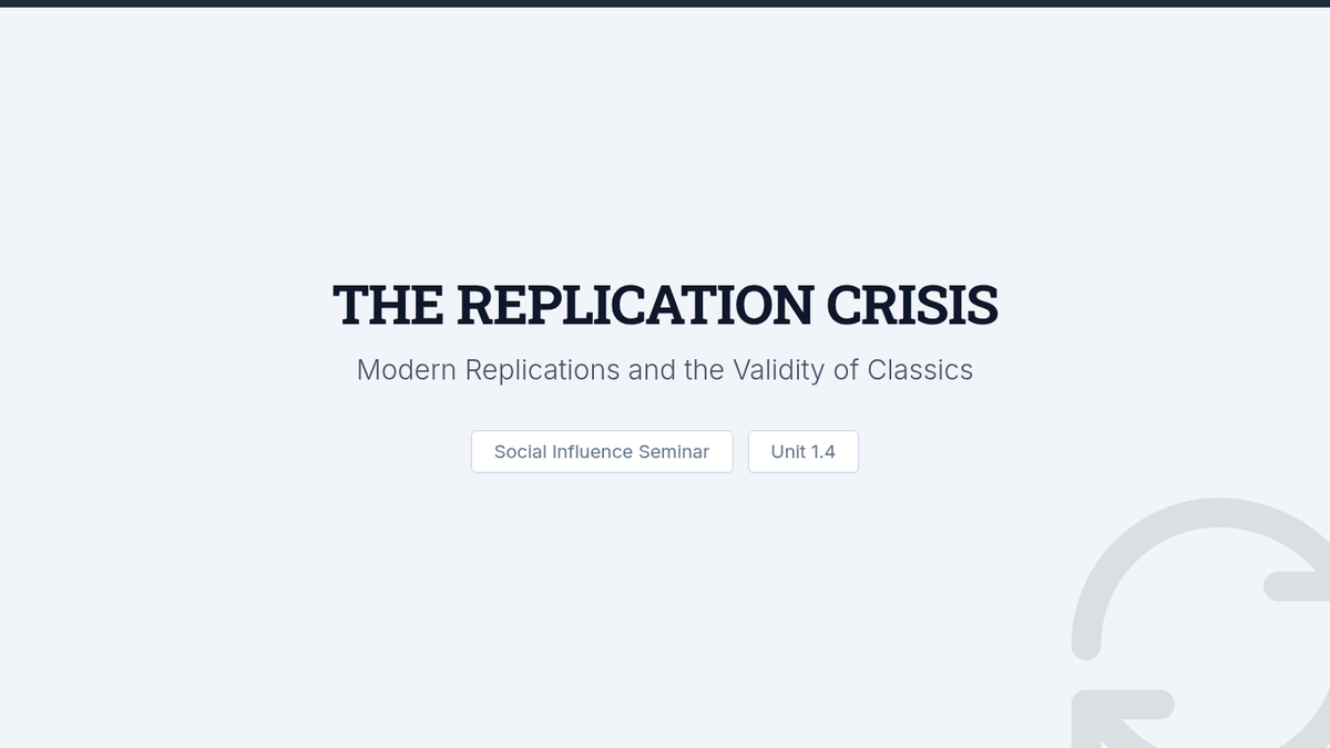 An advanced seminar sequence for graduate students deconstructing classic social influence research. The sequence focuses on methodological critique, ethical controversies, and the replication crisis surrounding Milgram, Zimbardo, and Asch.