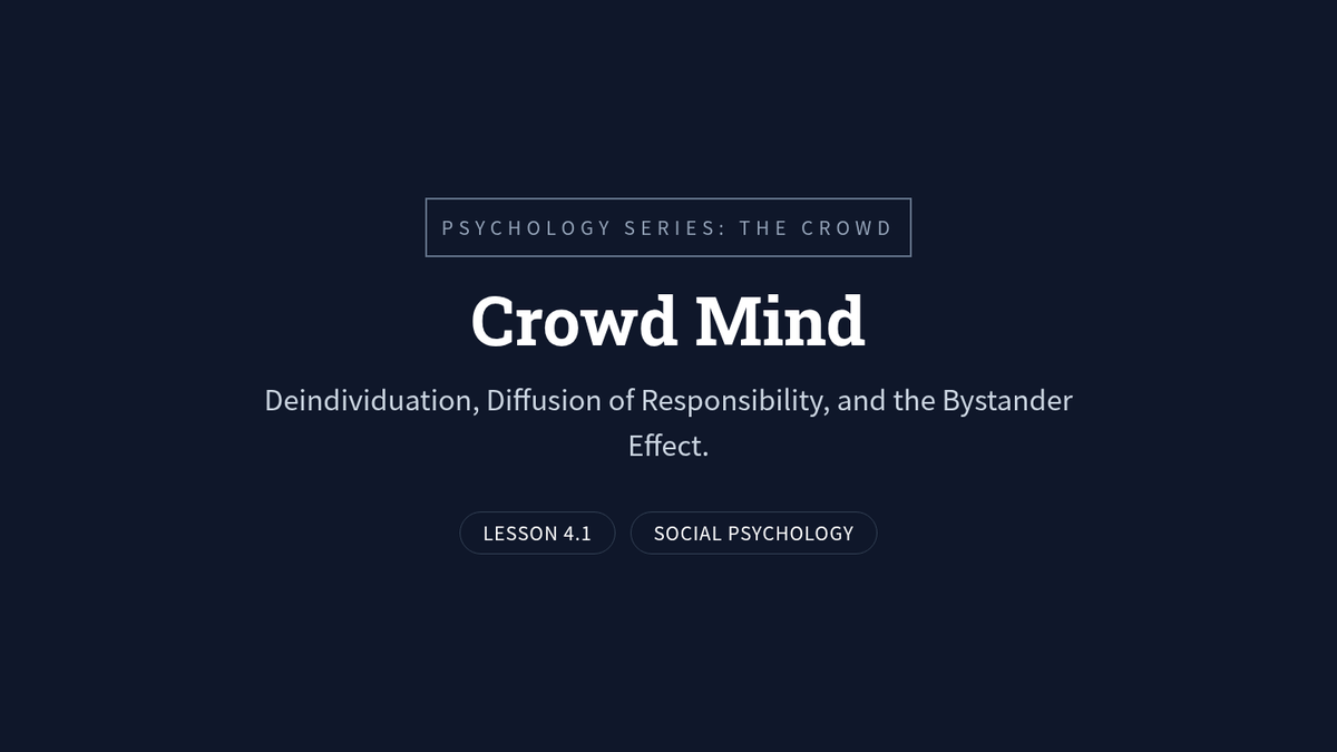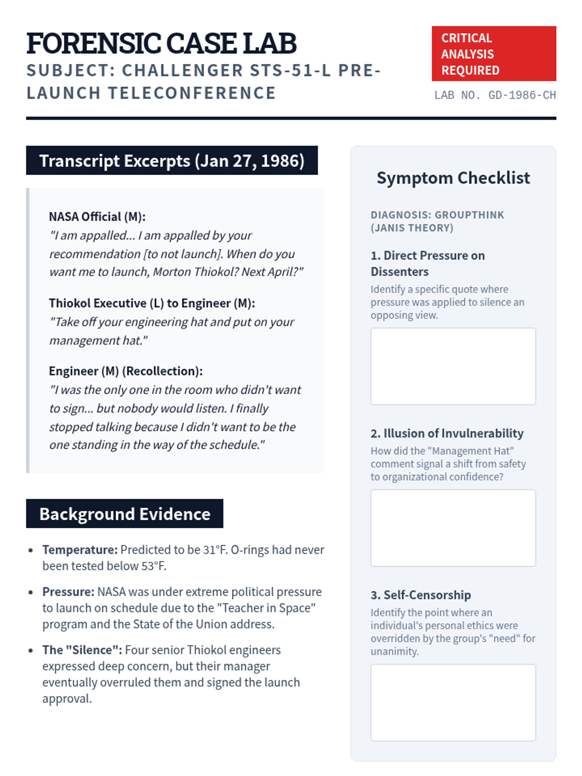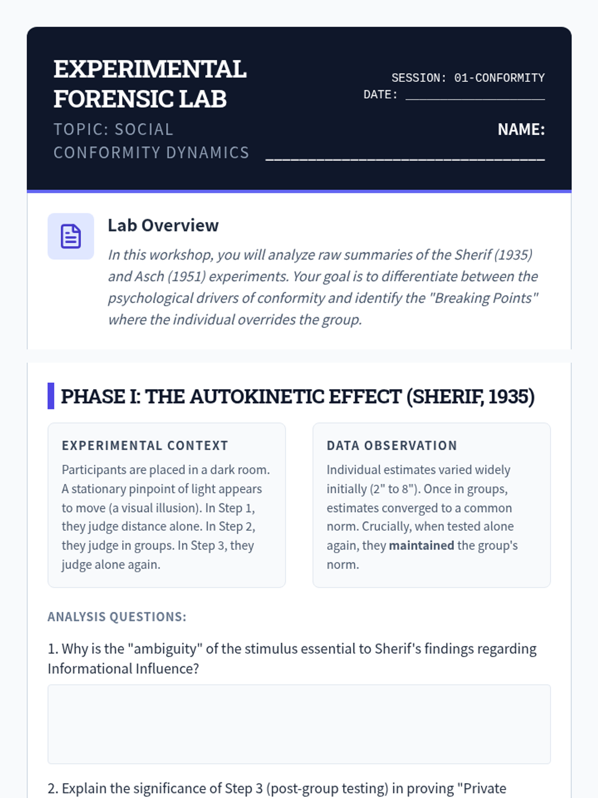 An advanced undergraduate psychology sequence examining the social forces that override individual agency, from classic experiments in obedience to complex group decision-making failures.