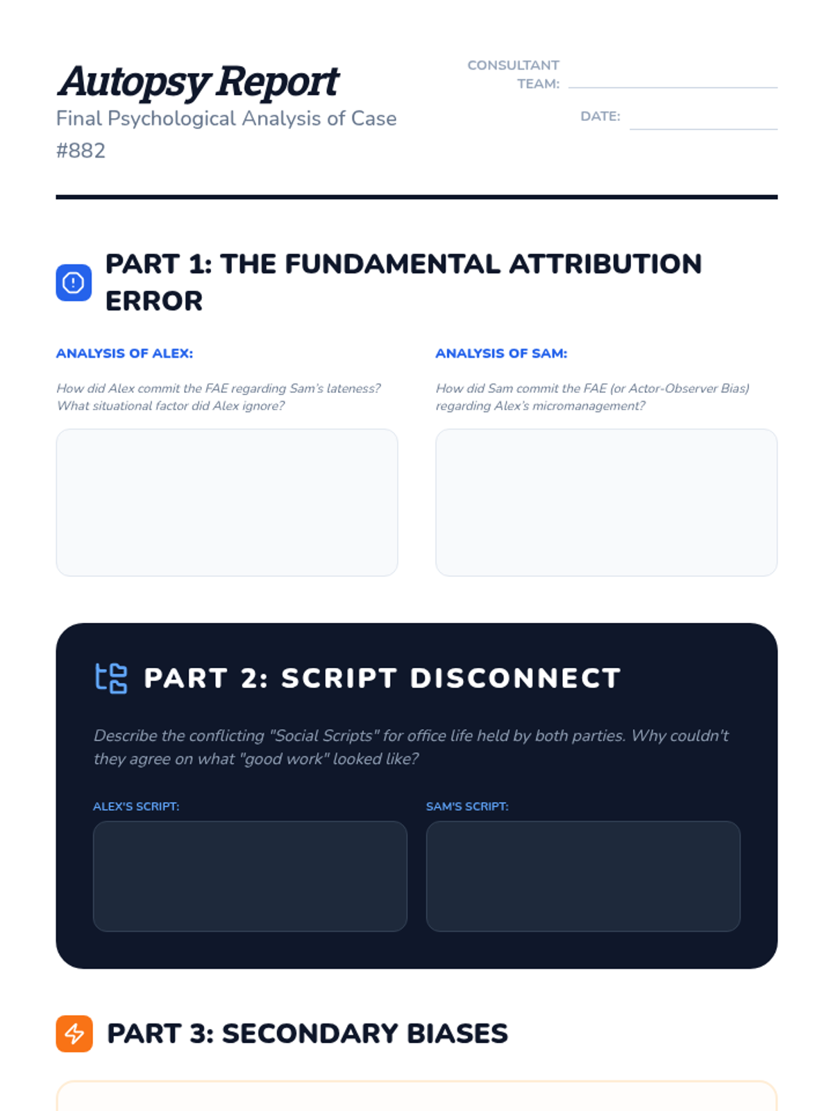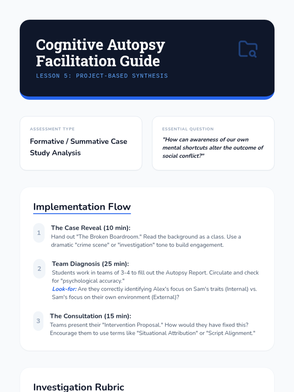 A 5-lesson sequence for 11th-grade Psychology students exploring social cognition, including schemas, attribution theory, and cognitive biases. Students move from understanding internal mental frameworks to analyzing complex social conflicts through a psychological lens.