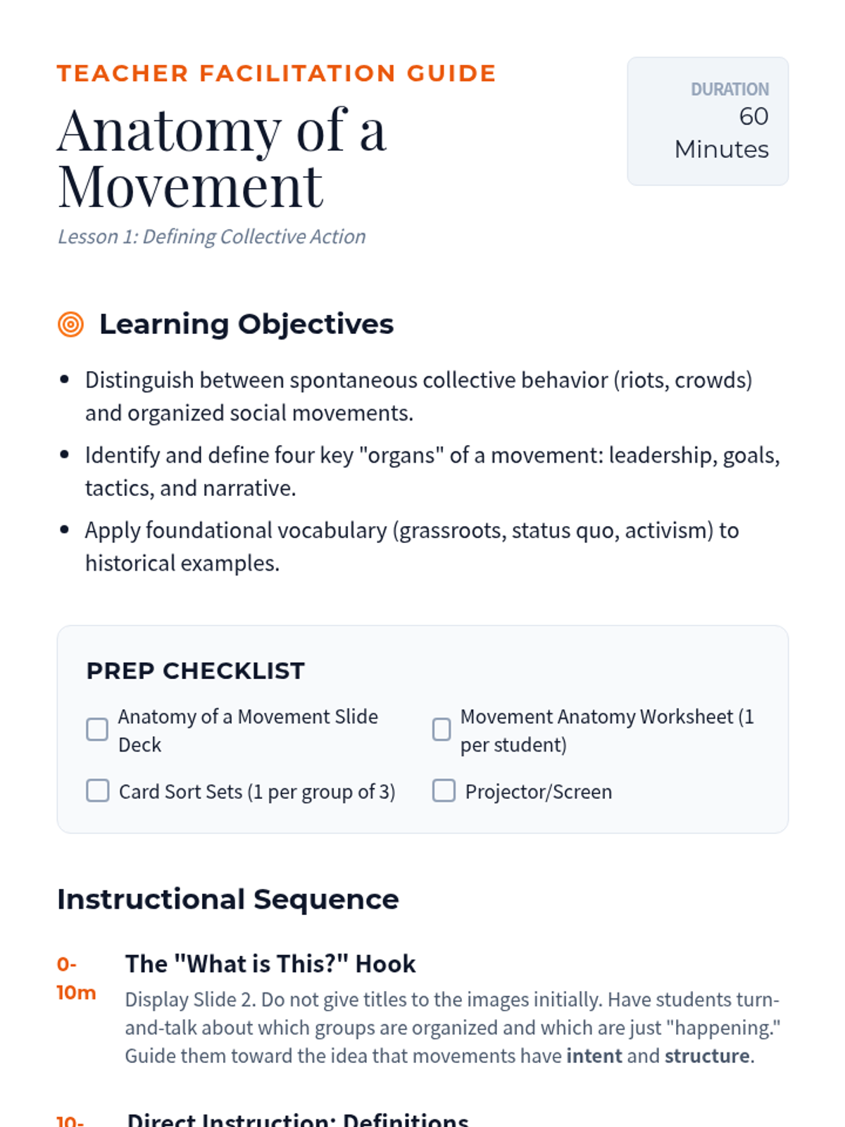 A comprehensive unit for 7th-grade students exploring how grassroots organizations leverage collective power to influence public policy and societal norms, featuring historical case studies and modern comparisons.