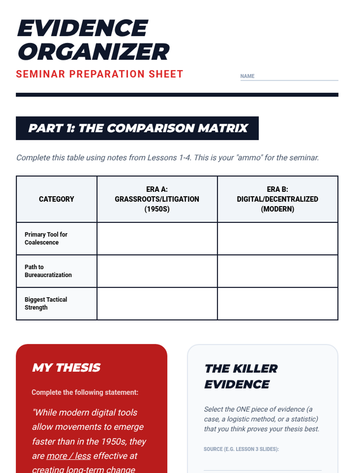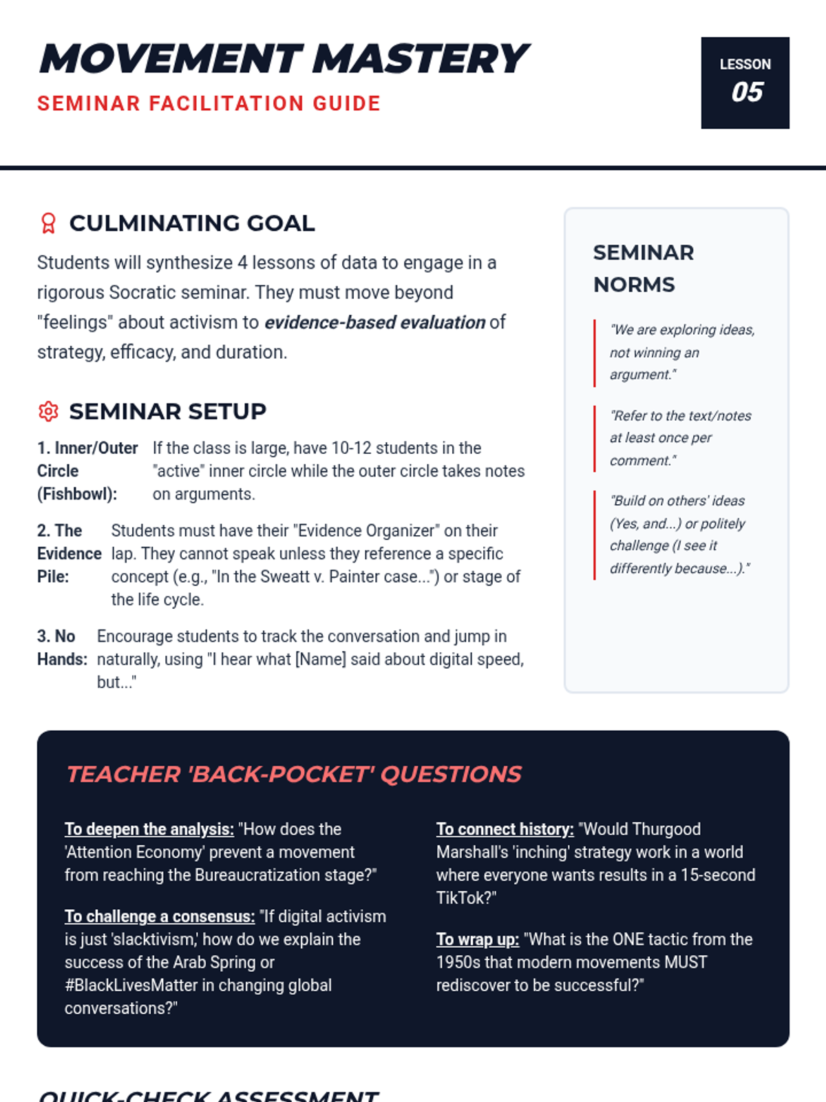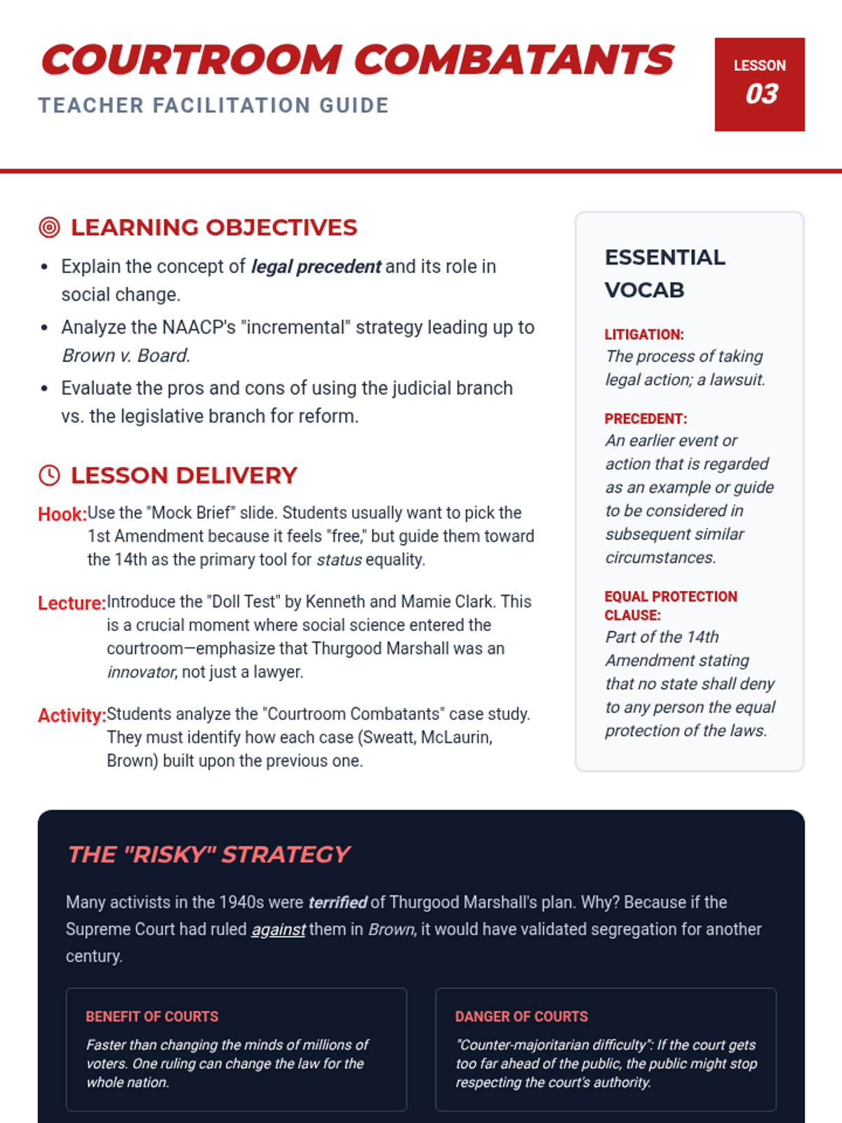 A comprehensive 5-lesson unit for 11th-grade students examining the evolution of social movements from 20th-century grassroots organizing to 21st-century digital activism. Students analyze the life cycle of movements, the power of litigation, and the effectiveness of modern decentralized campaigns through comparative study.