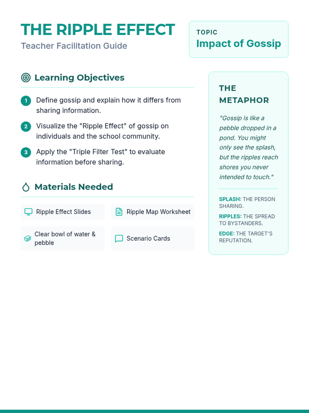 A series of social-emotional learning lessons for 6th graders focused on navigating complex social dynamics, including peer pressure and the impact of gossip.