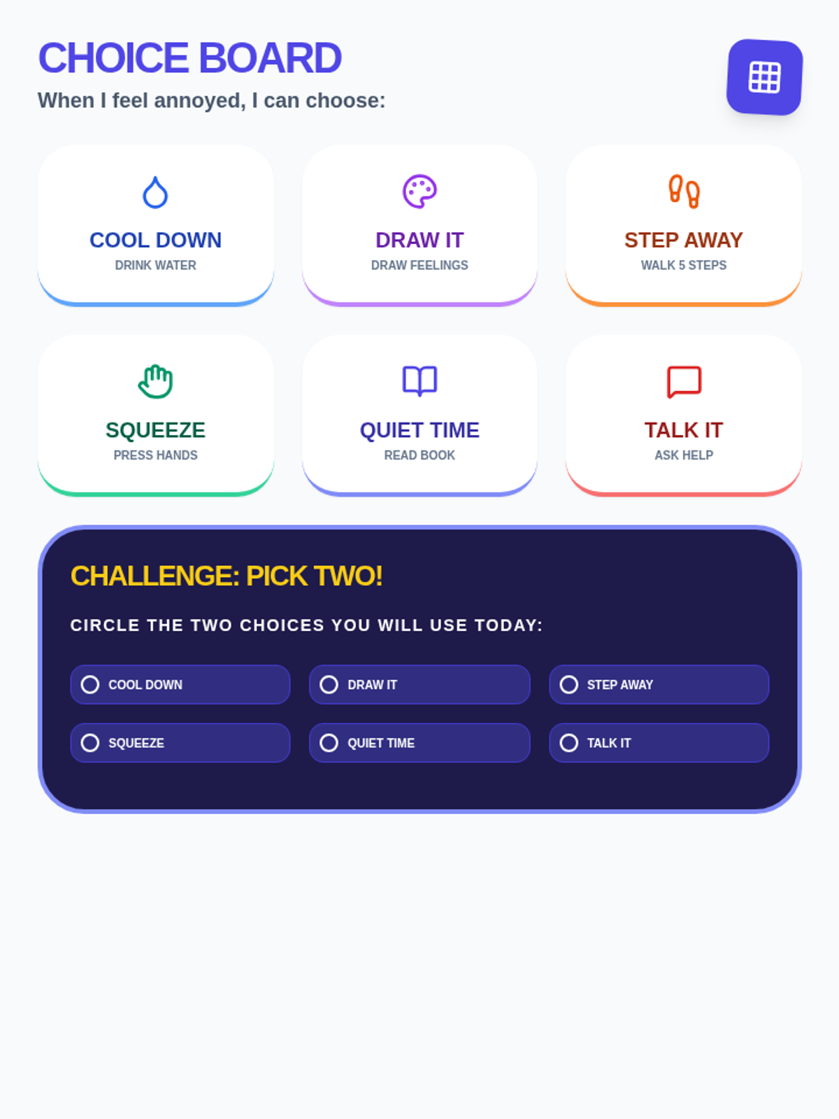 A collection of lessons focused on essential social-emotional skills across primary grades, including anger management, following directions, and mindfulness.