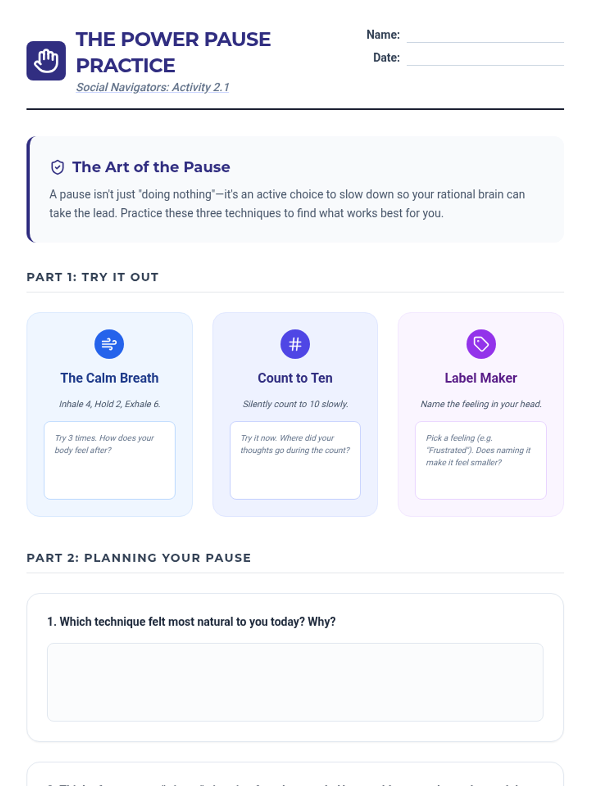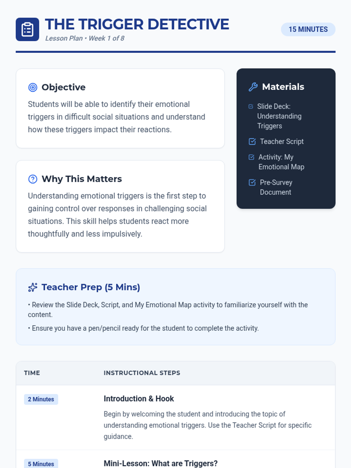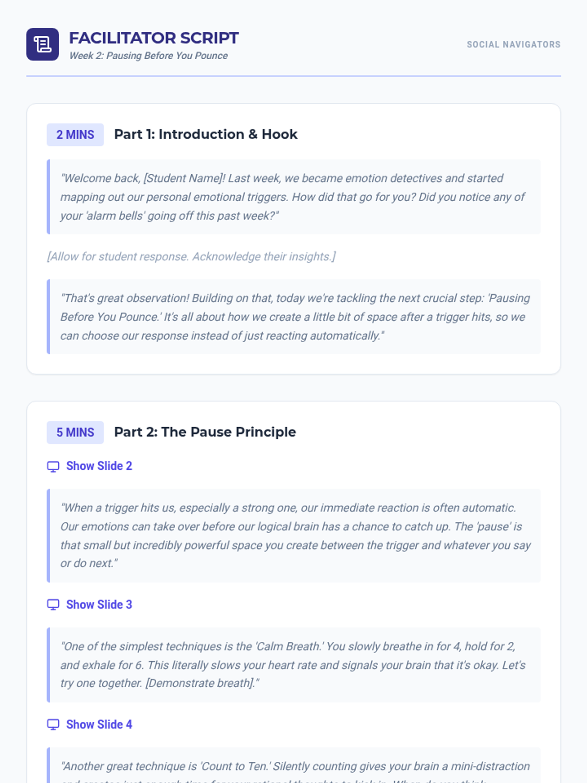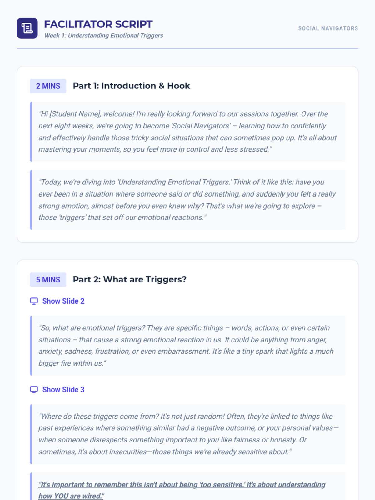 An 8-week individualized Tier 3 support program designed to empower 9th-grade students with strategies for navigating challenging social situations, managing triggers, and building social confidence.