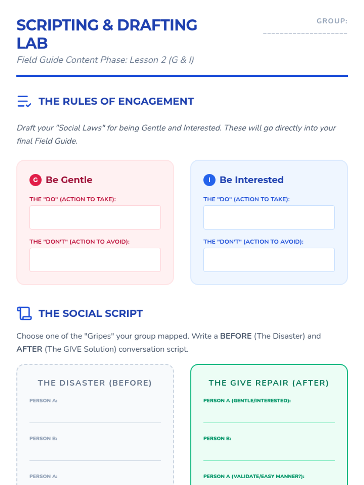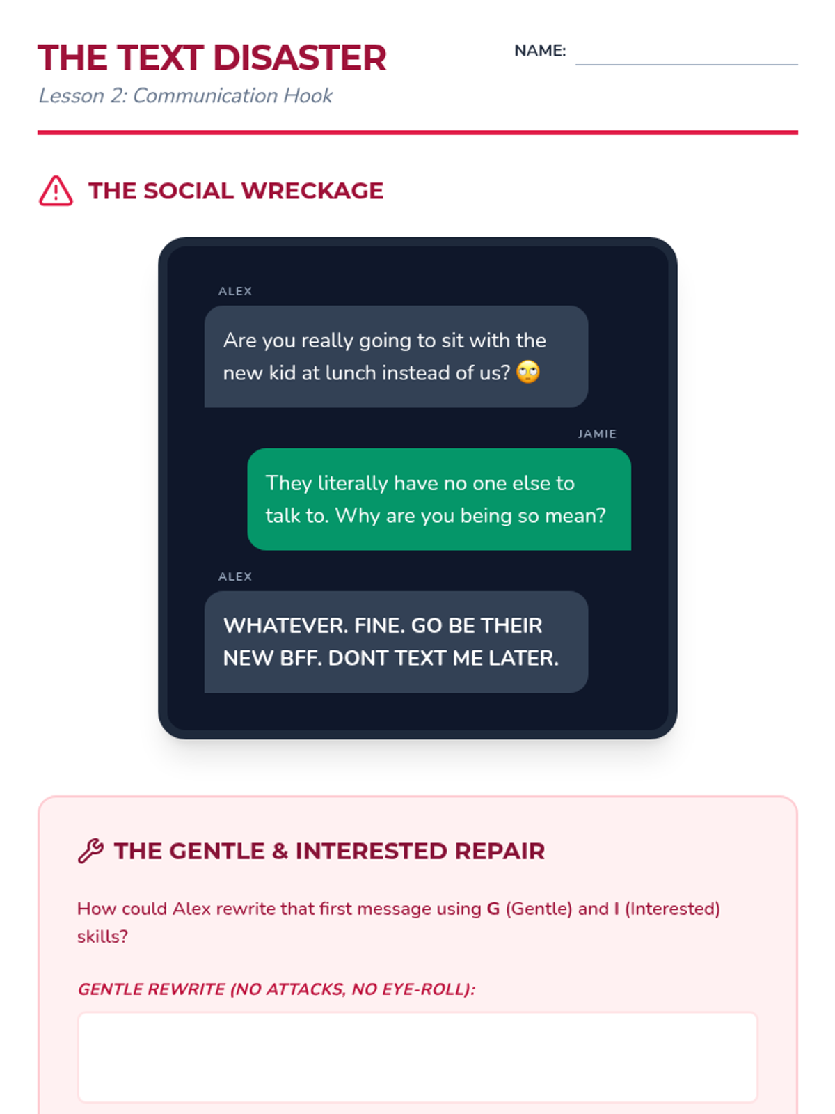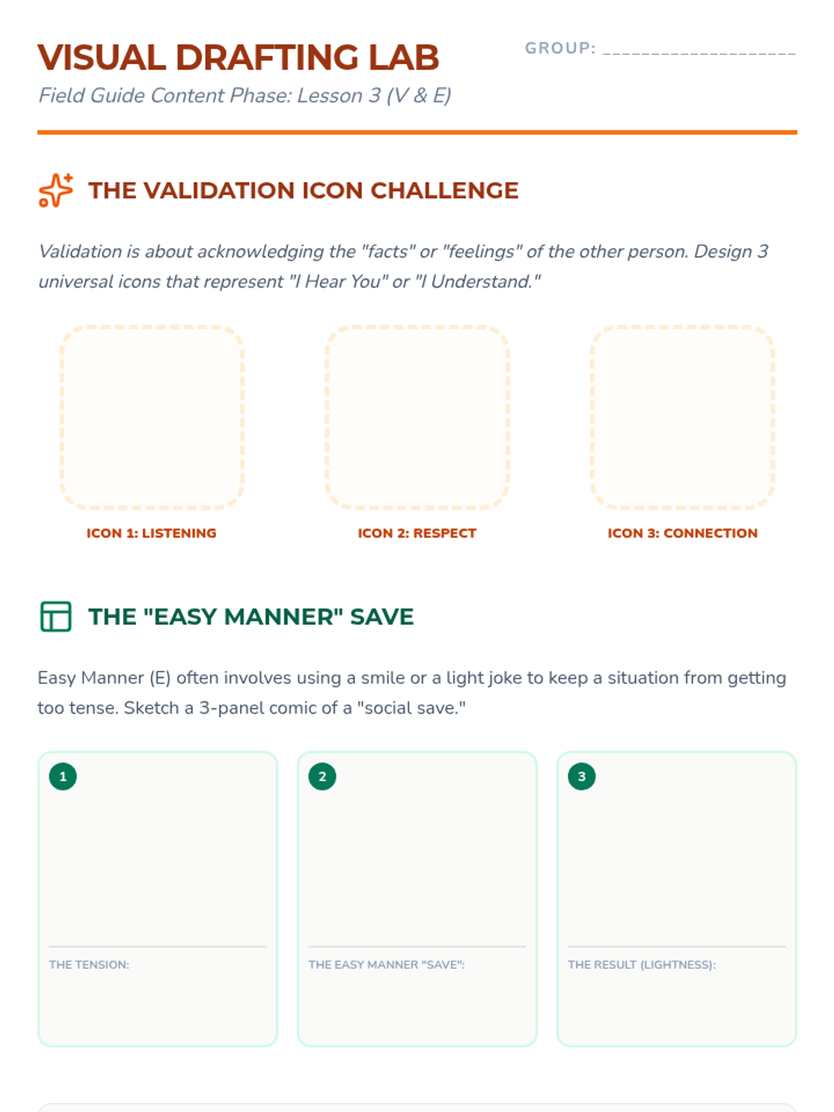 A project-based sequence where 6th-grade students research relationship pitfalls and create a 'Field Guide to Middle School Friendships' using the GIVE skills (Gentle, Interested, Validate, Easy Manner). Students synthesize DBT interpersonal effectiveness skills into peer-to-peer teaching tools like zines, videos, or posters.