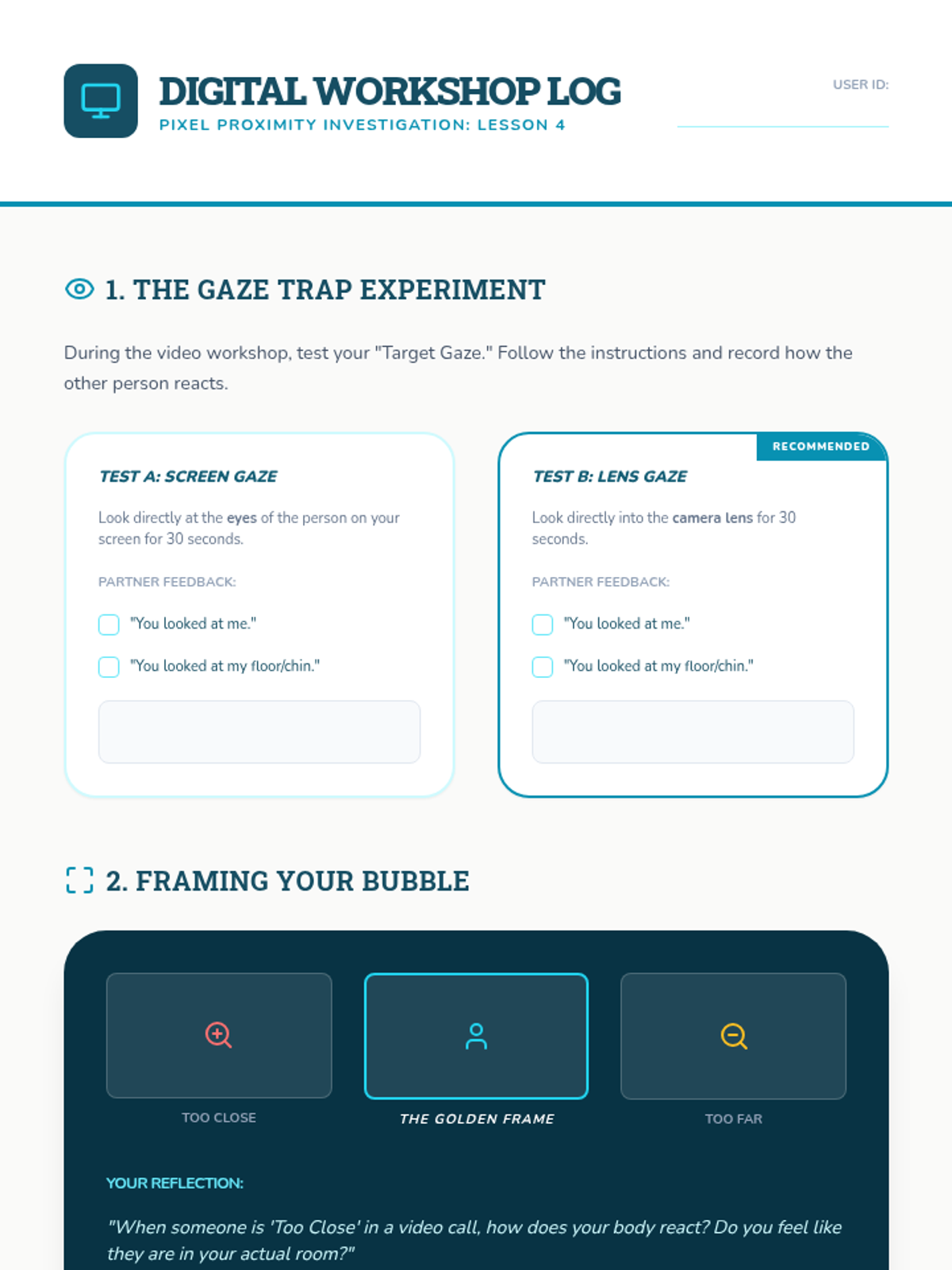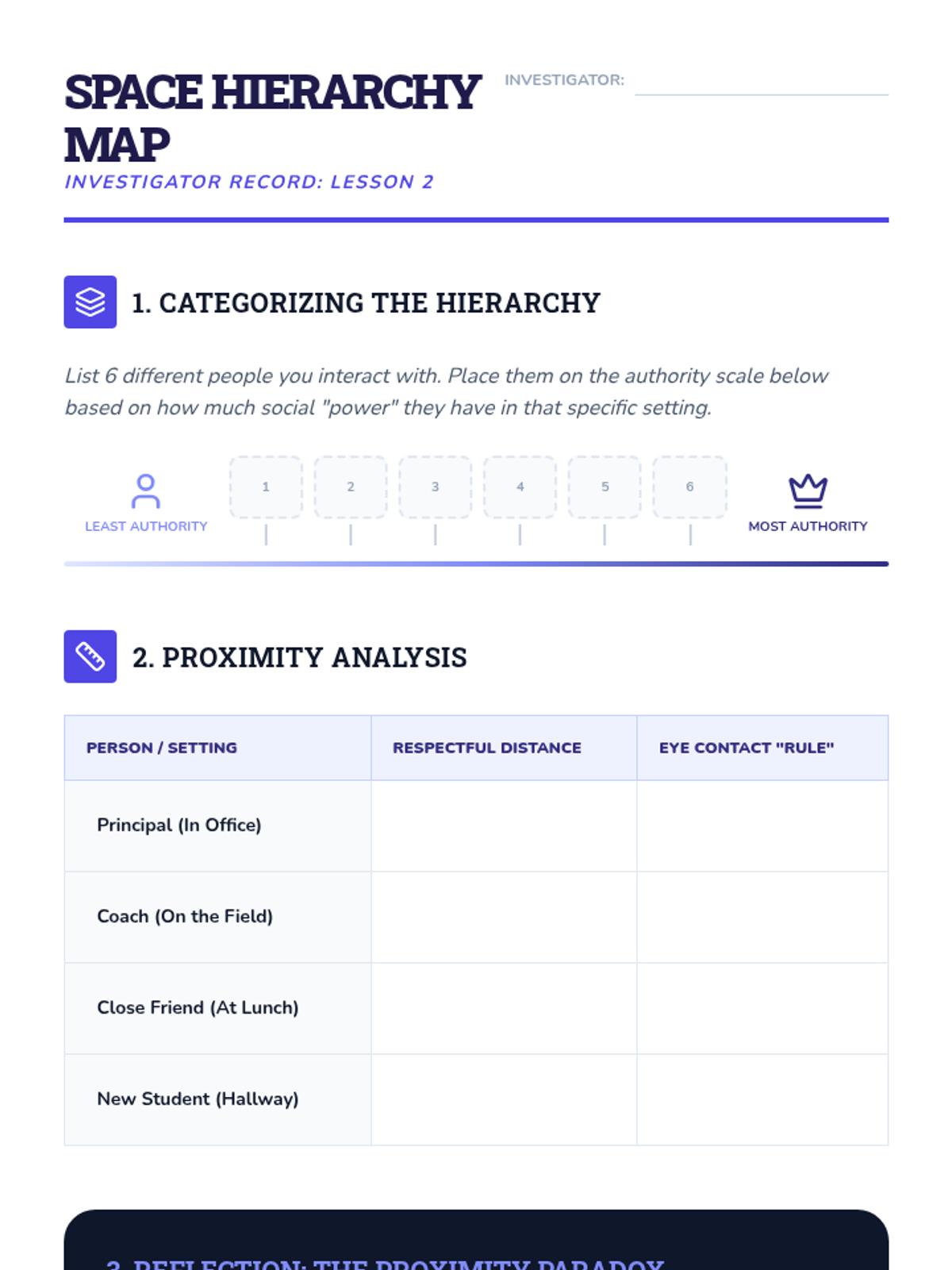 A research-driven sequence exploring social communication norms. Students act as social scientists to investigate how culture, authority, and environment influence eye contact and personal space, culminating in a school-specific field guide.
