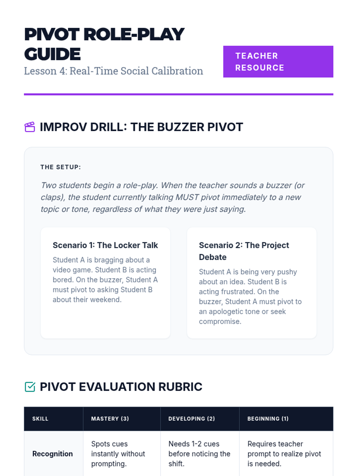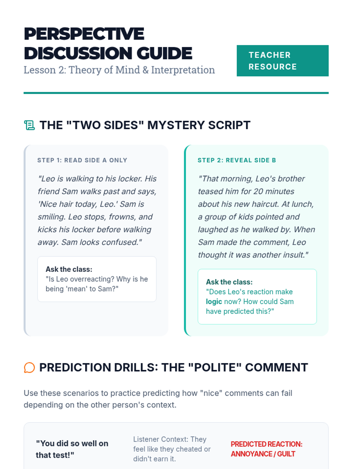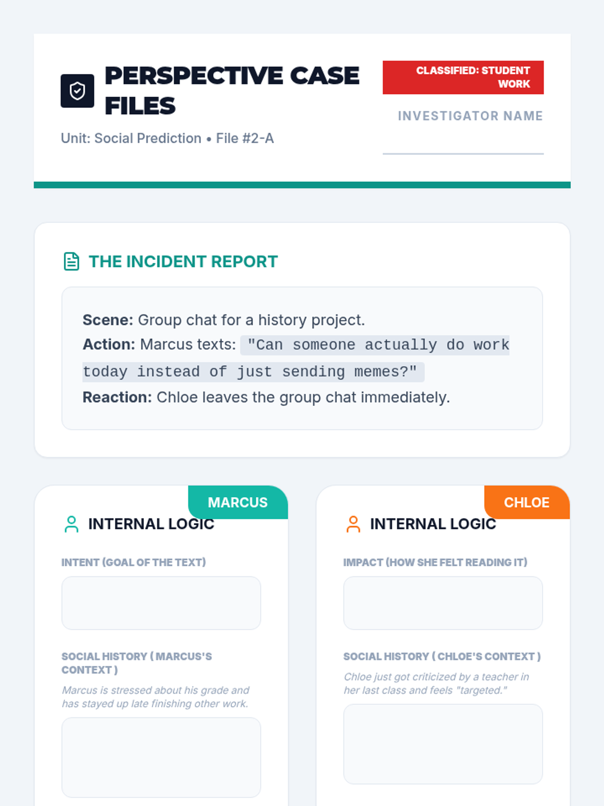A 5-lesson unit designed for 10th-grade students to develop 'If-Then' thinking in social interactions. Students use game-based logic and predictive analysis to understand cause and effect, take perspectives, read dynamic cues, and plan for real-world social success.