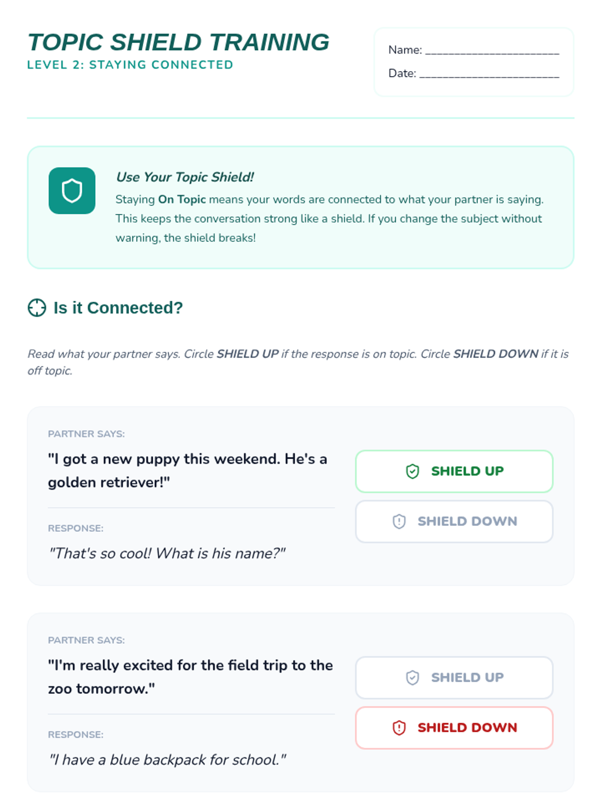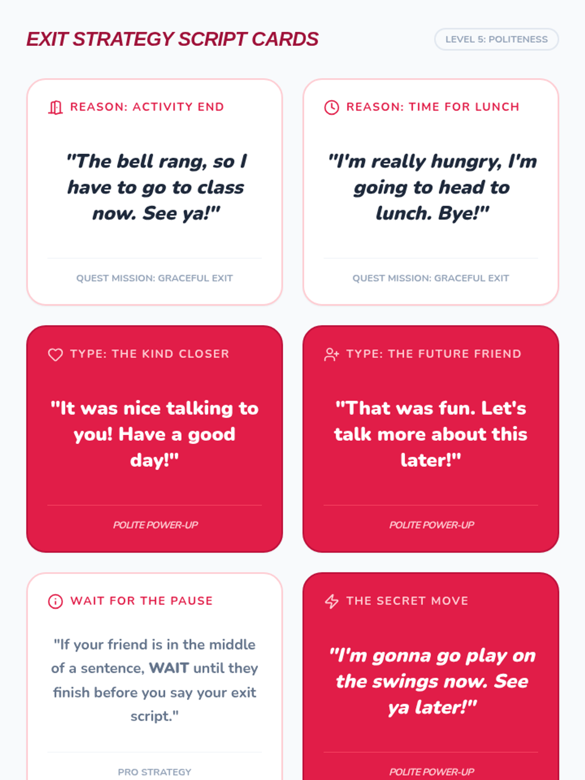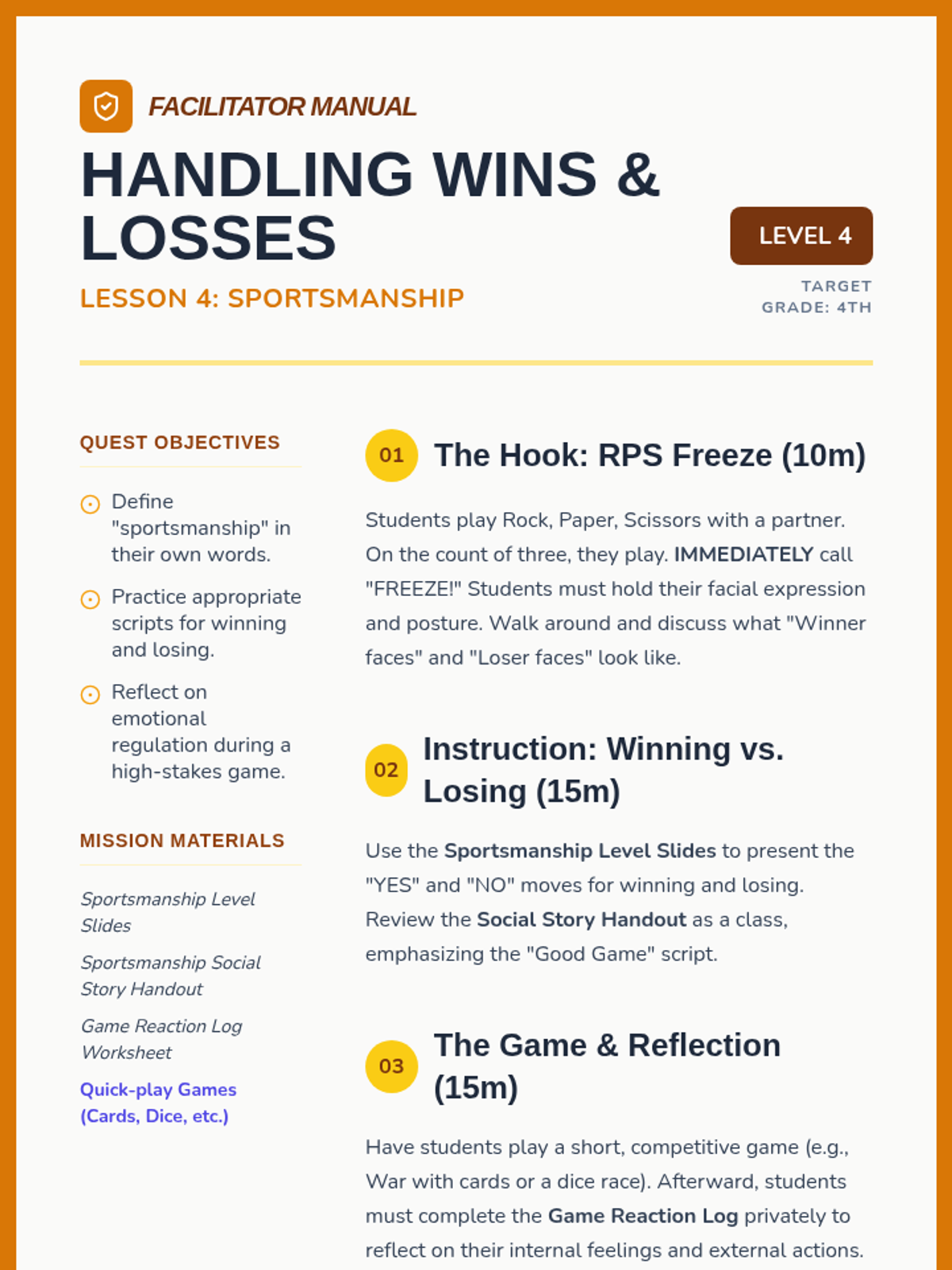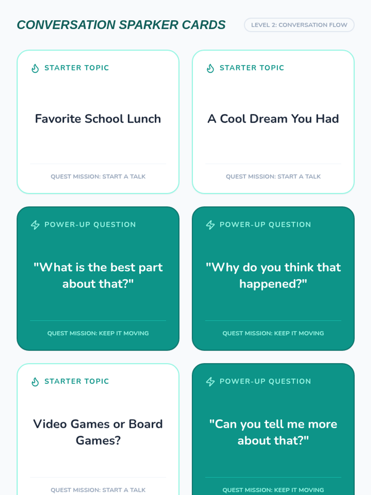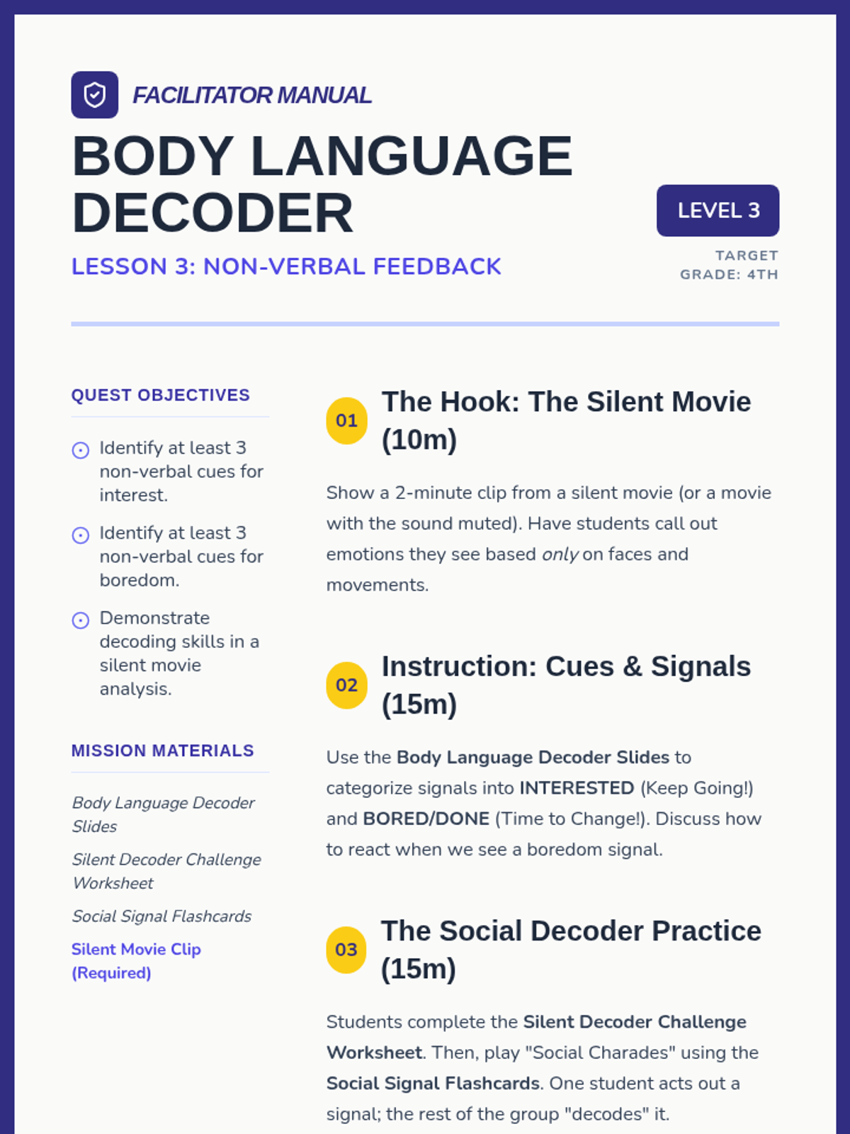 A gamified sequence for 4th graders to master the 'rules' of social interaction, treating conversations and play as structured quests with specific levels and objectives. Students use social stories and interactive games to practice initiating, maintaining, and ending social encounters.