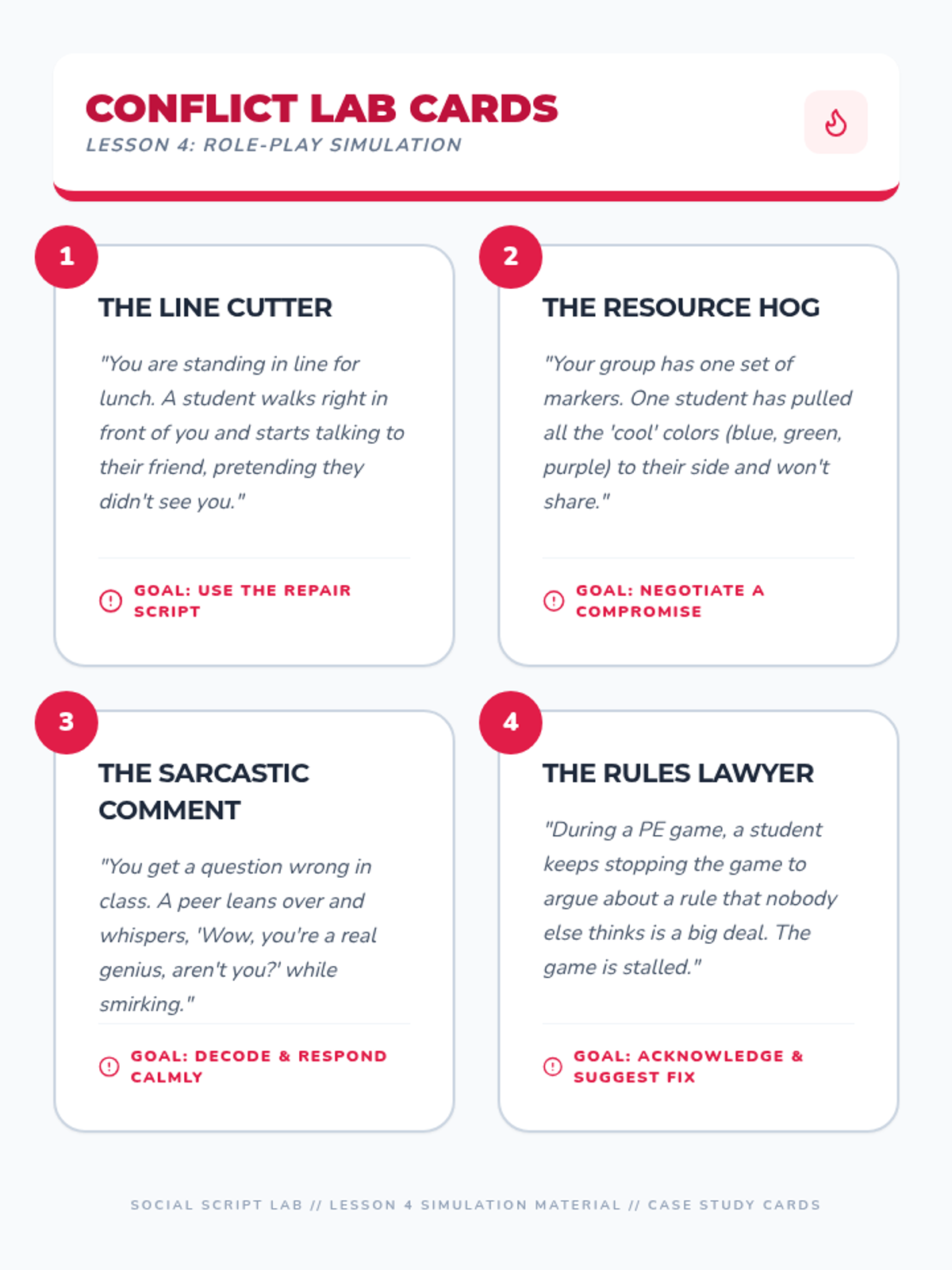 A 5th-grade social-emotional learning sequence focused on using social narratives to navigate complex peer interactions and resolve conflicts through role-play and simulation.