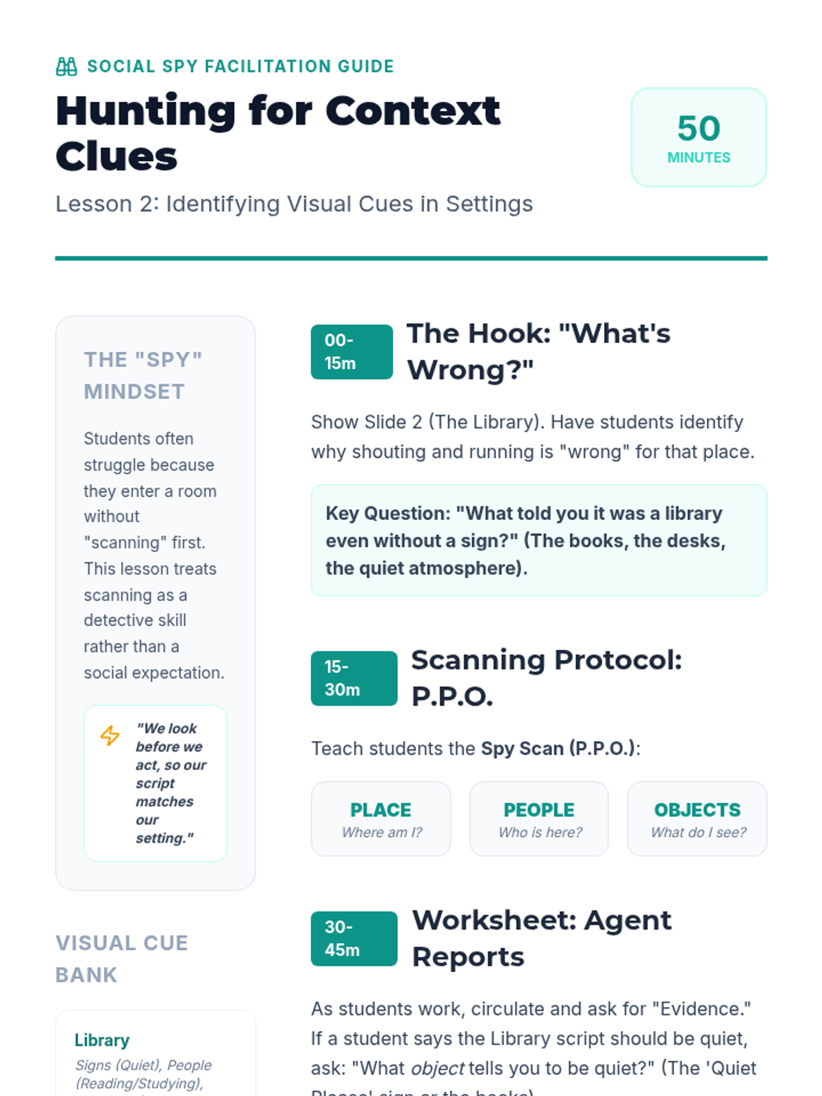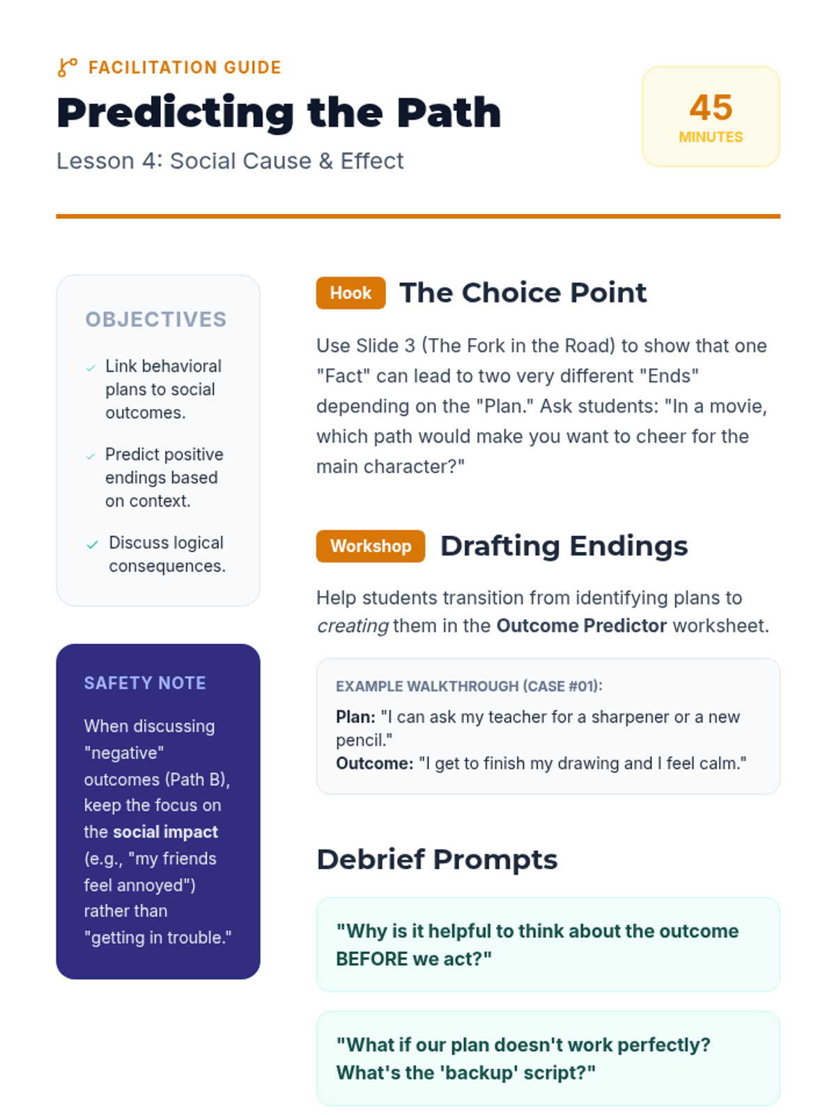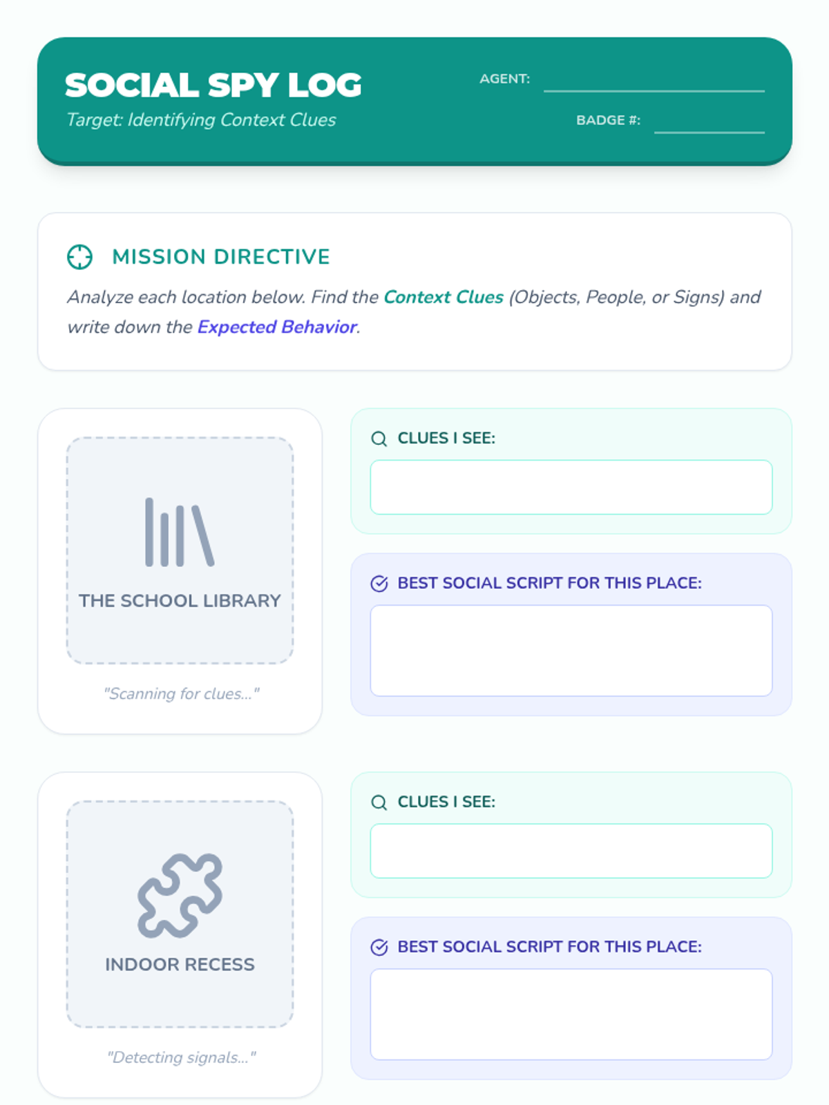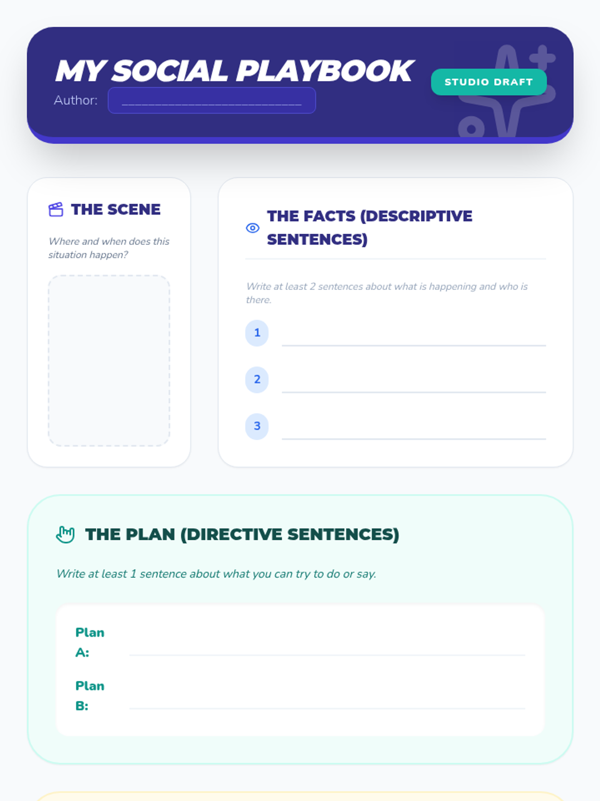 A comprehensive sequence for 4th-grade students to understand the structure, purpose, and application of social narratives. Through a 'Social Script Studio' theme, students learn to deconstruct social stories, identify context clues, and apply these frameworks to navigate social situations successfully.