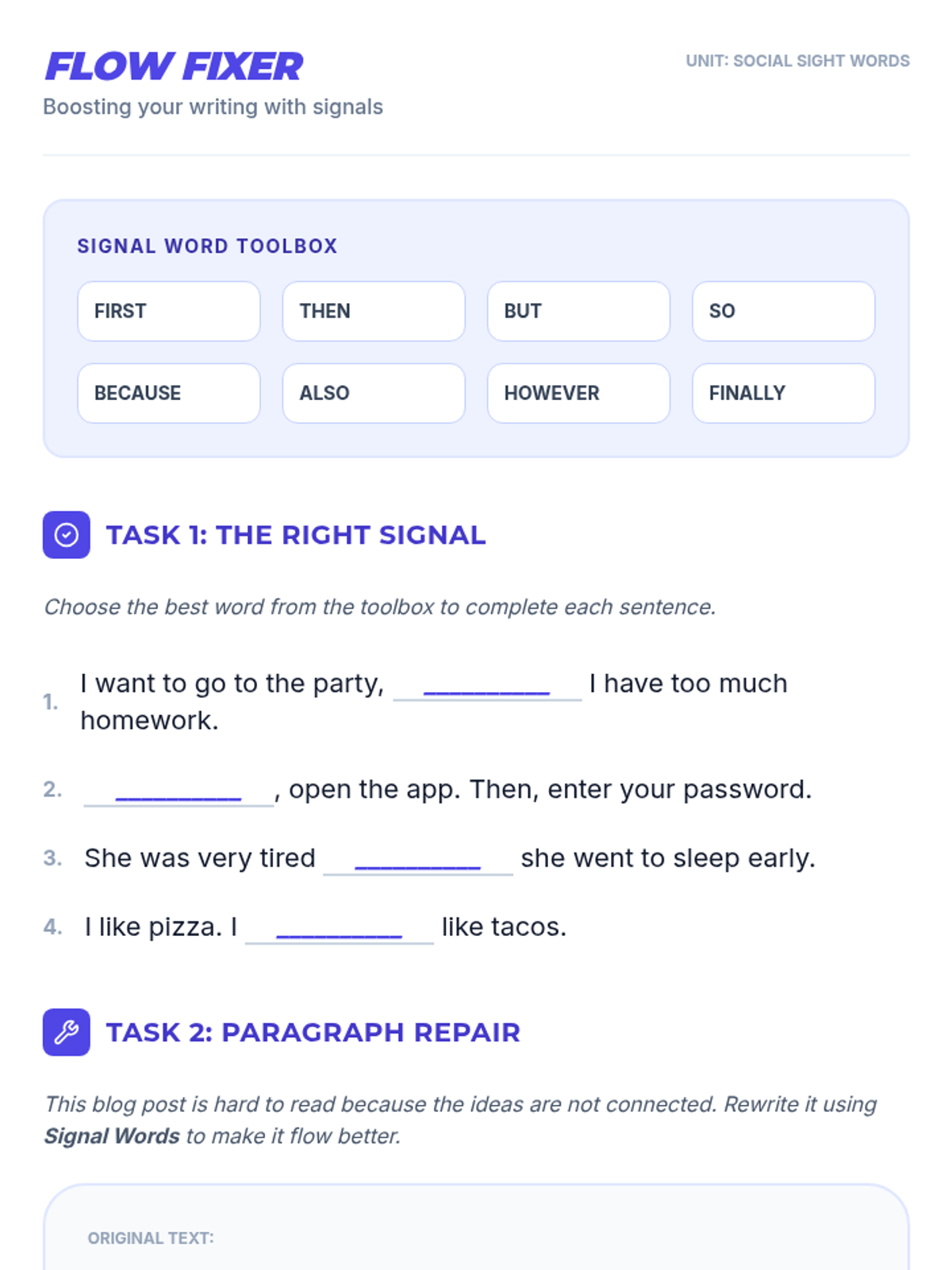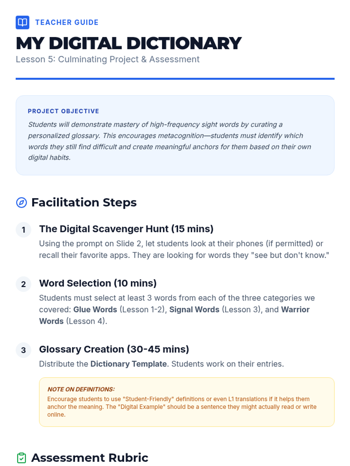 This sequence helps 10th-grade ESL beginners master high-frequency sight words through digital contexts like social media and texting. Students develop reading automaticity and fluency by engaging with modern, age-appropriate texts and gamified drills.