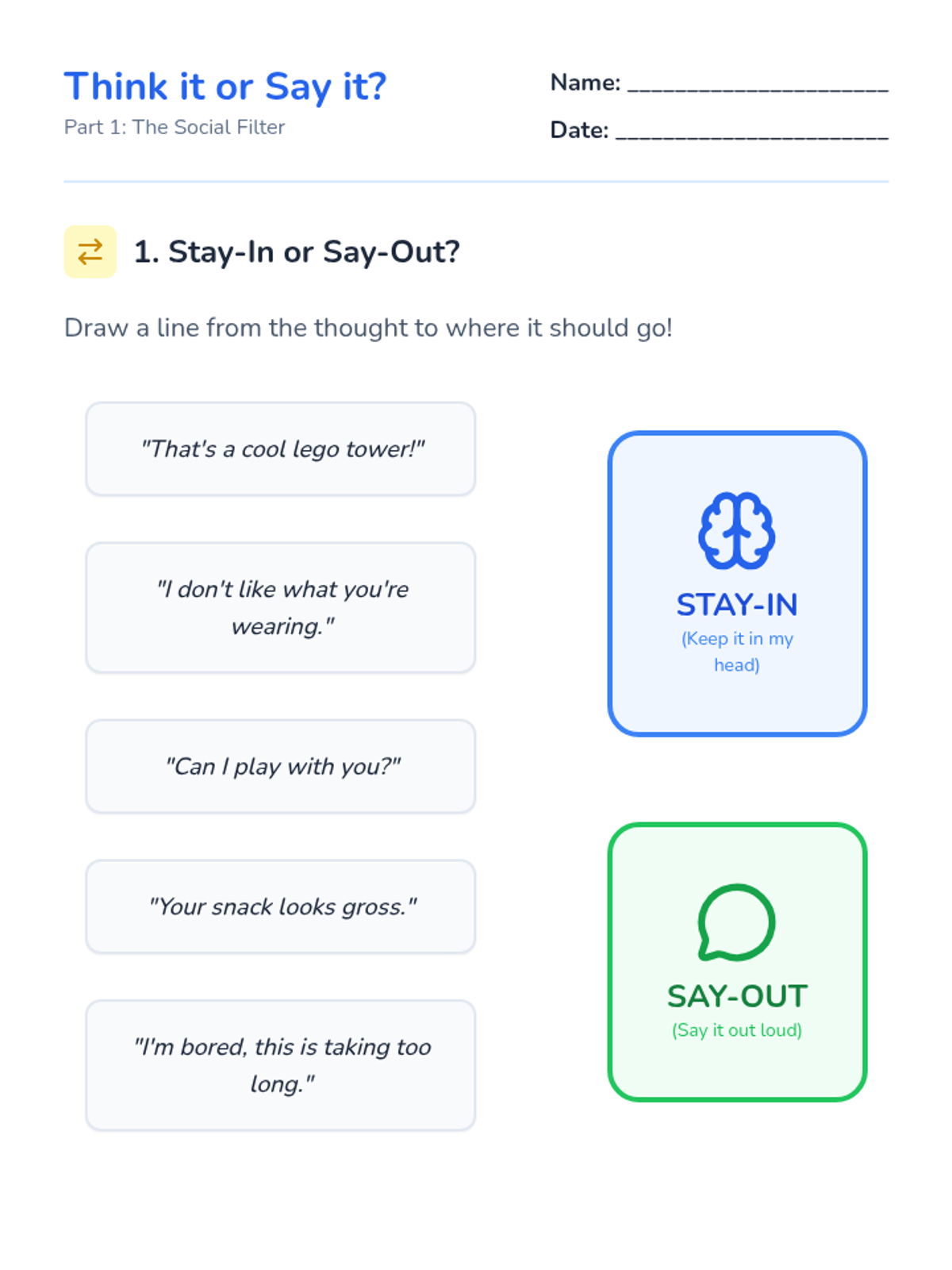 A sequence of lessons focused on essential social and behavioral skills for first-grade students, including physical boundaries and verbal impulse control.