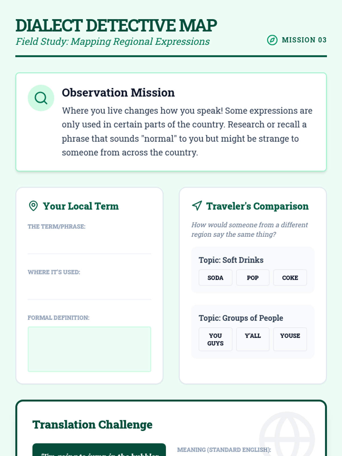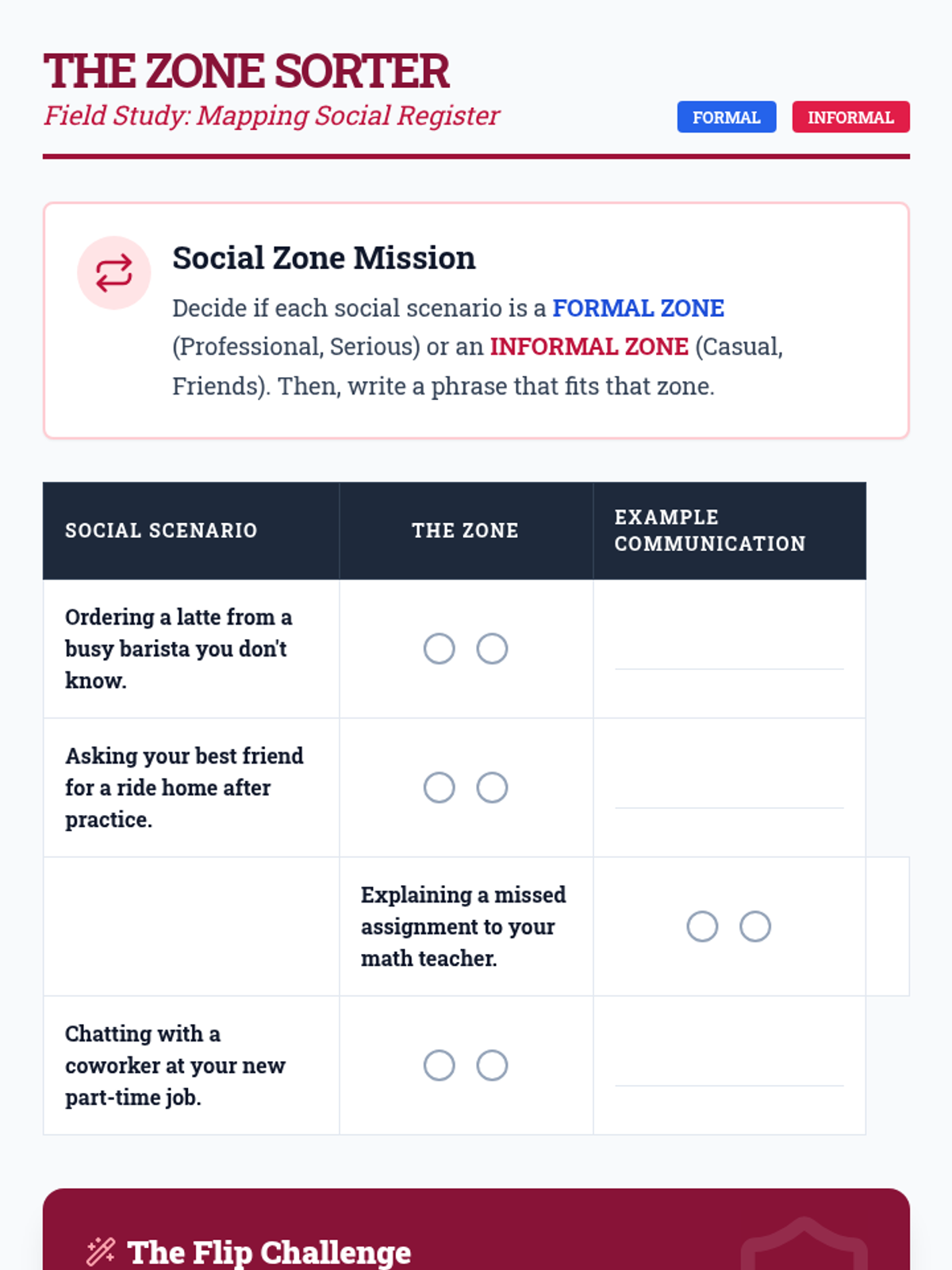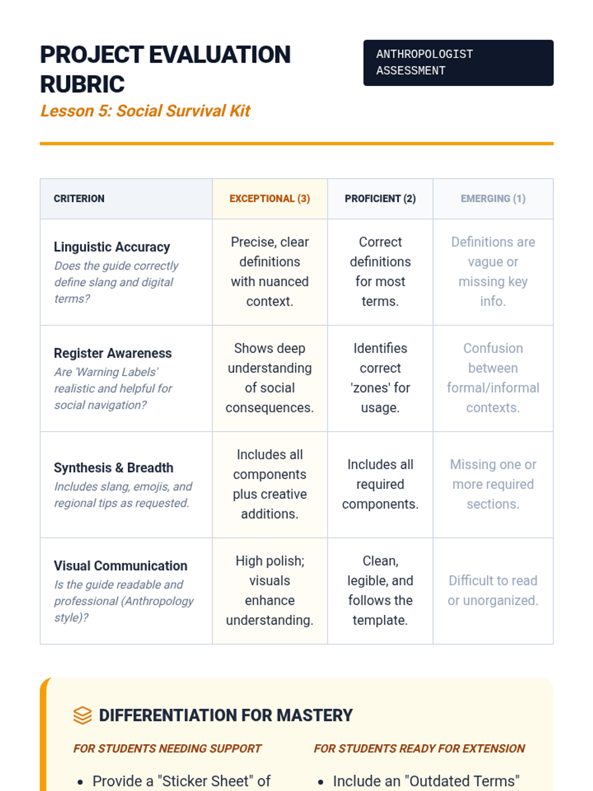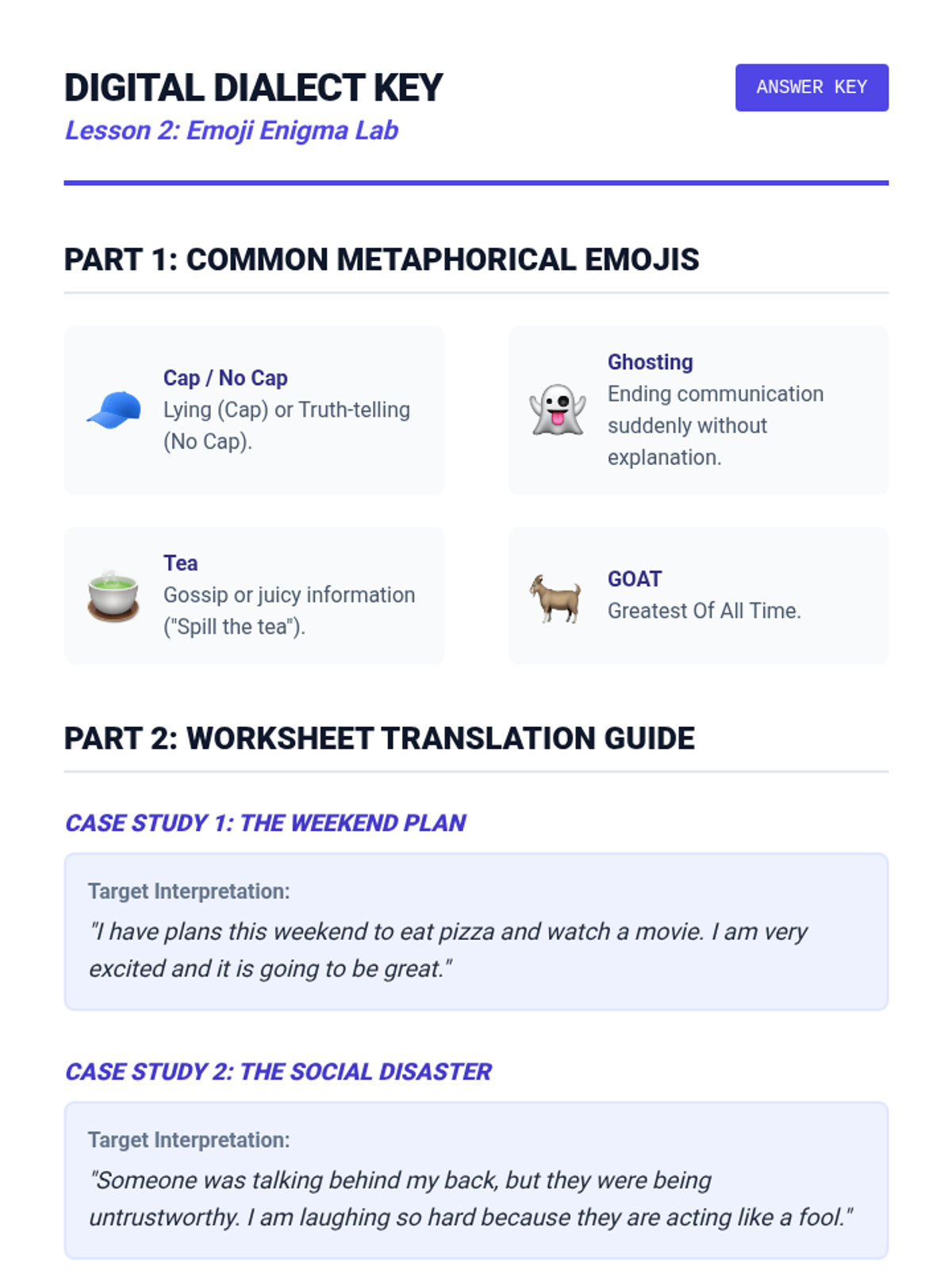 A 5-lesson sequence for 12th-grade Special Education students focusing on social communication through the lens of contemporary slang, figurative language, and code-switching. Students act as 'linguistic anthropologists' to decode social currency in peer relationships.