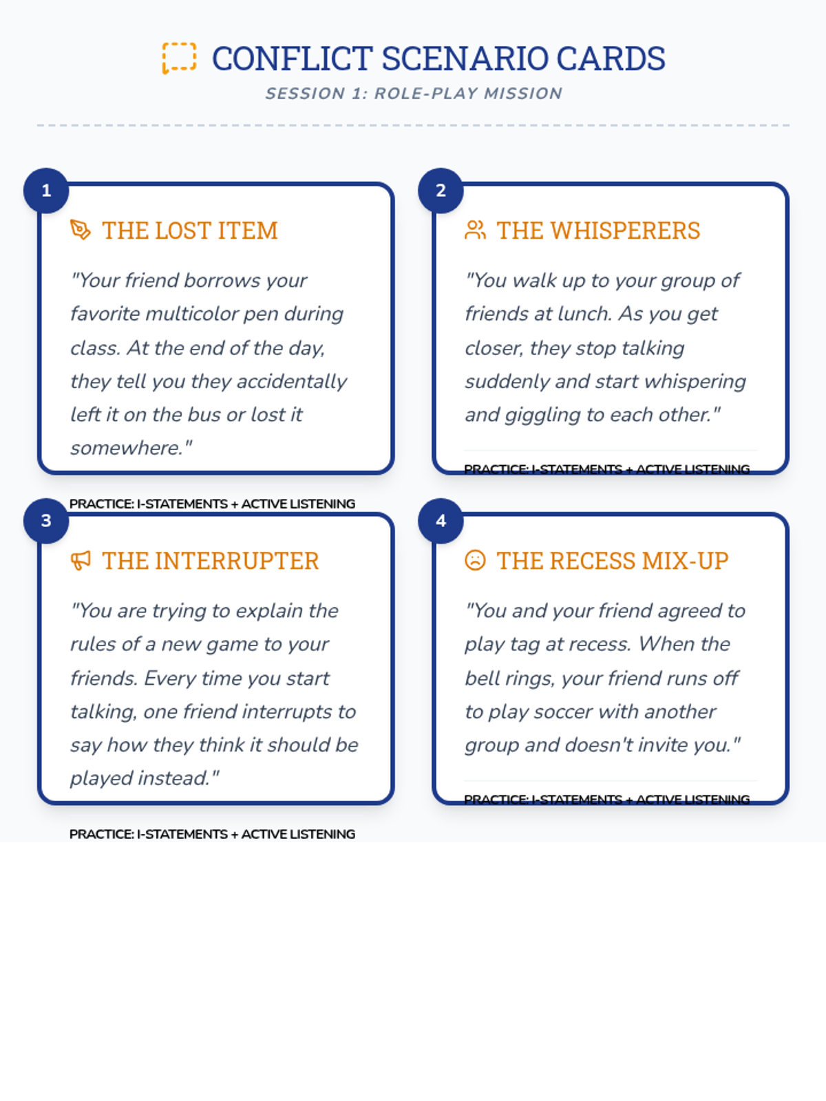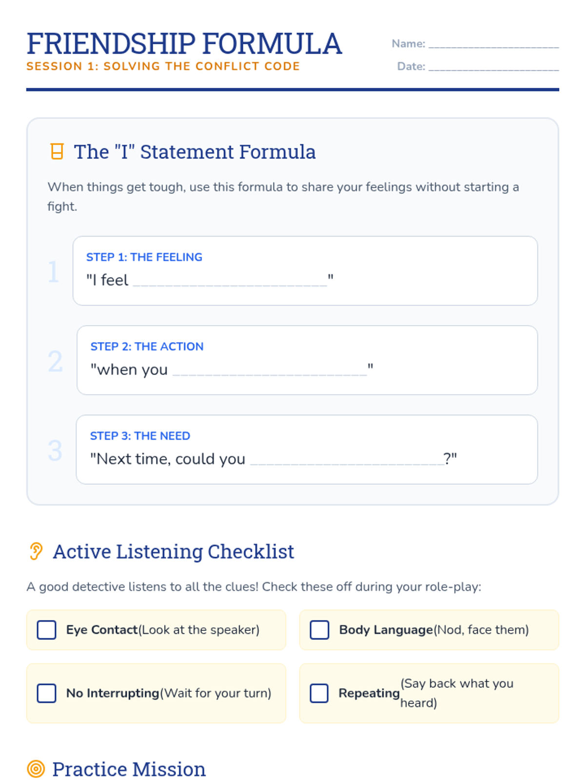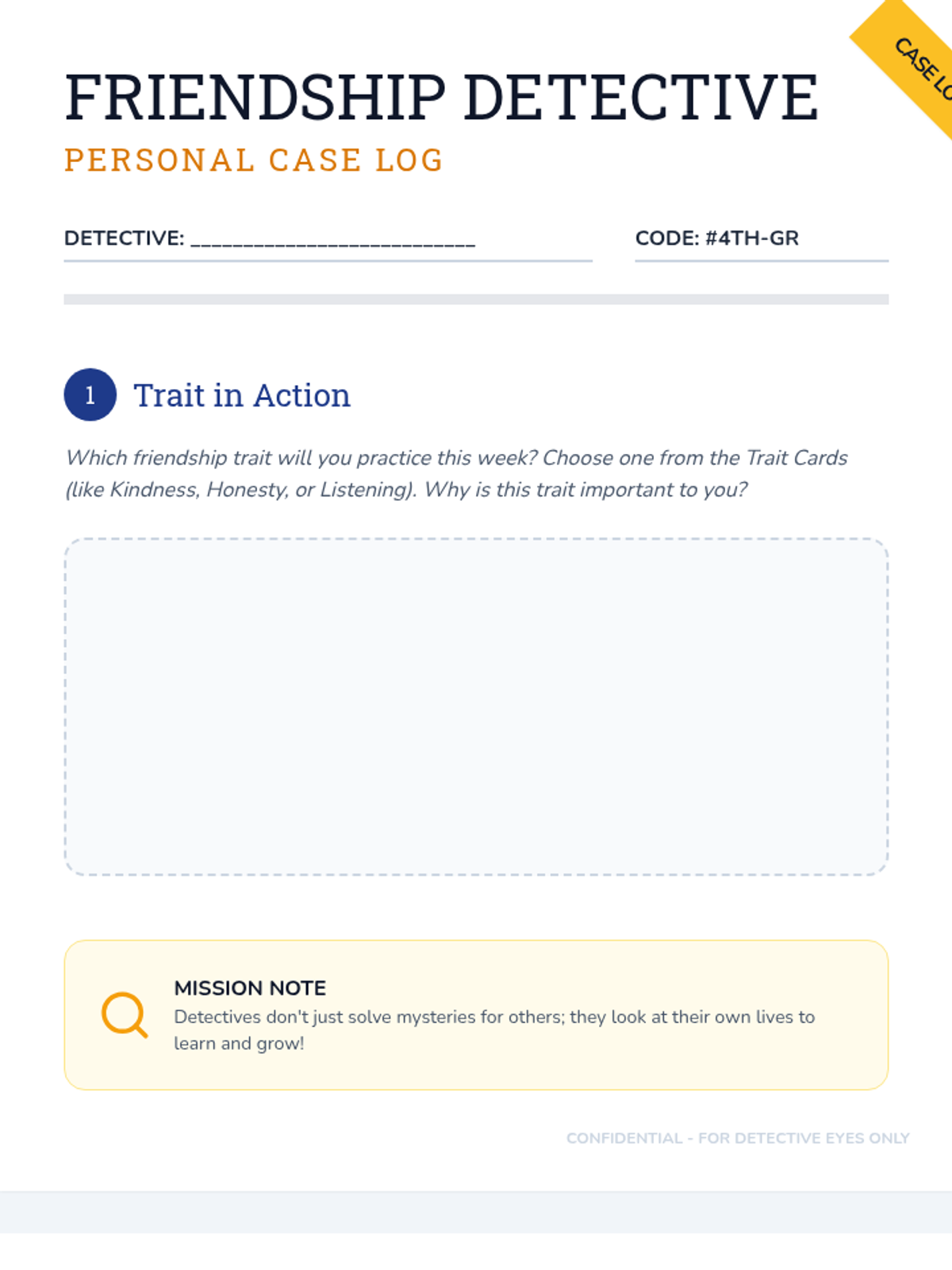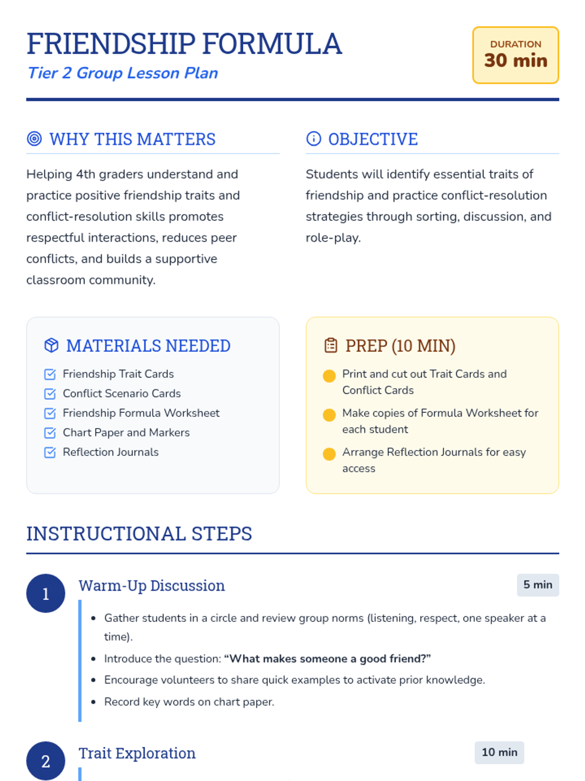 A two-session Tier 2 group lesson sequence for 4th graders to build social skills, empathy, and conflict-resolution strategies through a detective-themed exploration of friendship.