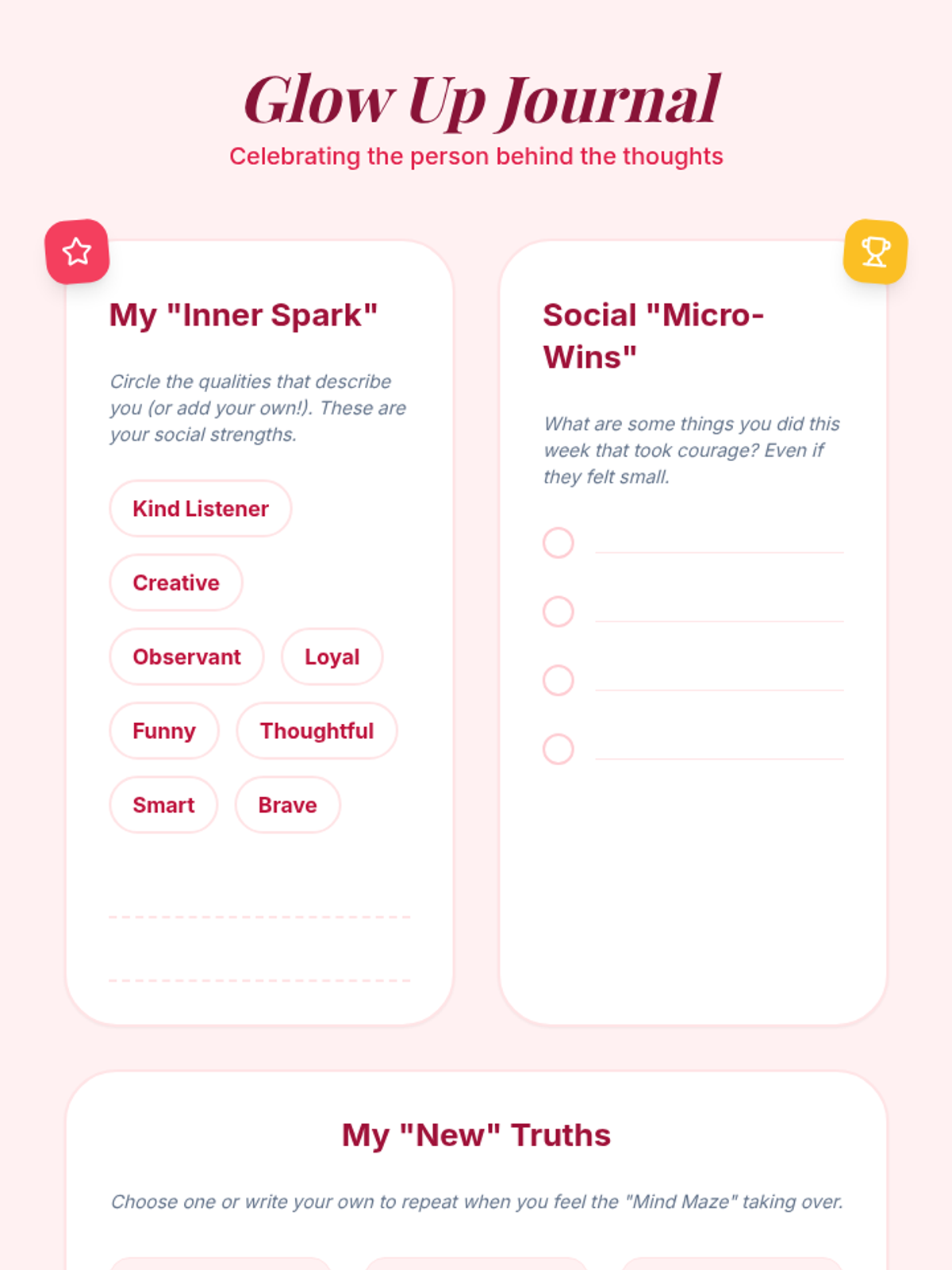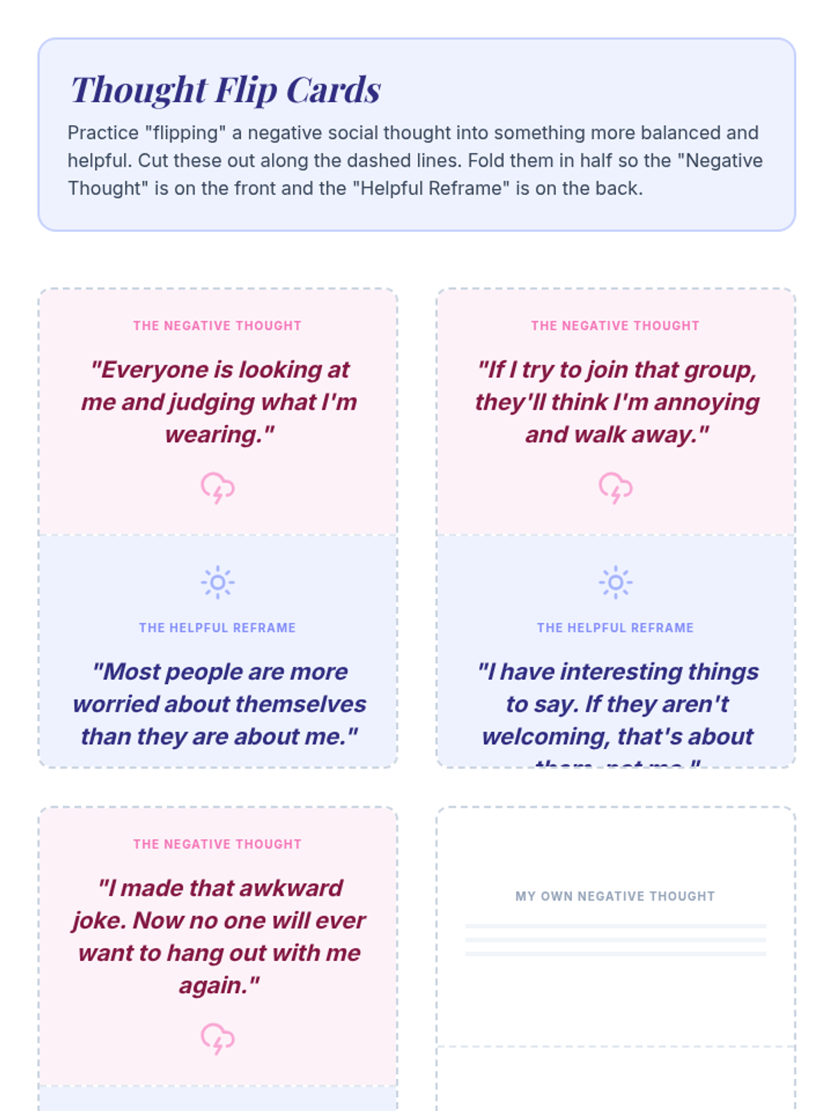A two-part series designed to help 8th-grade students understand the CBT triangle, reframe negative thoughts, and build social confidence through targeted scenarios and self-esteem activities.