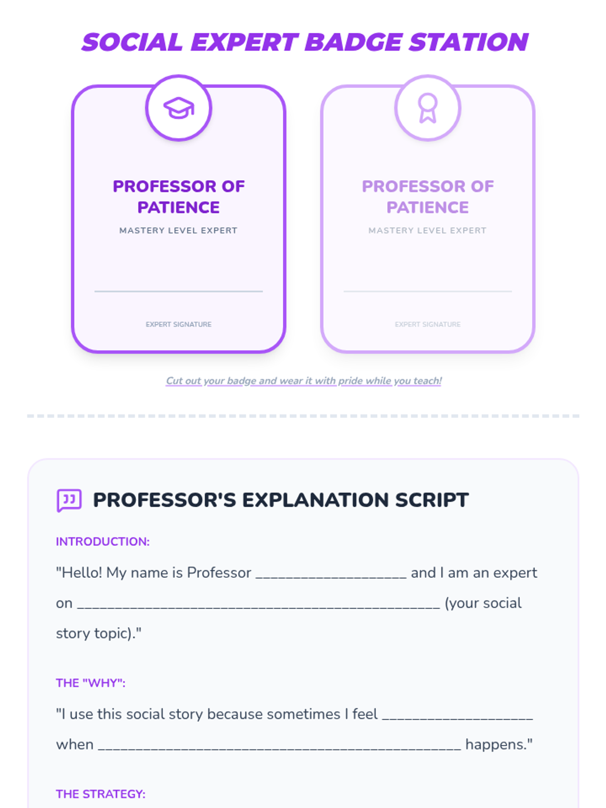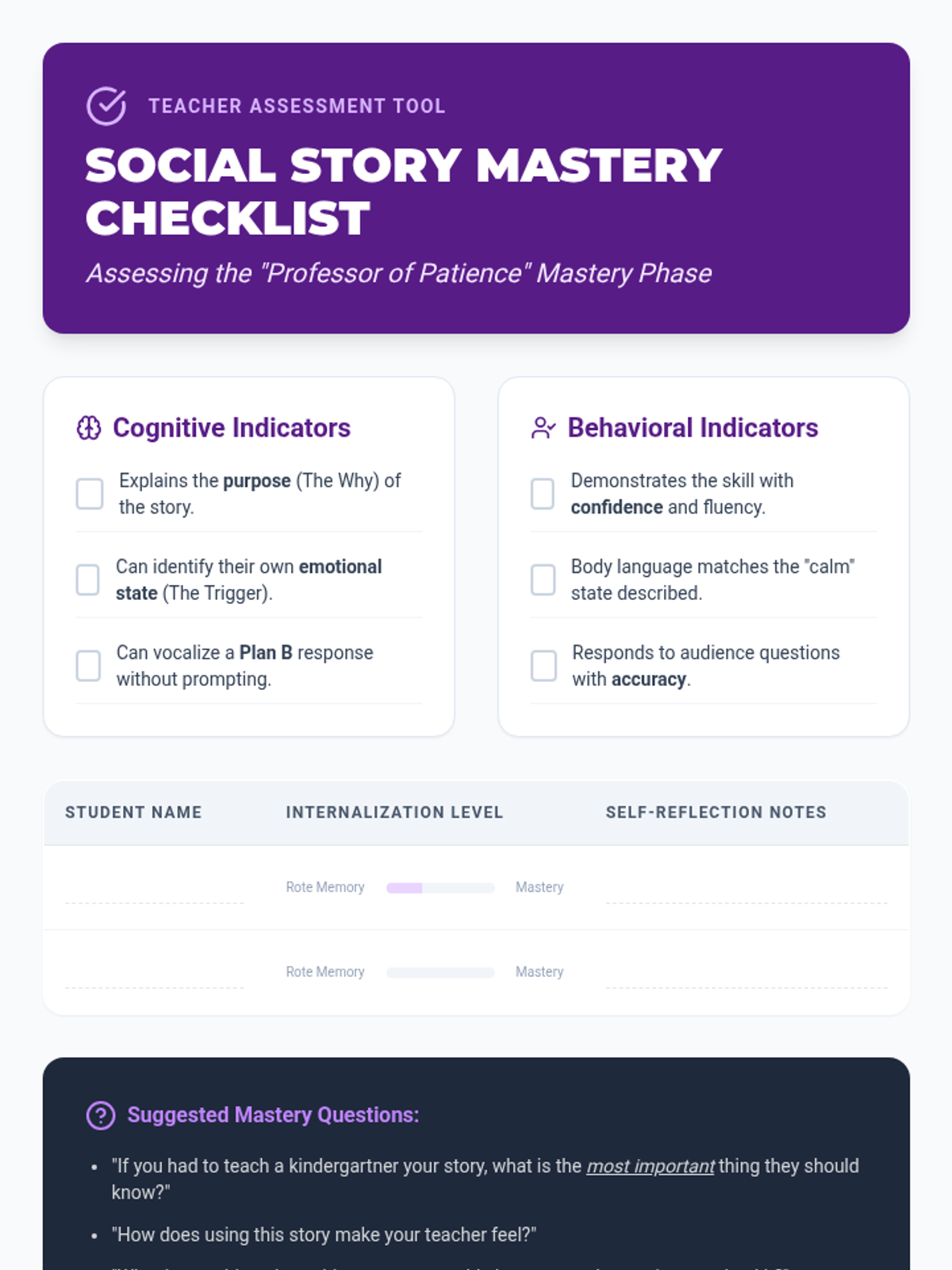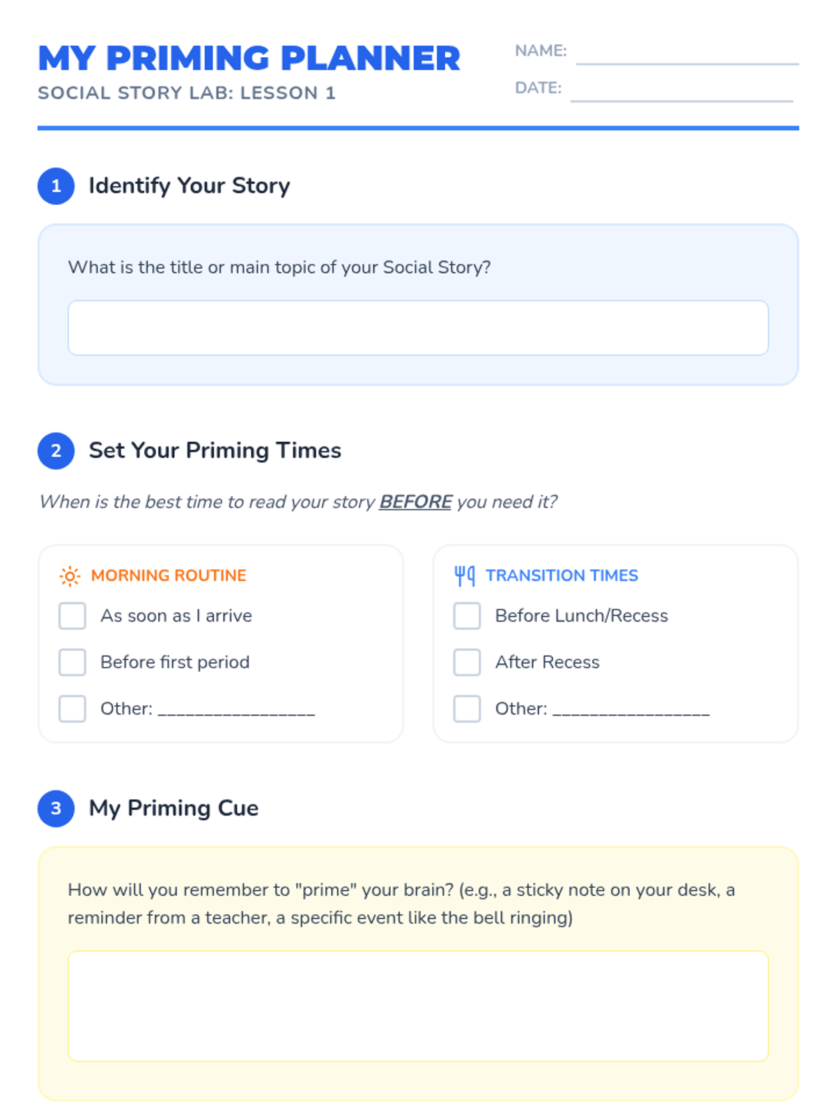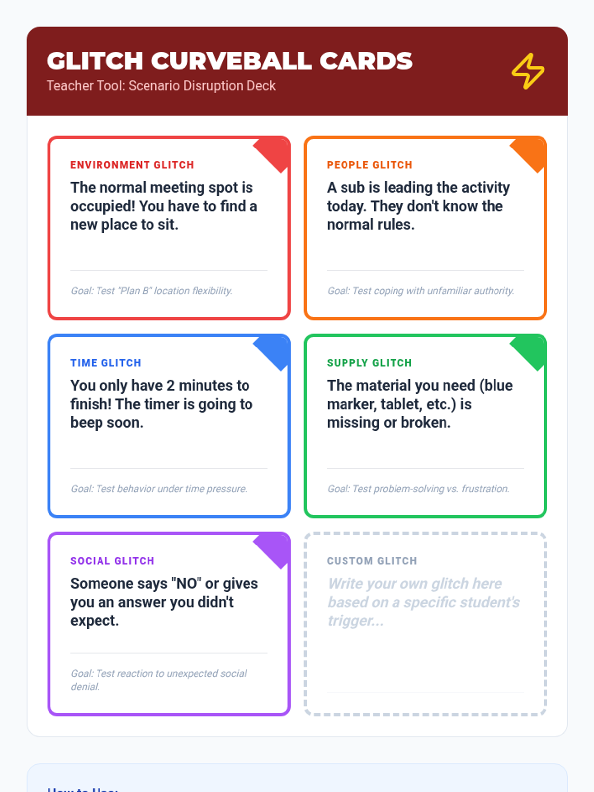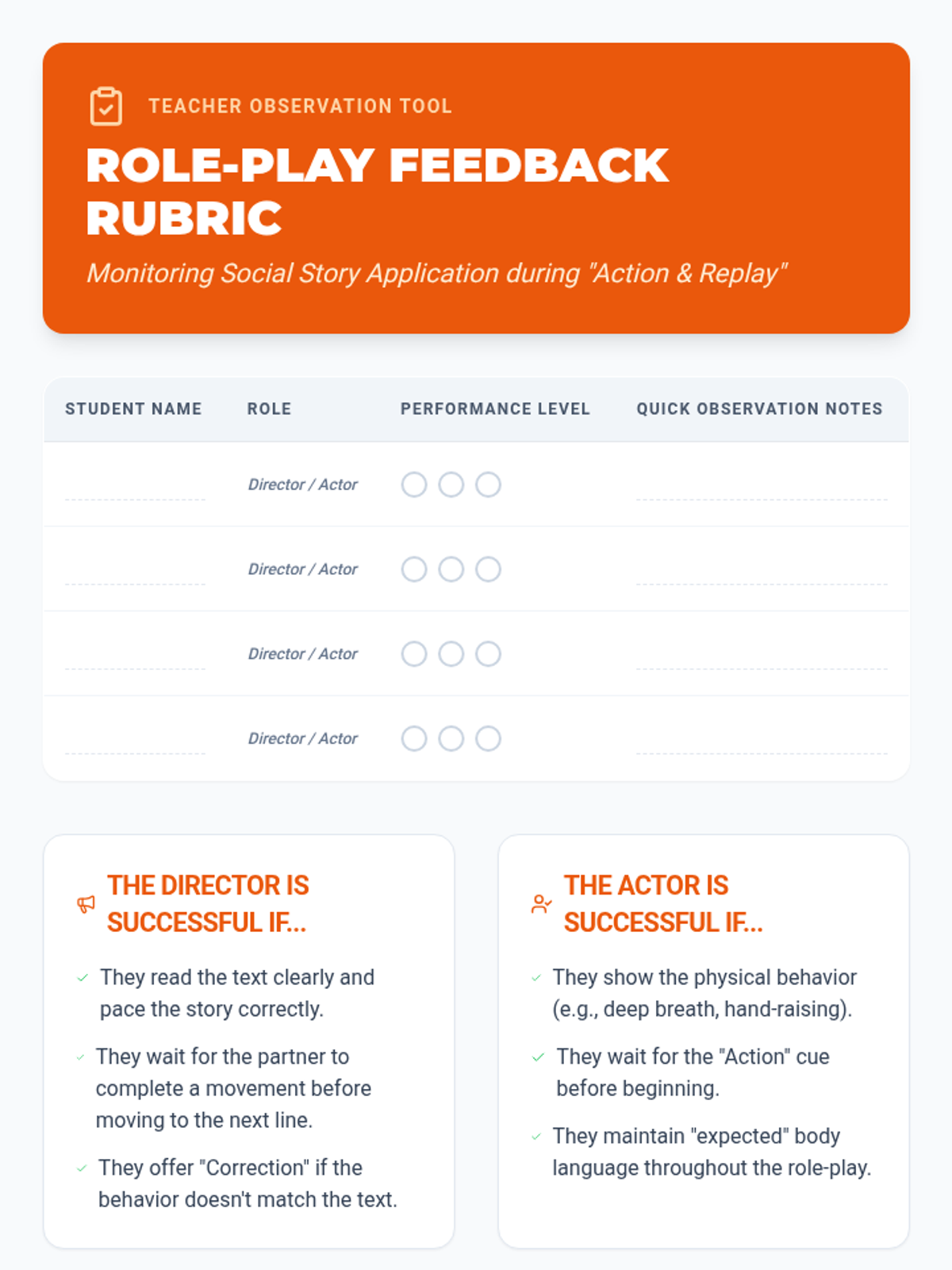 A 5-lesson sequence for 4th-grade students to practice, test, and apply their personal social stories through simulation and role-play. Students move from simple rehearsal to troubleshooting unexpected changes and generalizing their skills to new environments.
