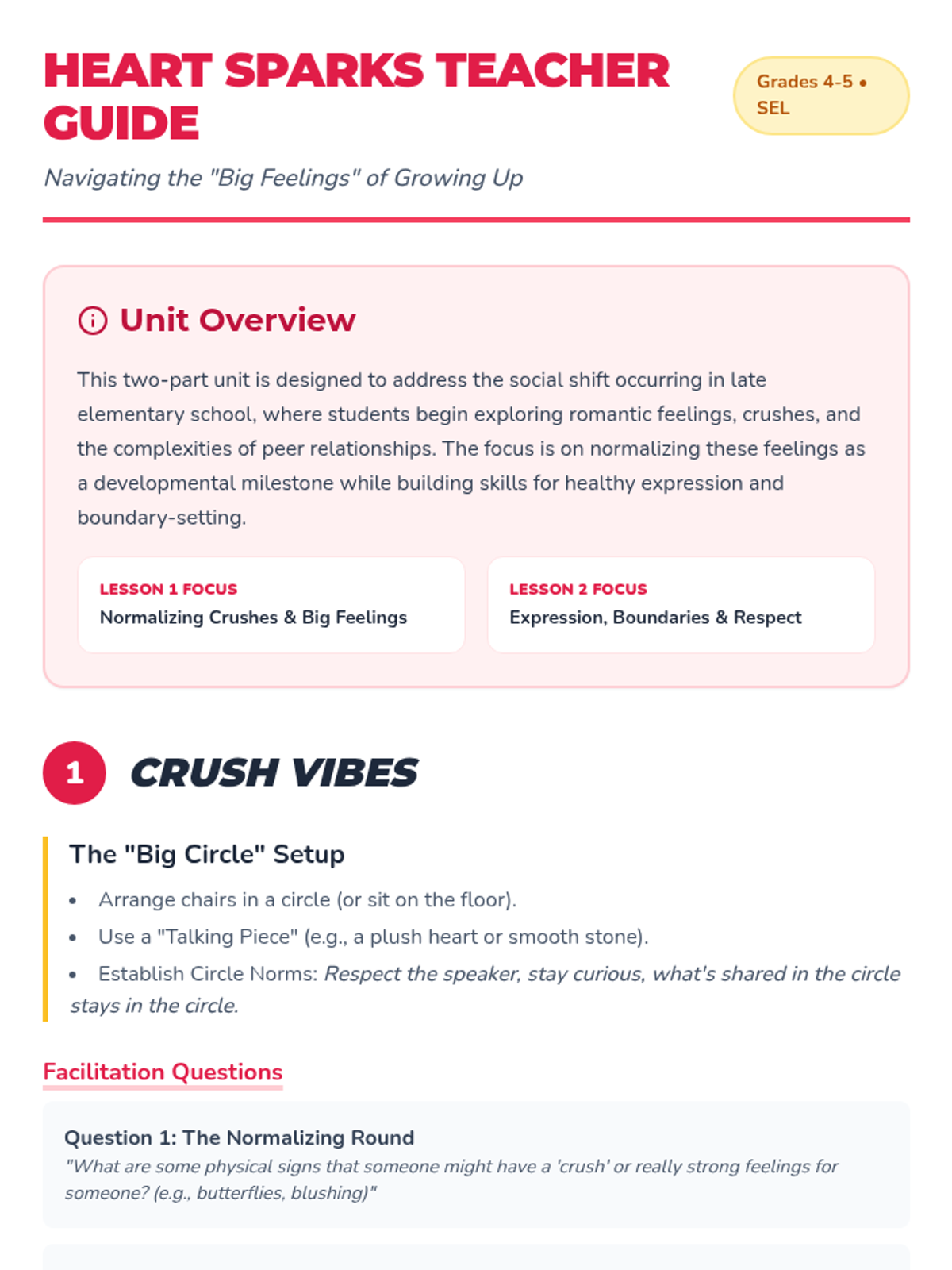 An SEL series for upper elementary students to navigate the shifting landscape of friendships, crushes, and emotional expression in a healthy, respectful way.