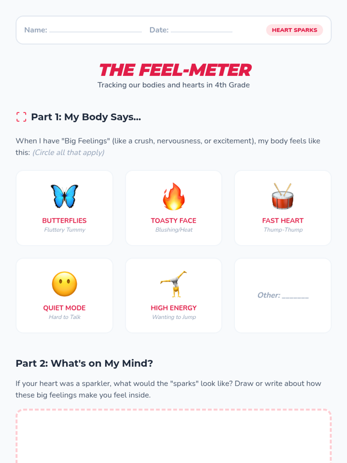 A two-part SEL sequence for 4th-grade girls focused on identifying, naming, and healthily navigating intense positive emotions. The sequence uses a weather-based metaphor to build emotional literacy and social boundary awareness in a school-appropriate context.