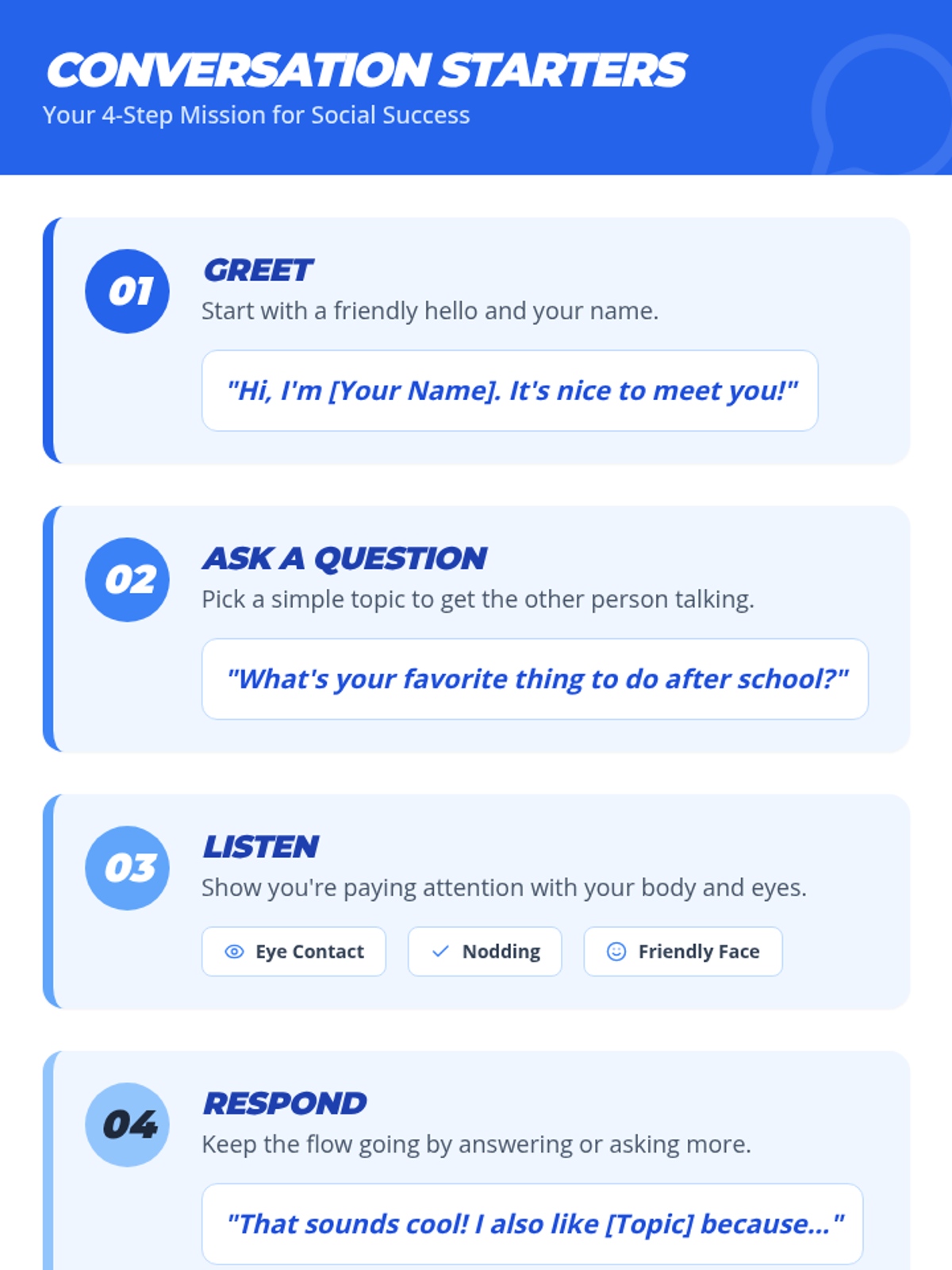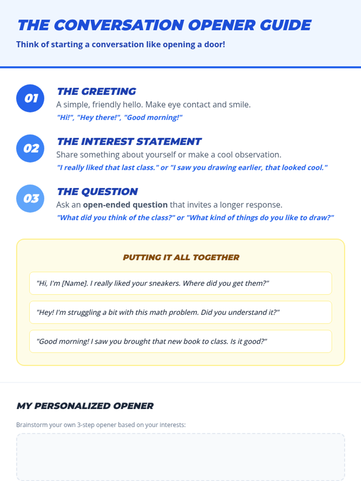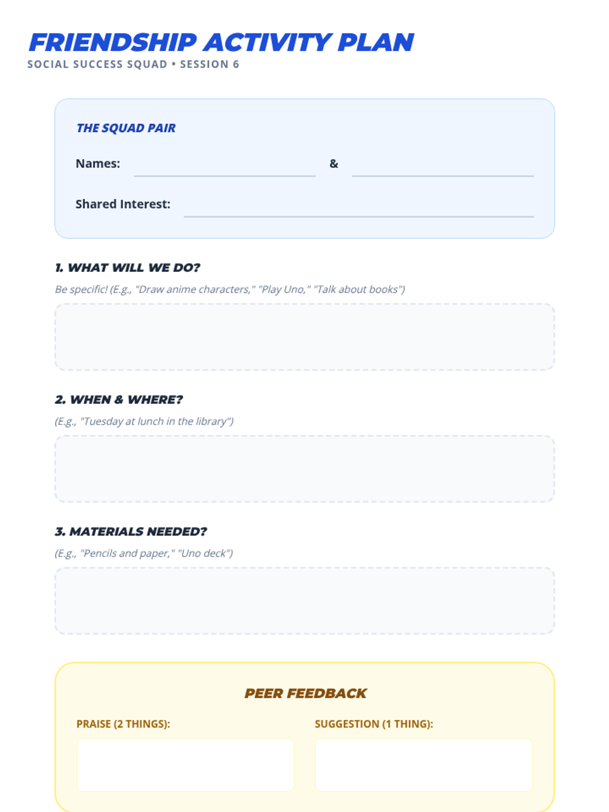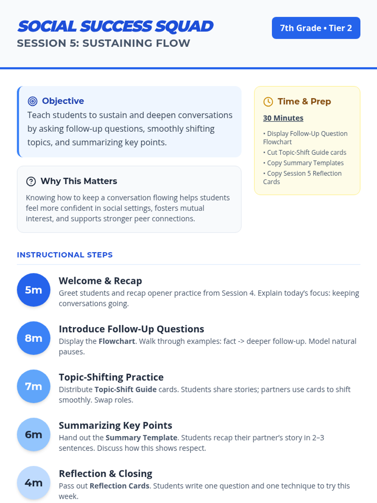 A 6-session Tier 2 social skills curriculum for 7th graders designed to build confidence, communication, and friendship-building skills, particularly for students on the autism spectrum.