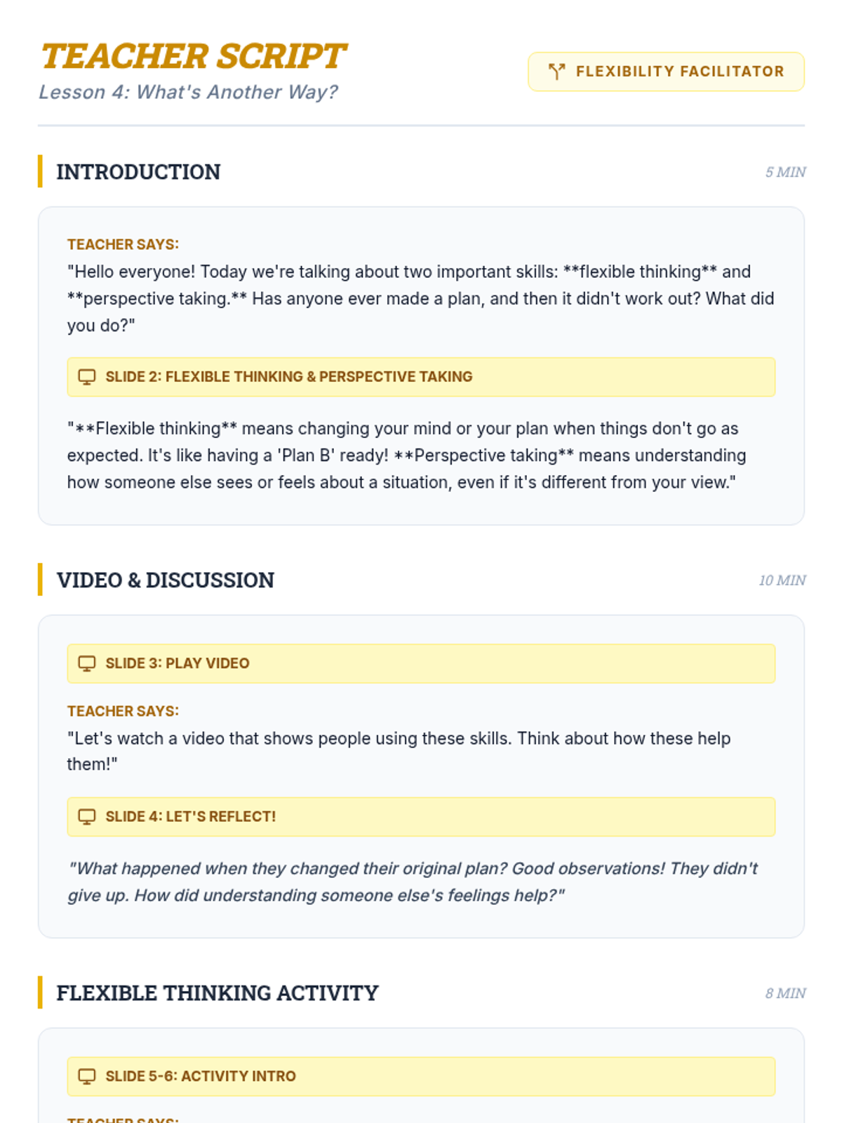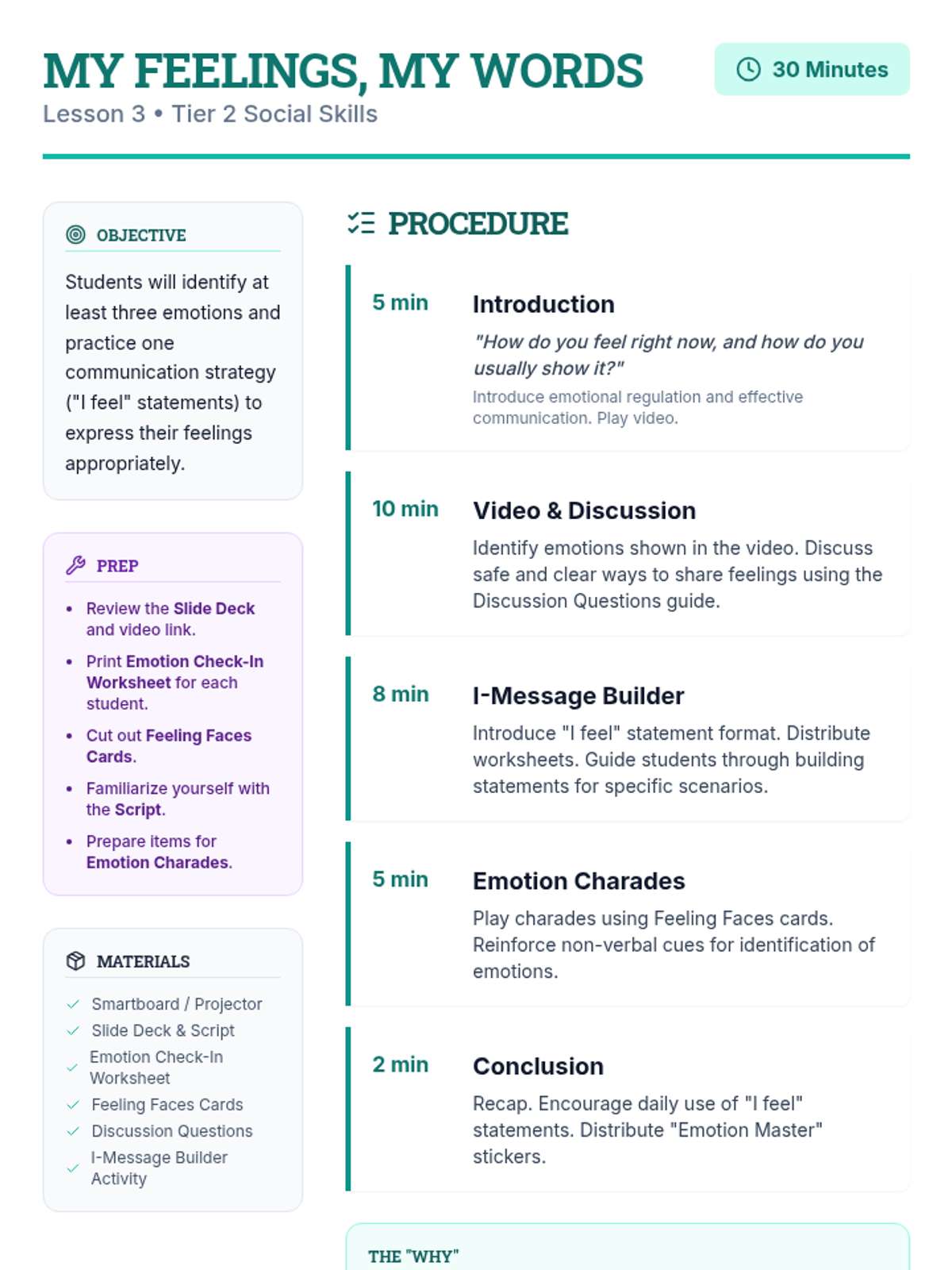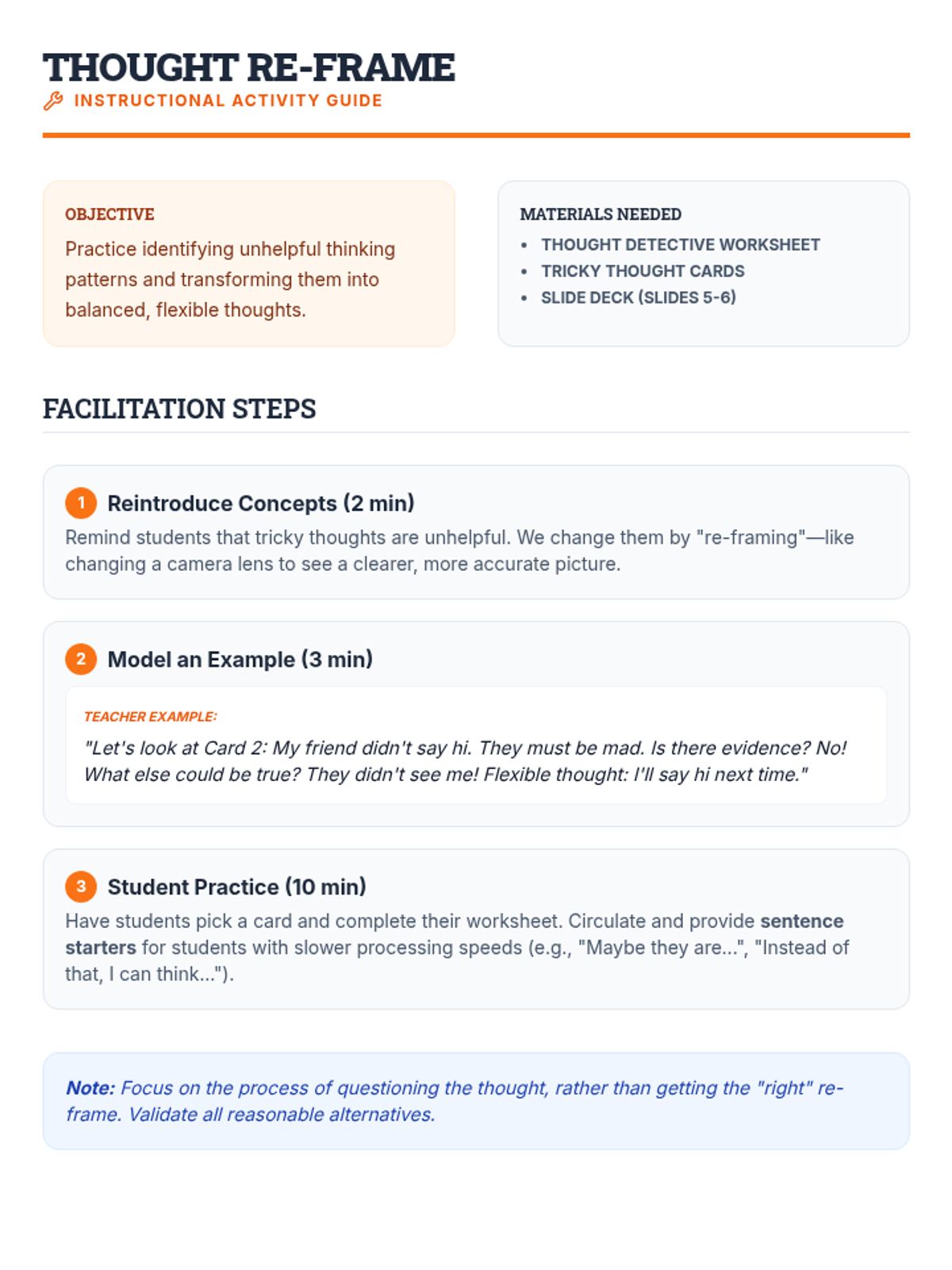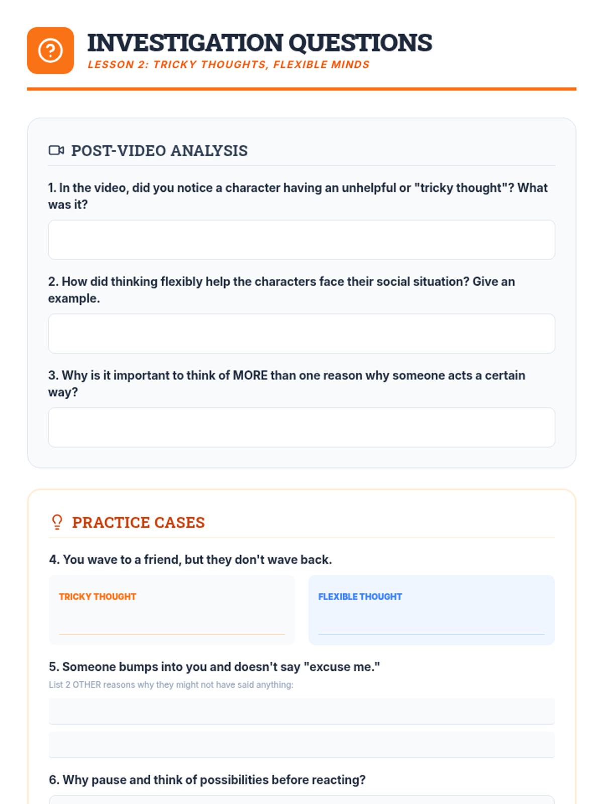 A 5-session social-emotional learning sequence designed for middle school students in Tier 2 groups. This unit covers conflict resolution, cognitive flexibility, emotional regulation, perspective taking, and growth mindset through interactive games, role-plays, and structured discussions.