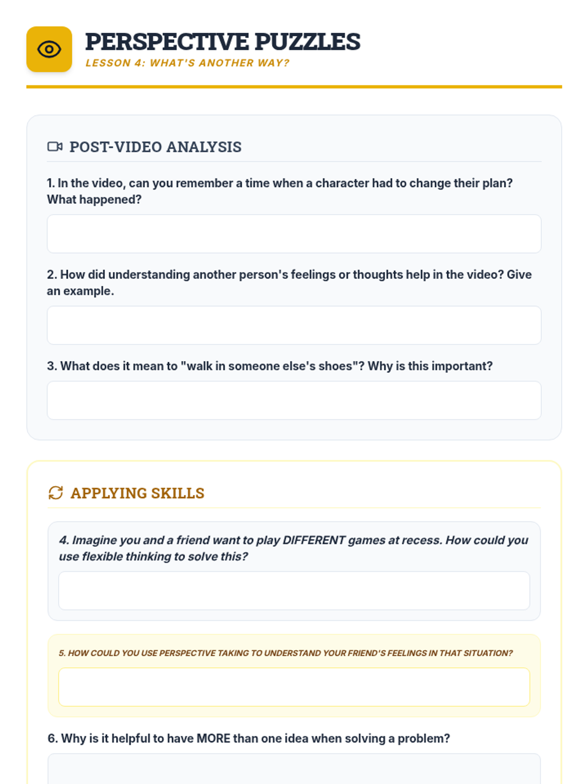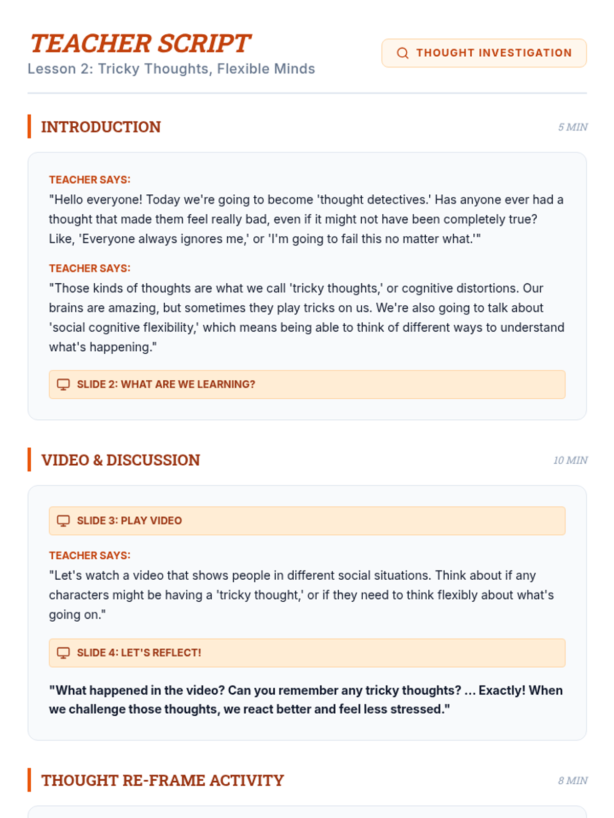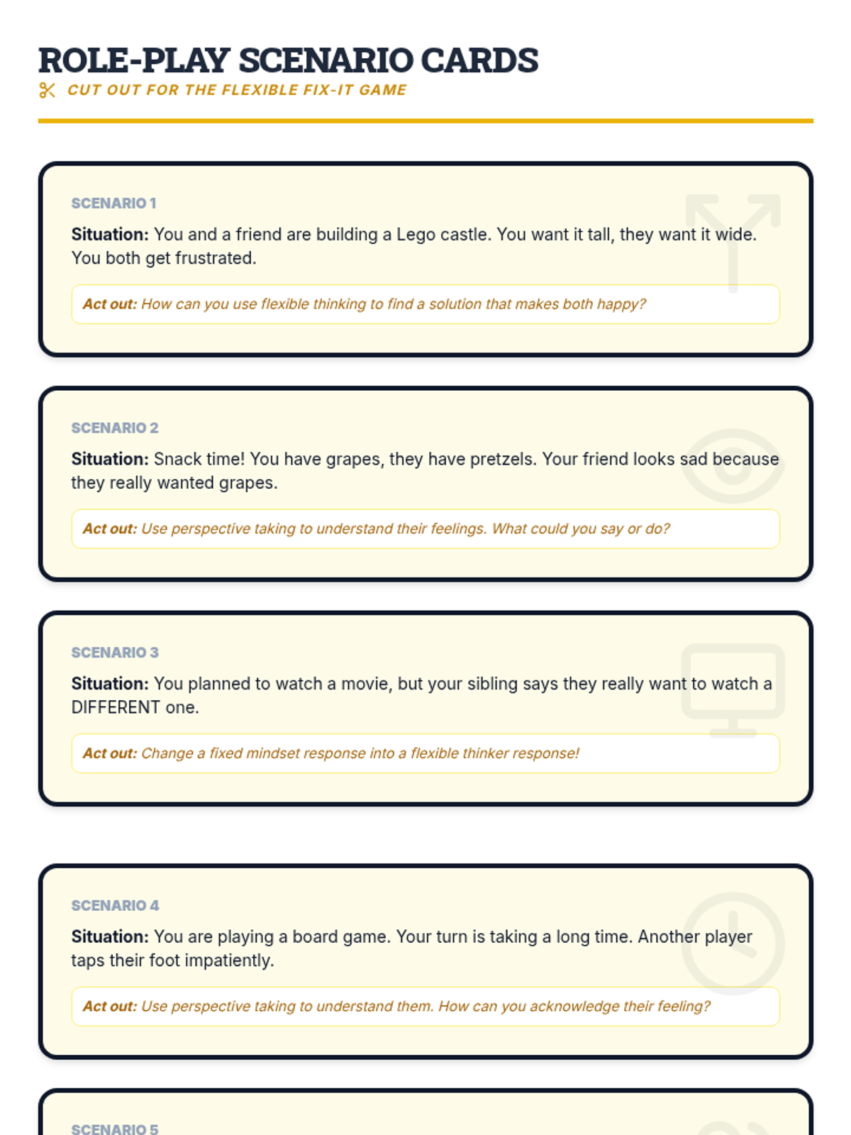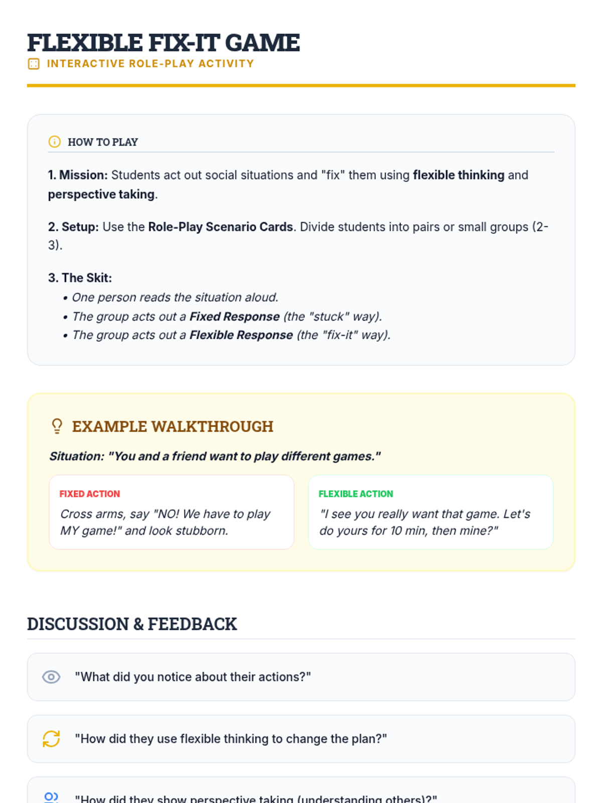 A 5-session social-emotional learning sequence designed for middle school students in Tier 2 groups. This unit covers conflict resolution, cognitive flexibility, emotional regulation, perspective taking, and growth mindset through interactive games, role-plays, and structured discussions.