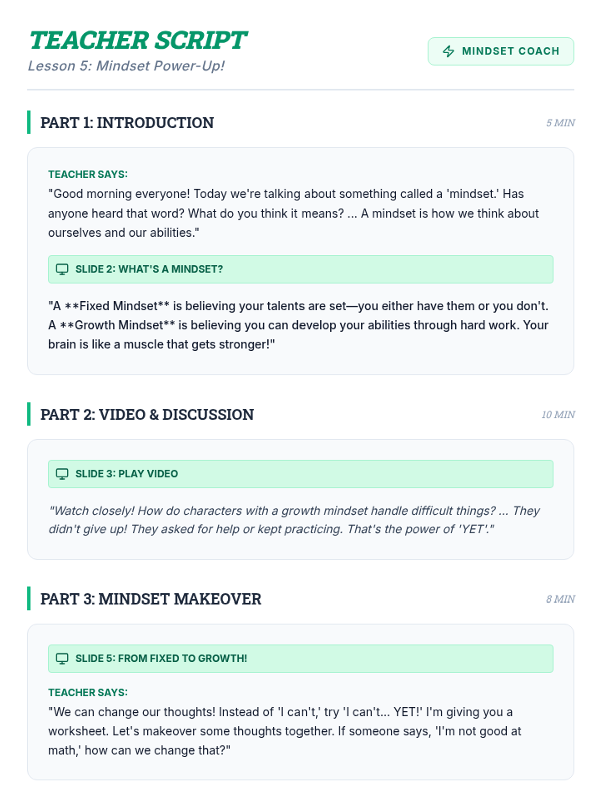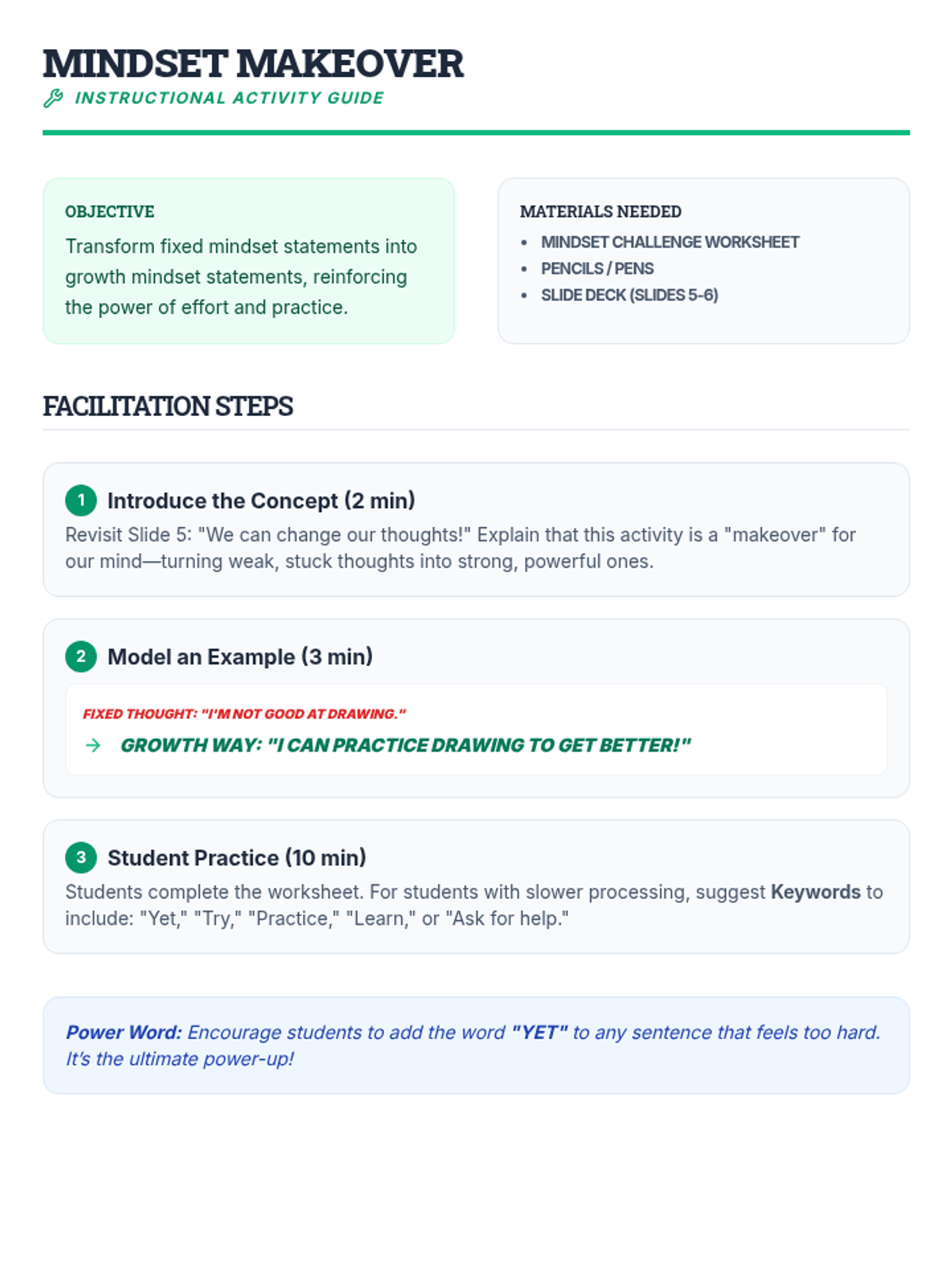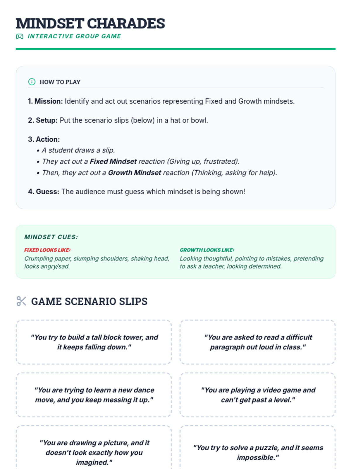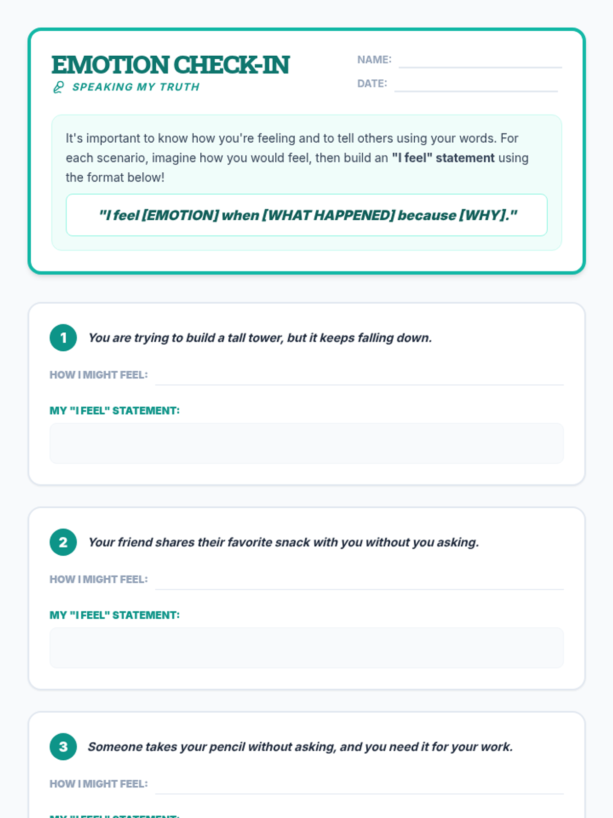 A 5-session social-emotional learning sequence designed for middle school students in Tier 2 groups. This unit covers conflict resolution, cognitive flexibility, emotional regulation, perspective taking, and growth mindset through interactive games, role-plays, and structured discussions.