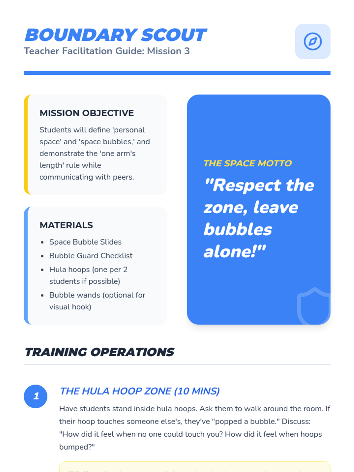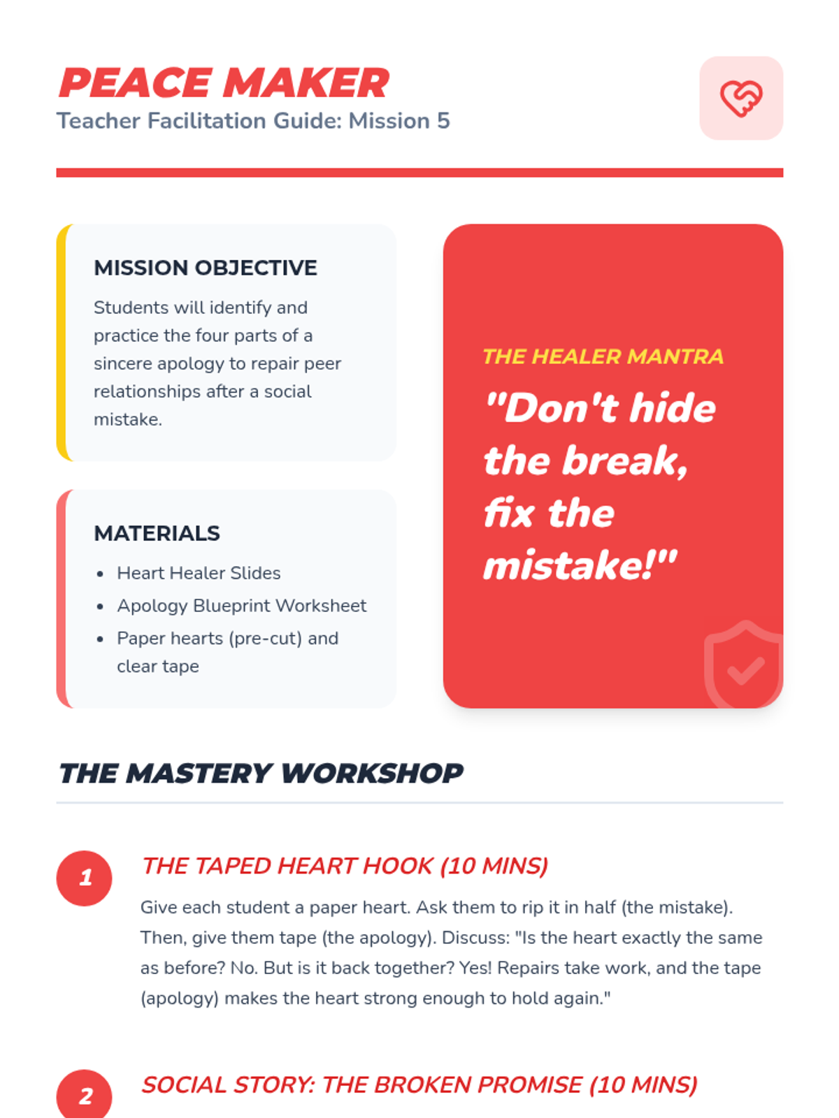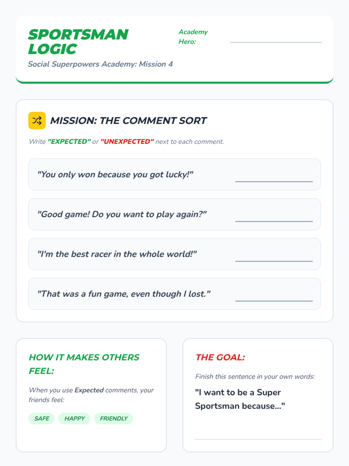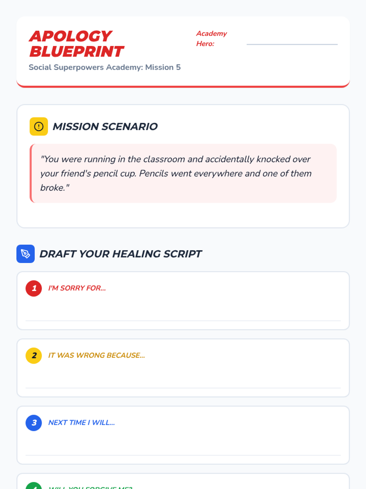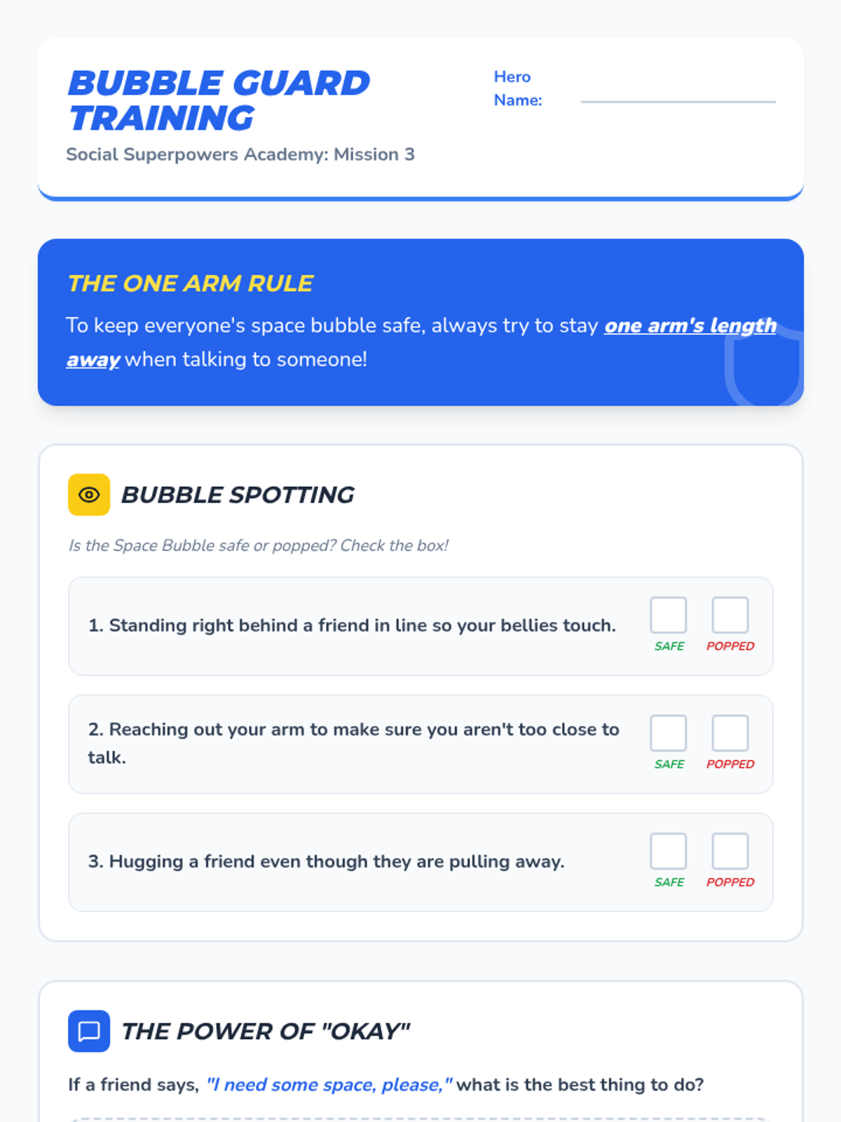 A 5-lesson series designed for 3rd-grade students to master social interactions through the 'Social Superpowers Academy' theme. Students learn concrete strategies for joining groups, taking turns, respecting boundaries, handling competition, and repairing relationships using social stories and role-play.