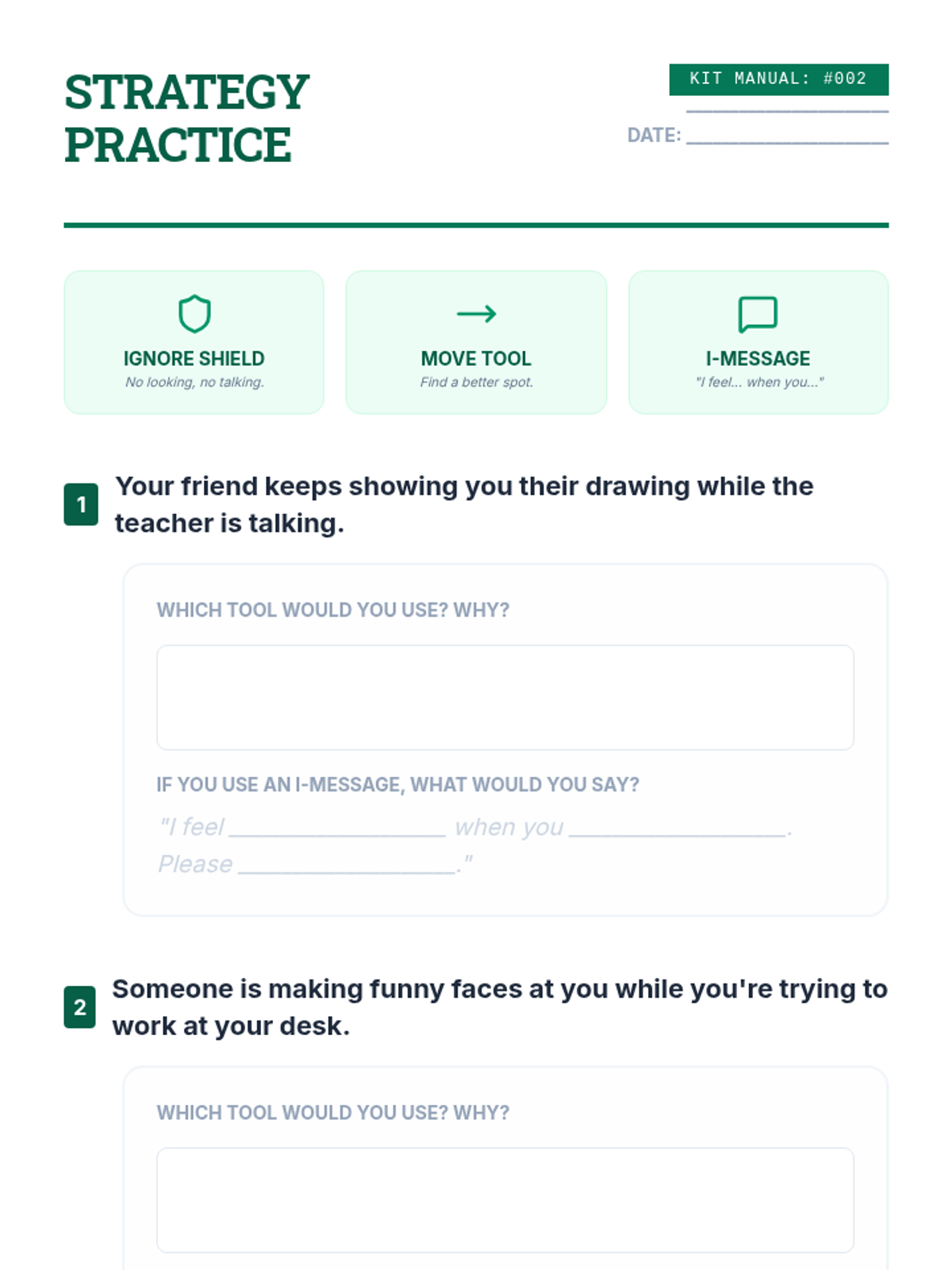 A comprehensive sequence focused on teaching students how to identify social problems, regulate their emotions, and apply specific strategies to handle annoying behaviors, distractions, and peer conflicts.