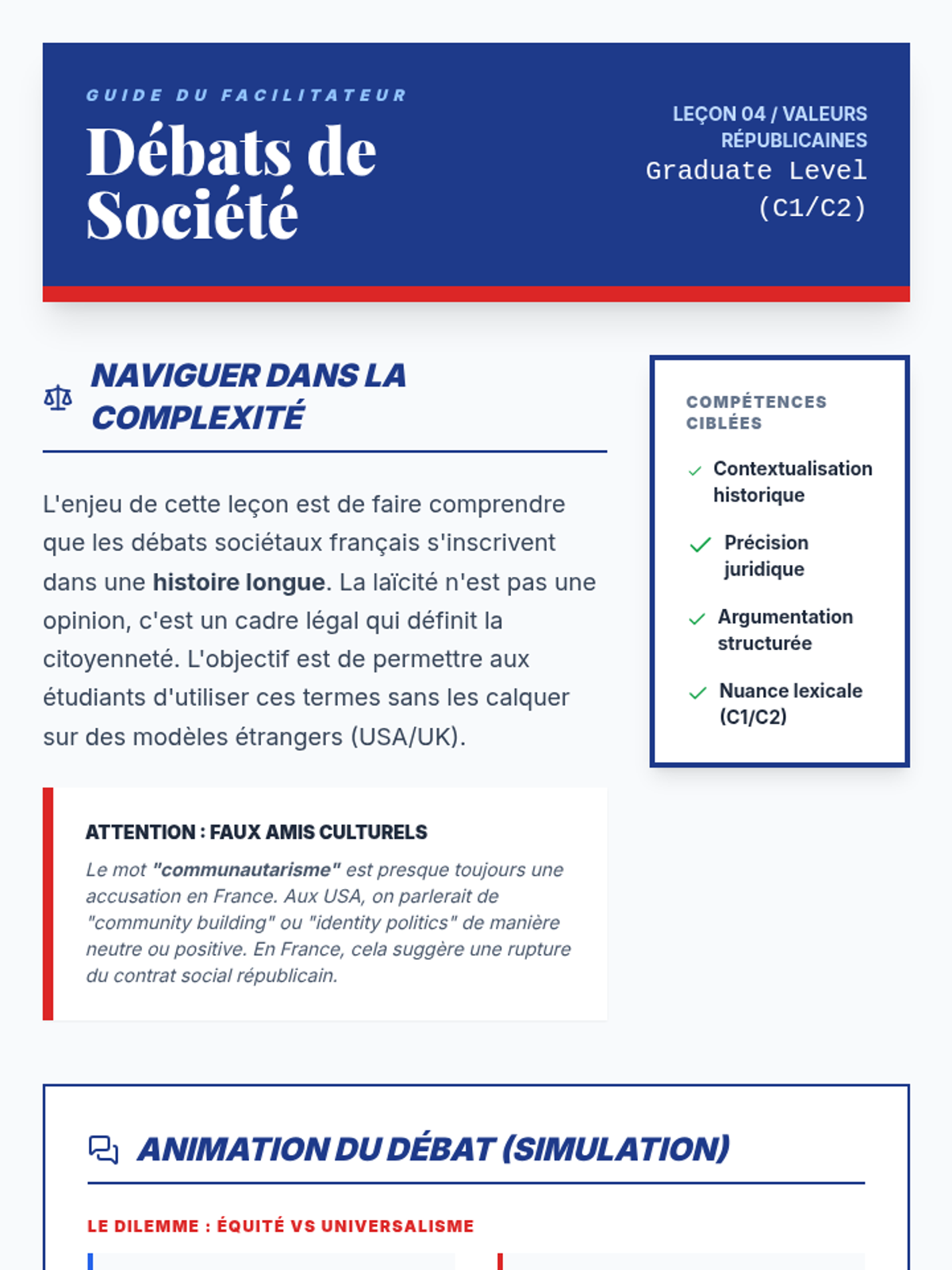 This advanced French sequence for graduate students explores the intersection of language, power, and media. Students master the specialized vocabulary of French institutions, analyze rhetorical strategies in political speeches, and decode the nuances of satirical press to understand how socio-political discourse shapes French national identity.