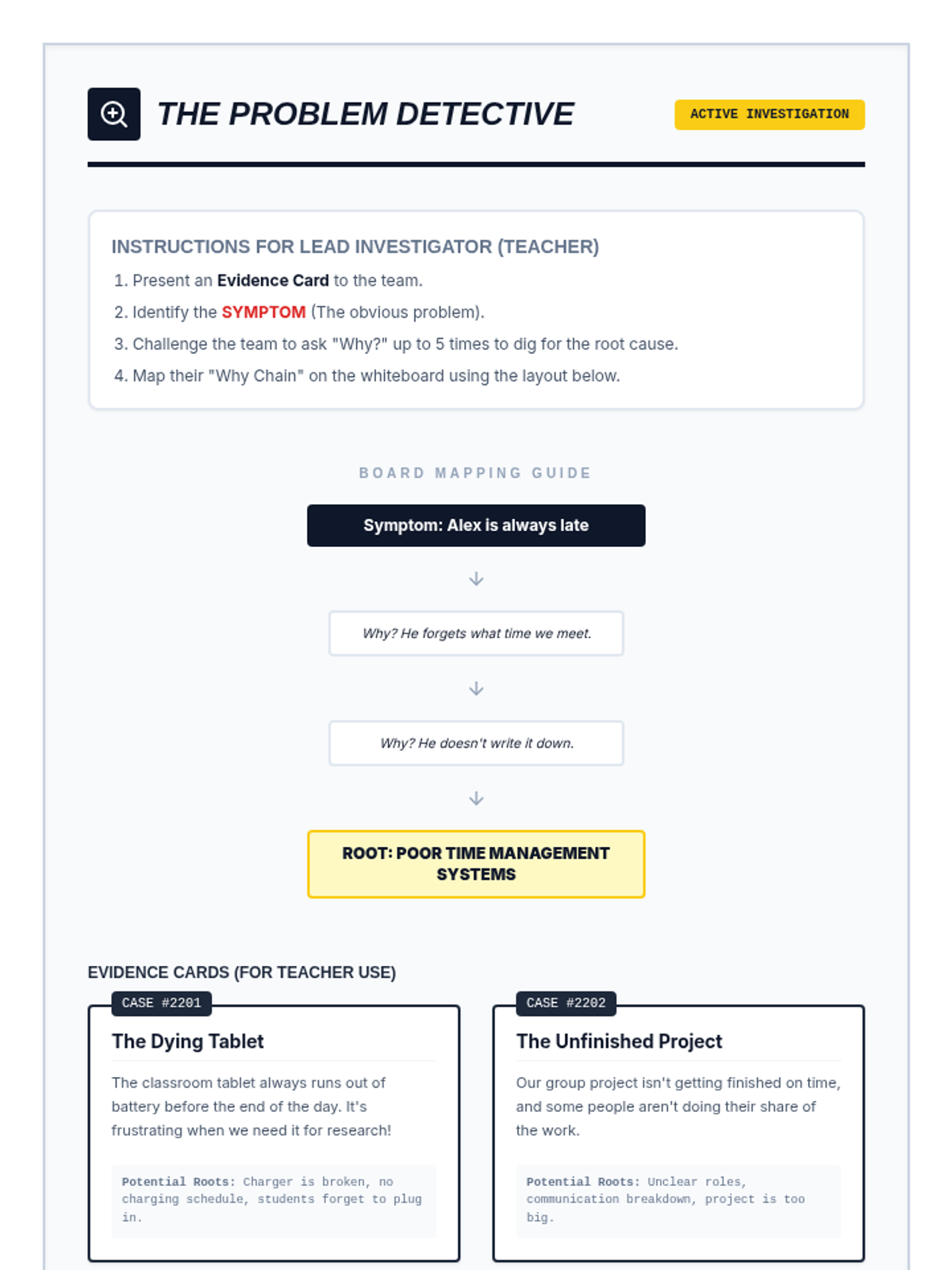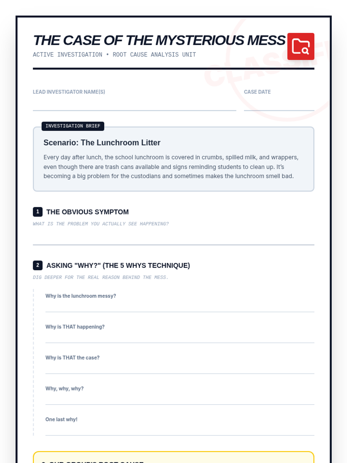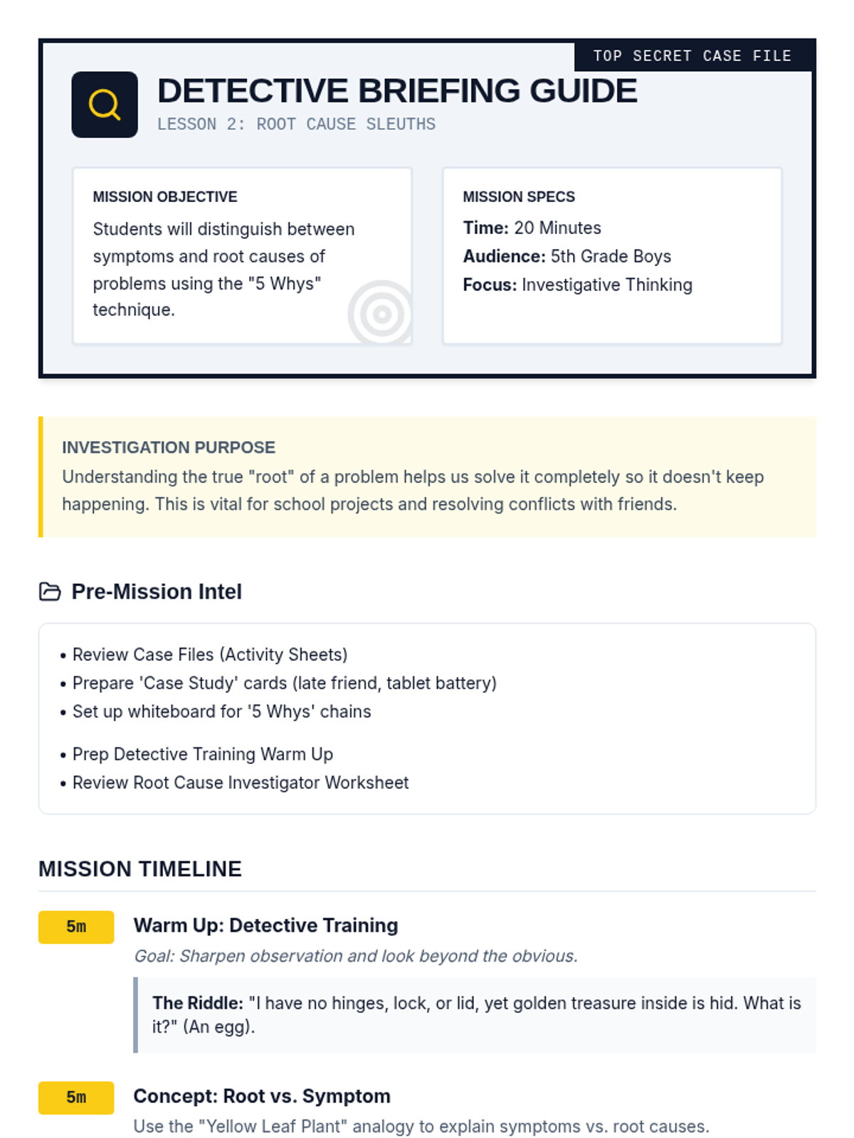 A high-energy, small-group sequence for 5th-grade boys focused on developing advanced problem-solving skills, from breaking down complex tasks to identifying root causes.