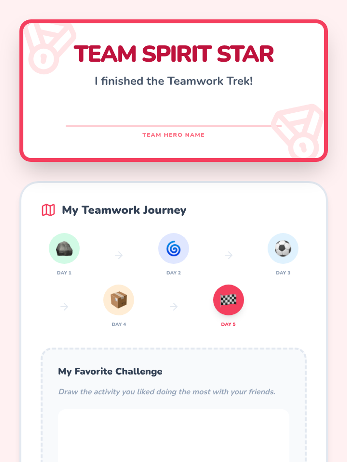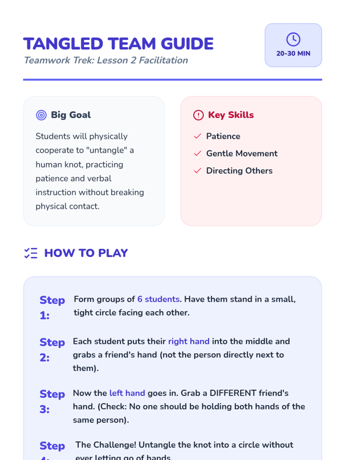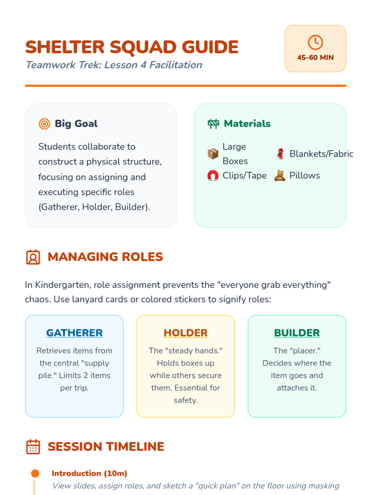 A Kindergarten Physical Education sequence focused on social-emotional skills through team building. Students learn to recognize emotions, offer encouragement, help peers in games, and celebrate together to build a supportive classroom culture.