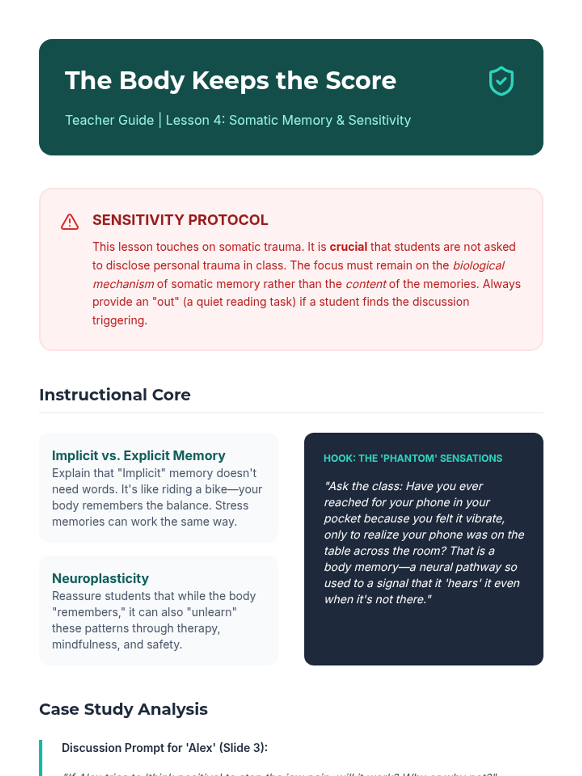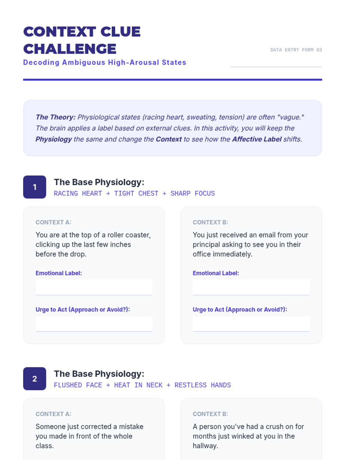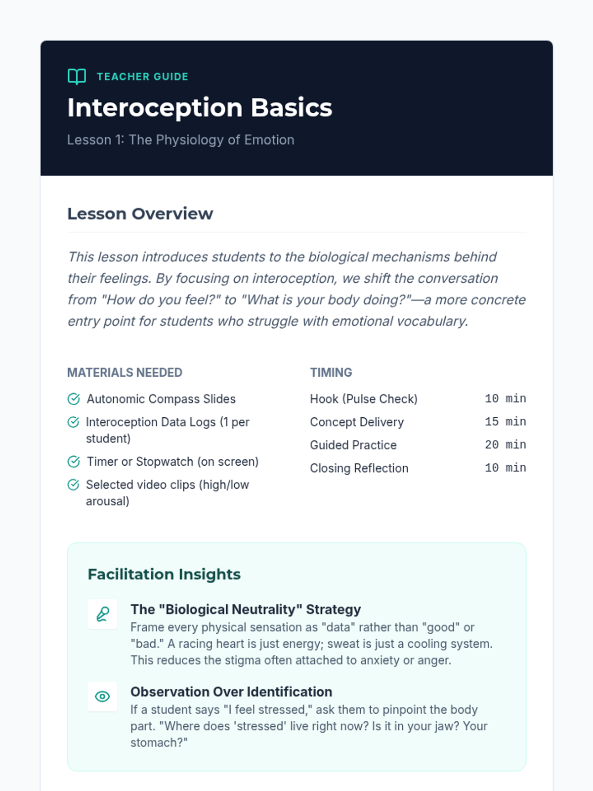 This sequence bridges the gap between physiology and psychology, teaching students to identify emotions through interoception. Students will investigate how the nervous system manifests emotions physically, map somatic markers to specific feelings, and create personal profiles for self-monitoring.