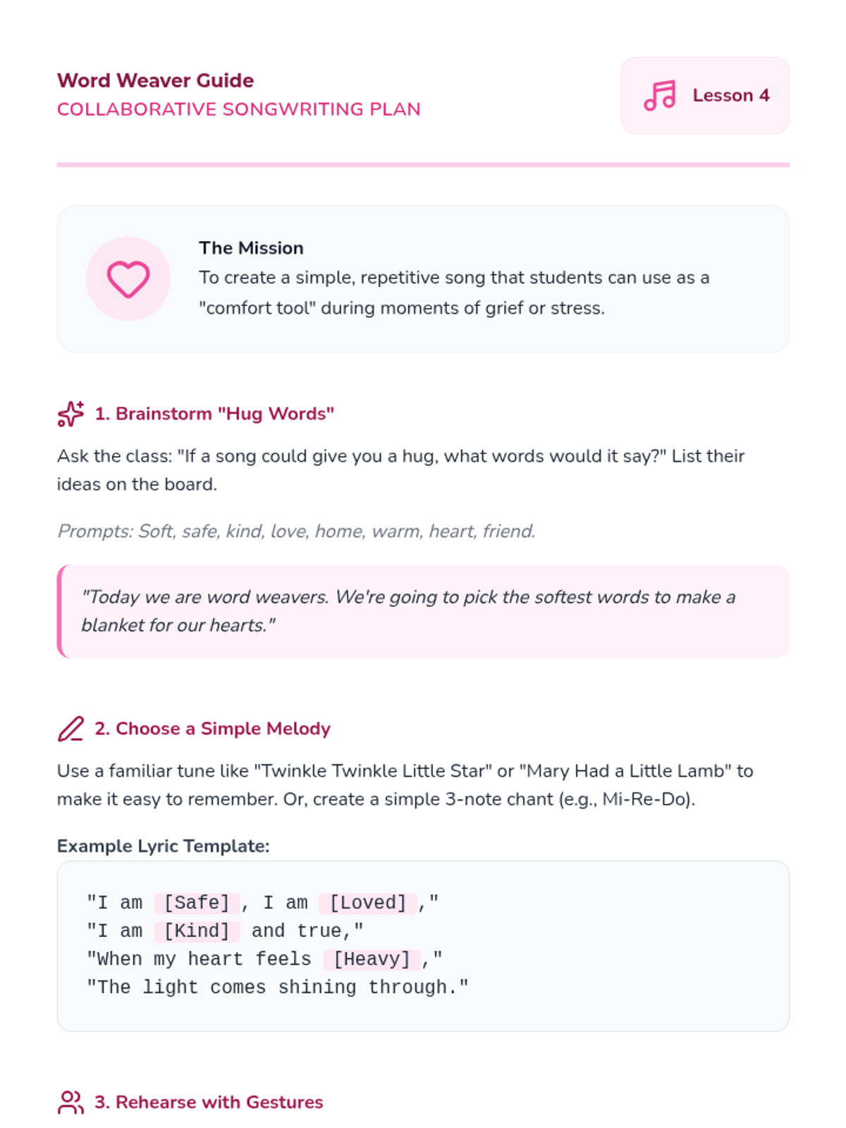 A Kindergarten sequence using music and movement to help students process grief and heavy emotions. Through somatic engagement, students explore the connection between sound, rhythm, and their physical sensations to develop self-regulation skills.