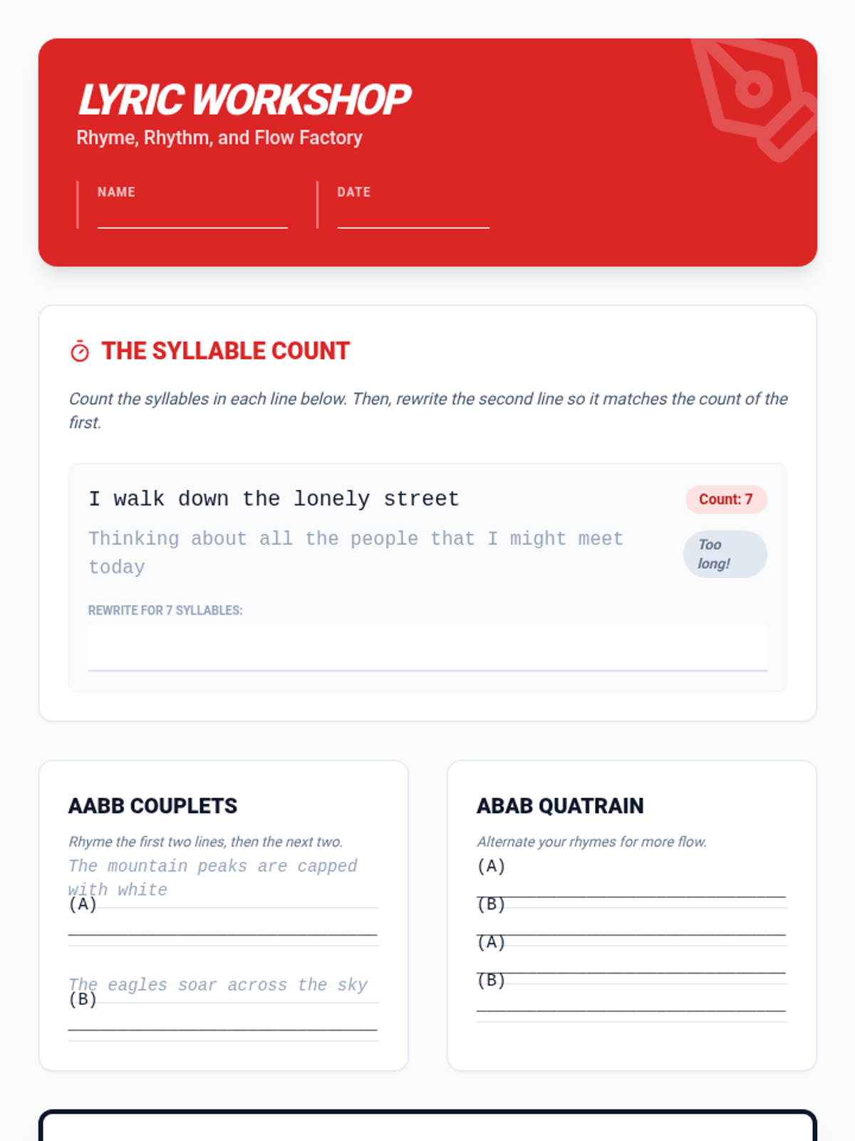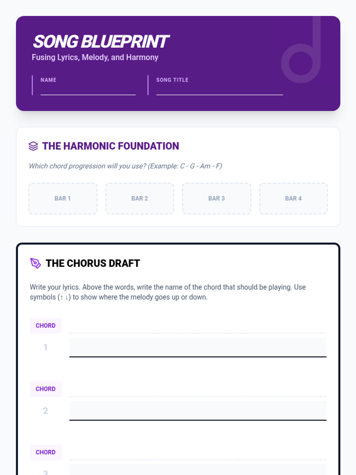 Students journey through the process of songwriting, from deconstructing popular forms to composing original lyrics and harmonic progressions. The sequence culminates in a live or recorded showcase of original student work, emphasizing the synergy between words and music.