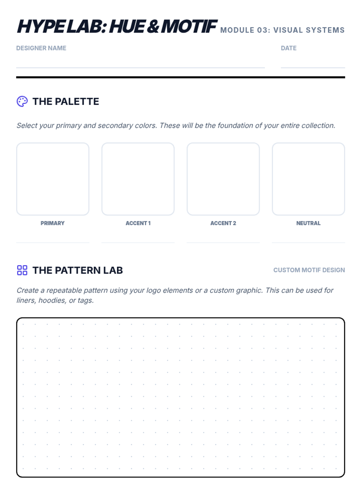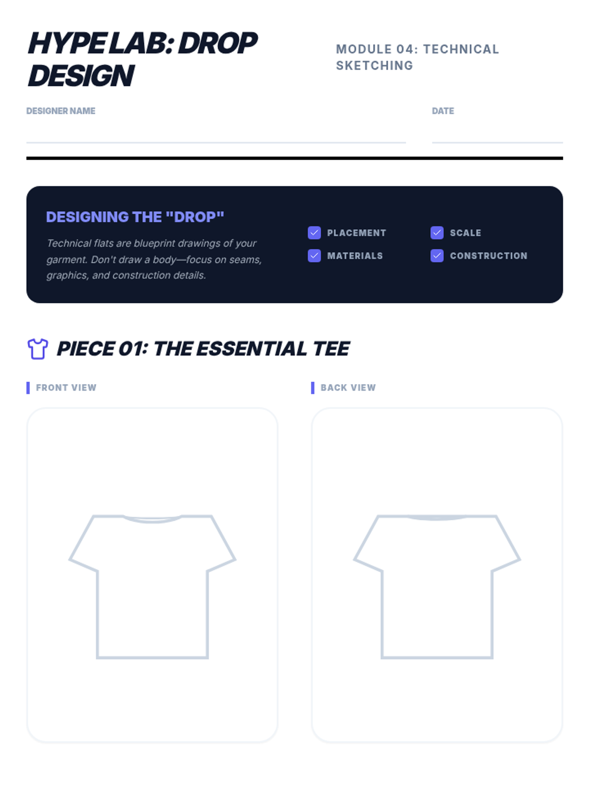A comprehensive project-based unit where students develop a clothing brand from concept to technical design, focusing on visual identity, color theory, and garment construction.