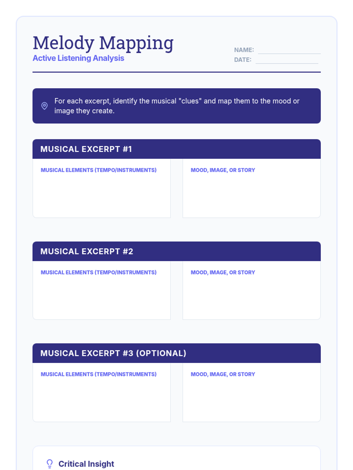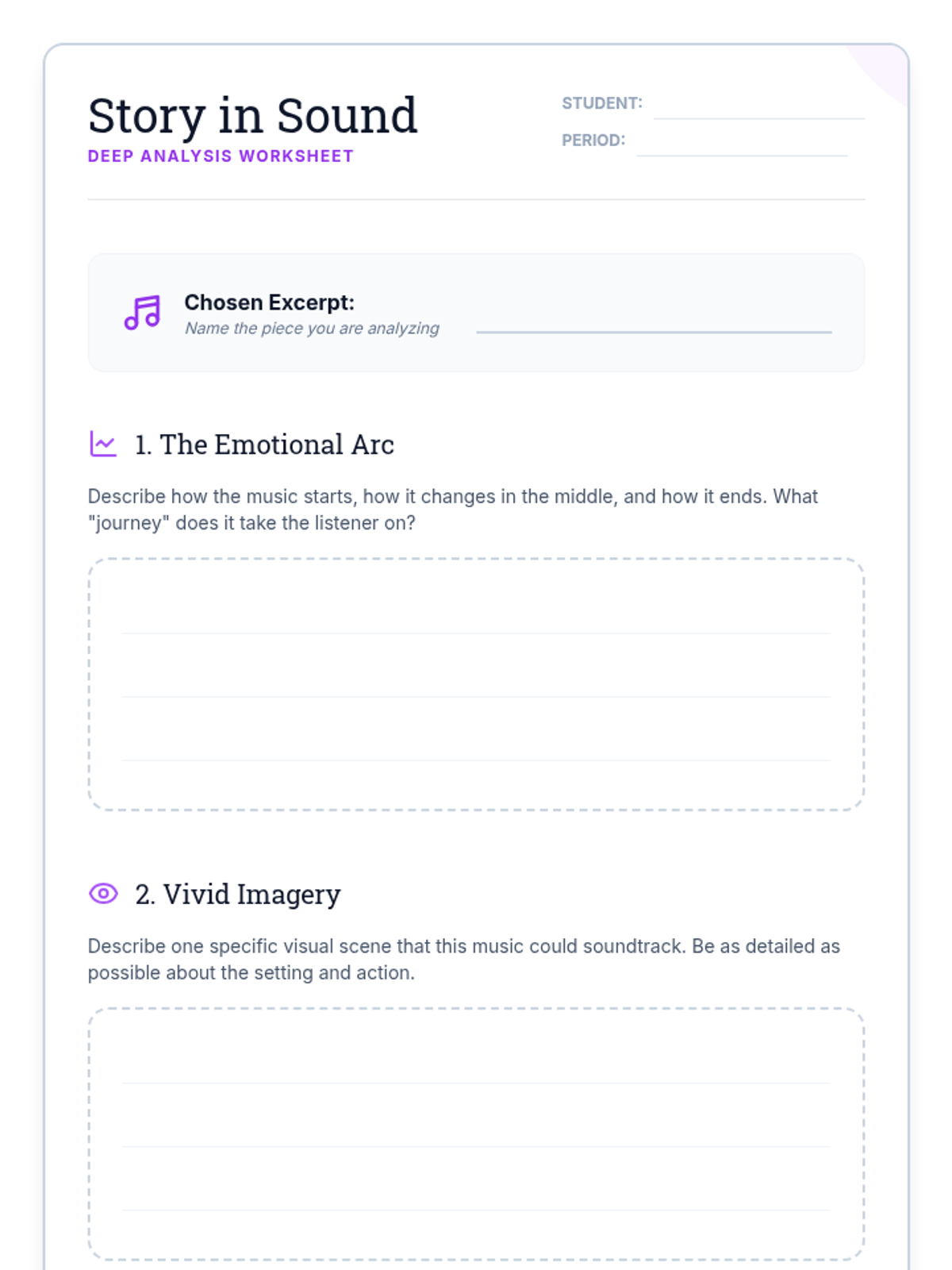 A comprehensive score analysis framework for middle school band and choir ensembles that integrates music literacy with text-based evidence and academic rigor. Students learn to 'read' a musical score as a primary source document, identifying technical elements and structural patterns while providing specific citations for their findings.