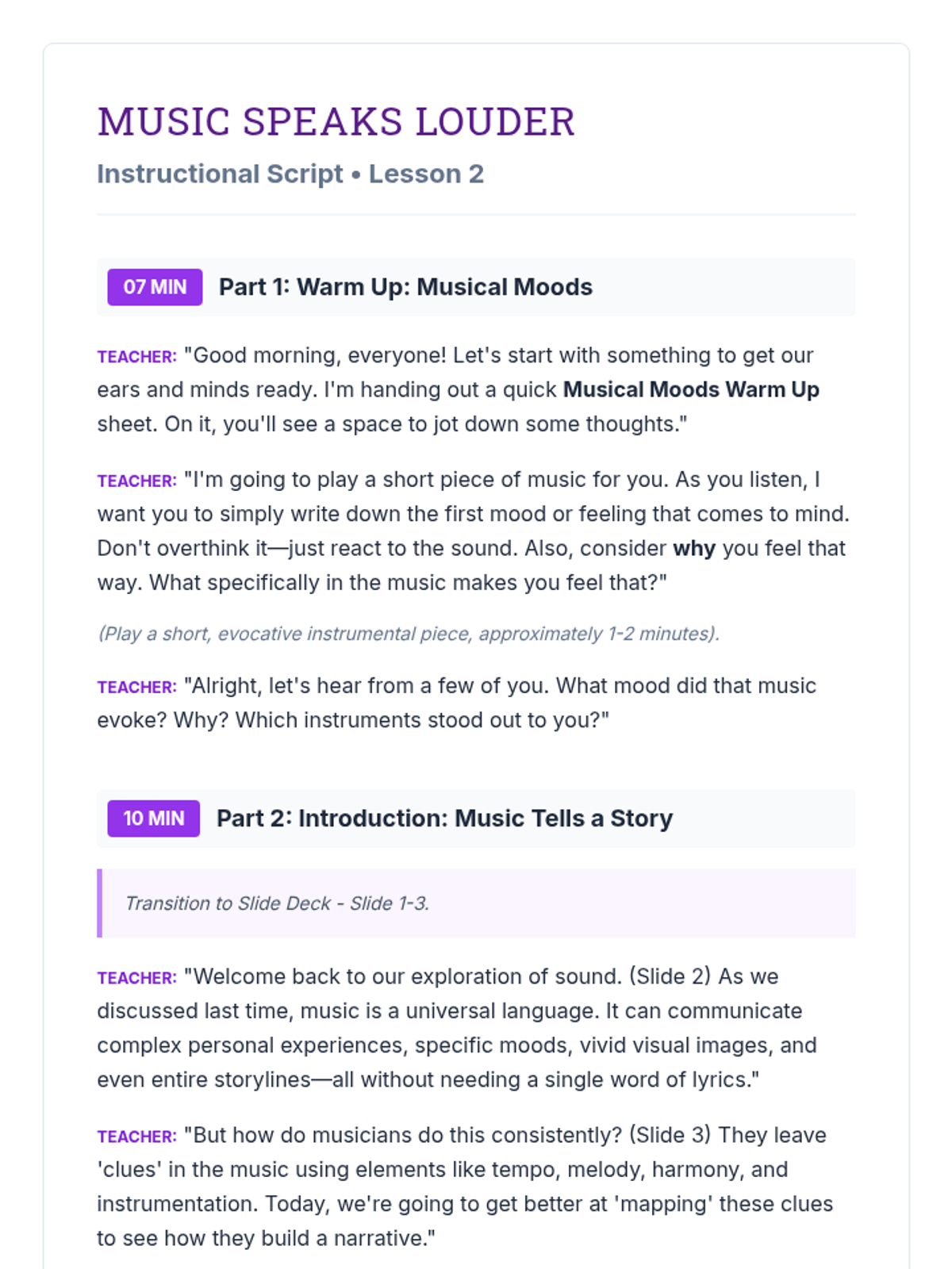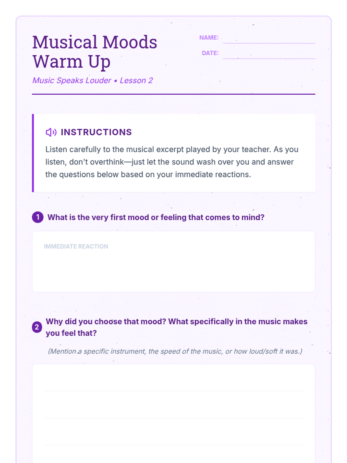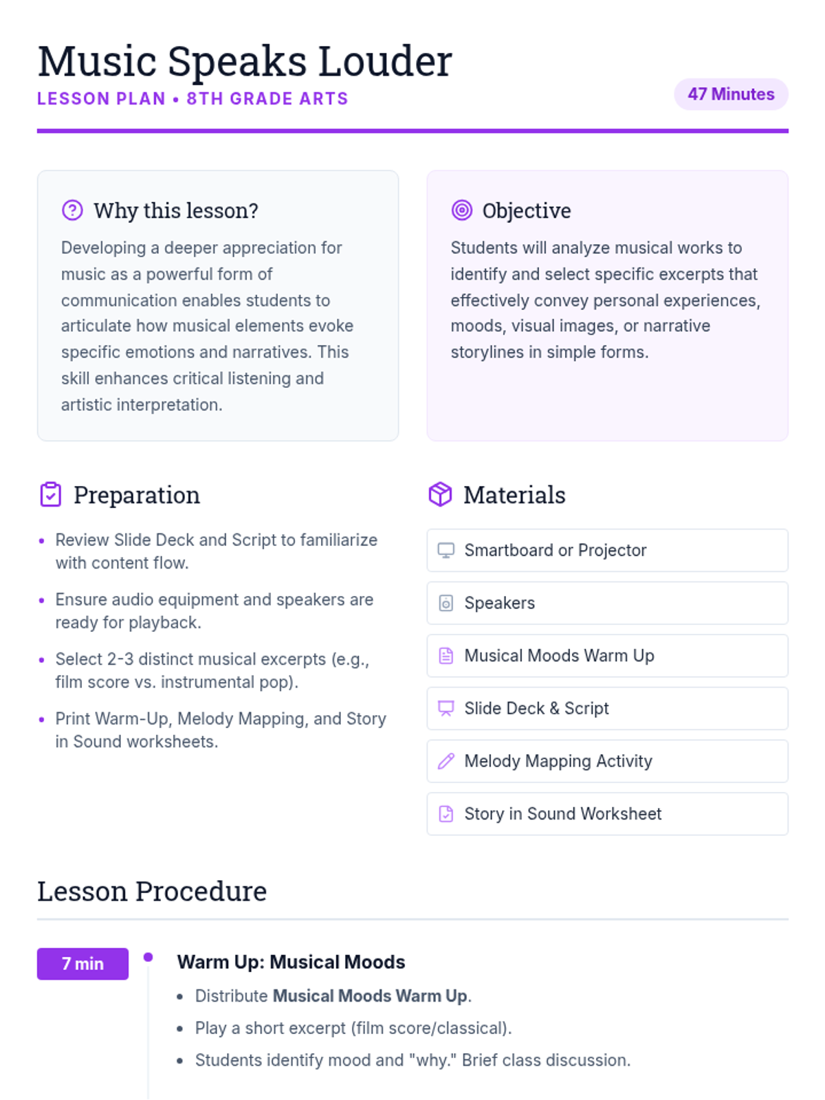 A two-part sequence exploring how music communicates emotions, stories, and visual imagery through various musical elements and excerpts. Students analyze how tempo, melody, and instrumentation shape our perception of sound.