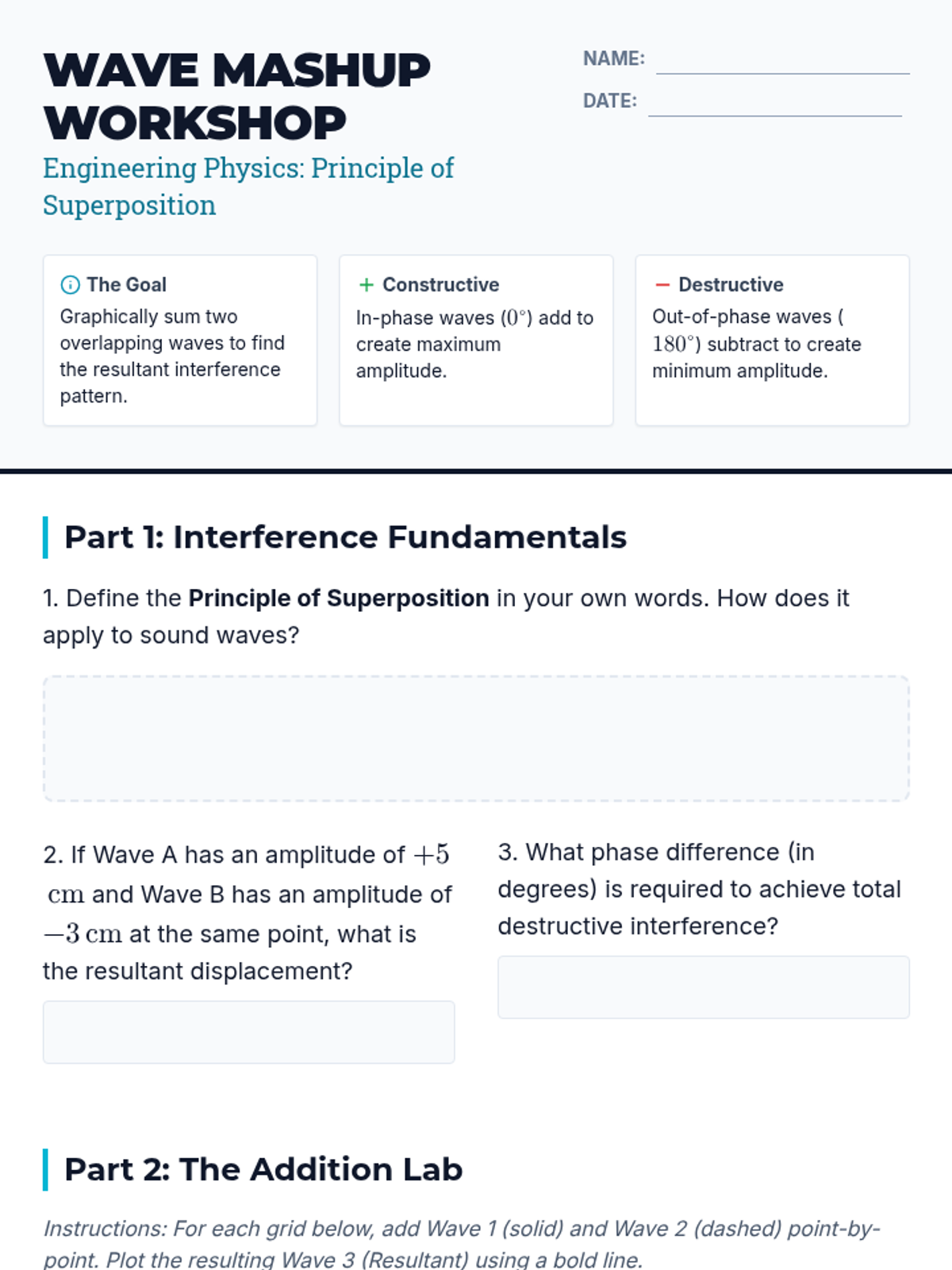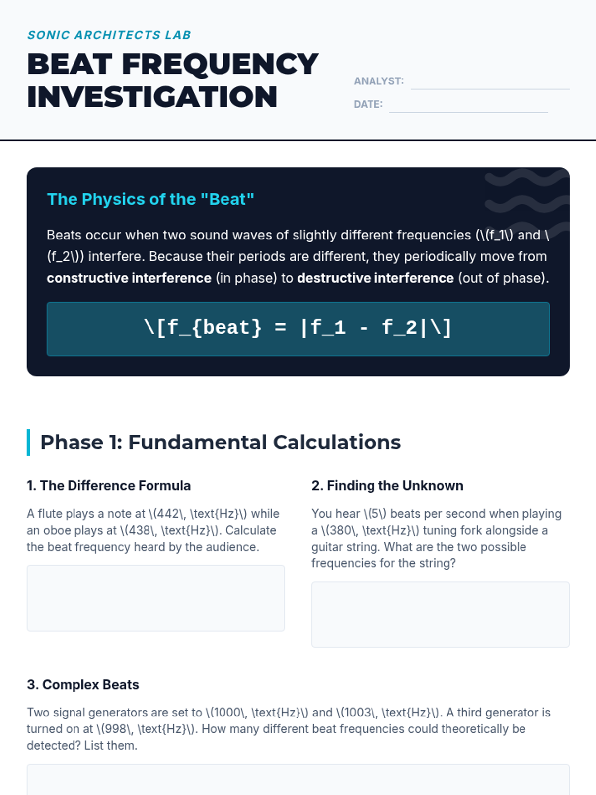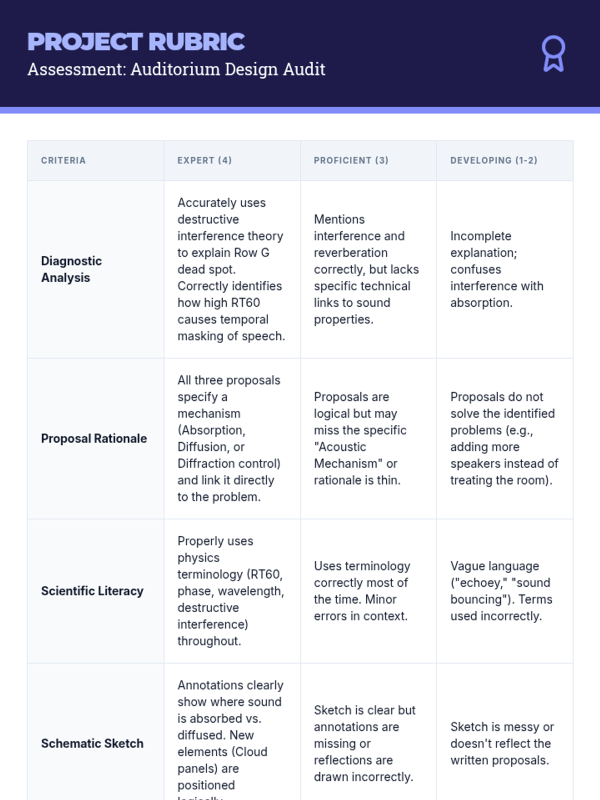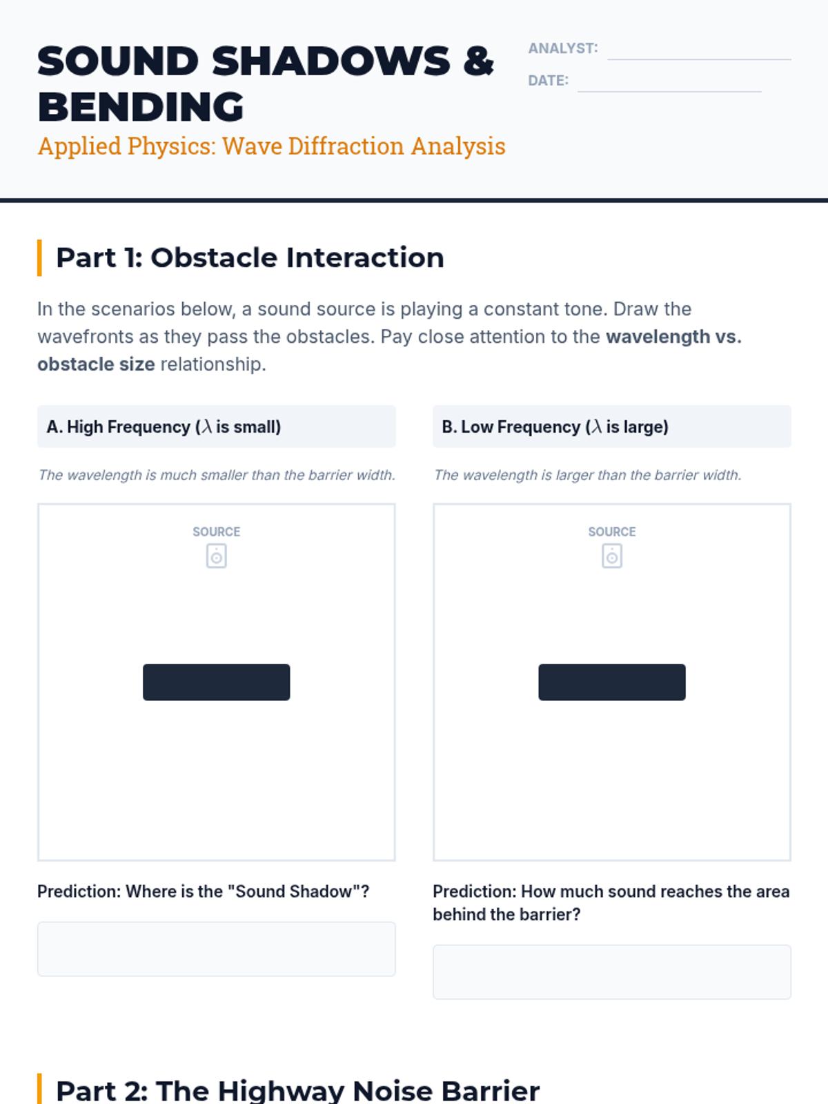 This 11th-grade physics sequence explores the engineering applications of sound interference, progressing from fundamental wave superposition to the complex acoustic design of modern structures and noise-canceling technology.