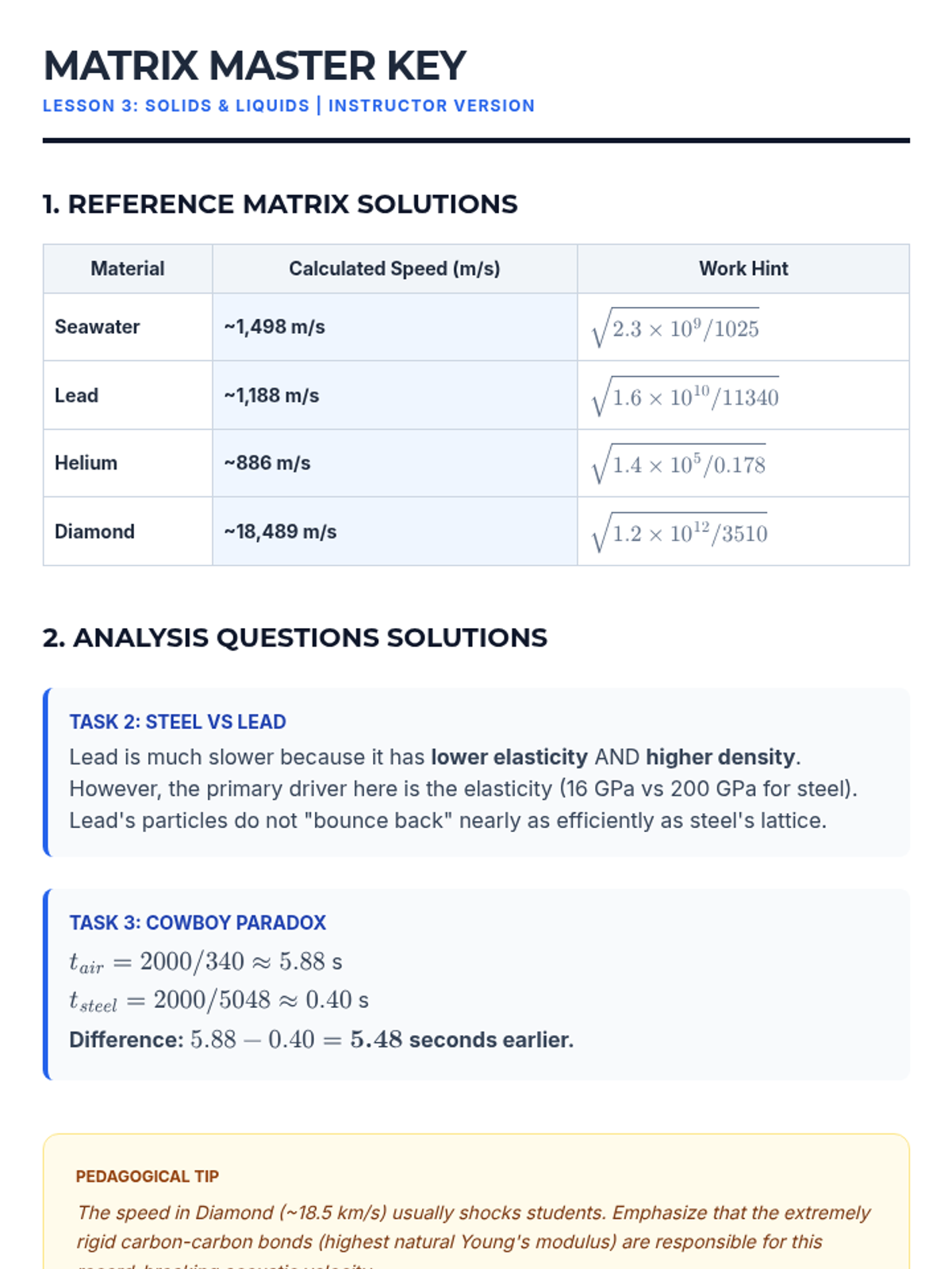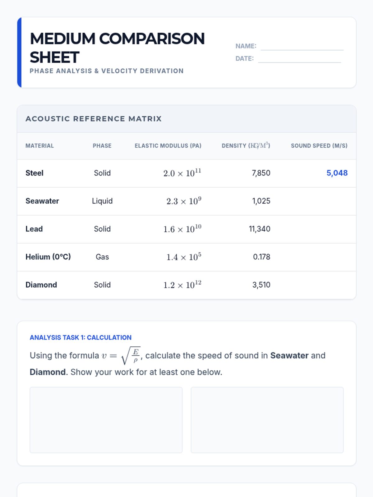 A comprehensive 11th-grade physics unit investigating how the physical properties of matter—density, elasticity, and temperature—dictate the speed and behavior of sound waves through various media.