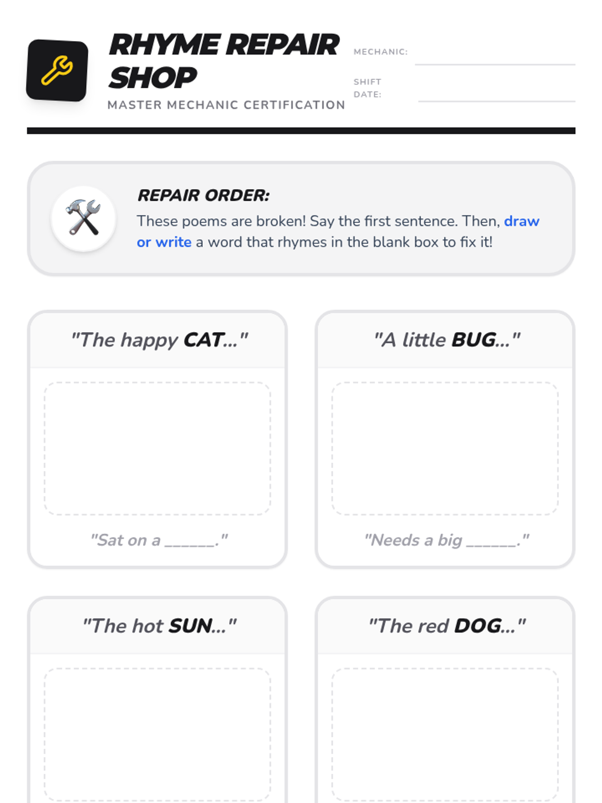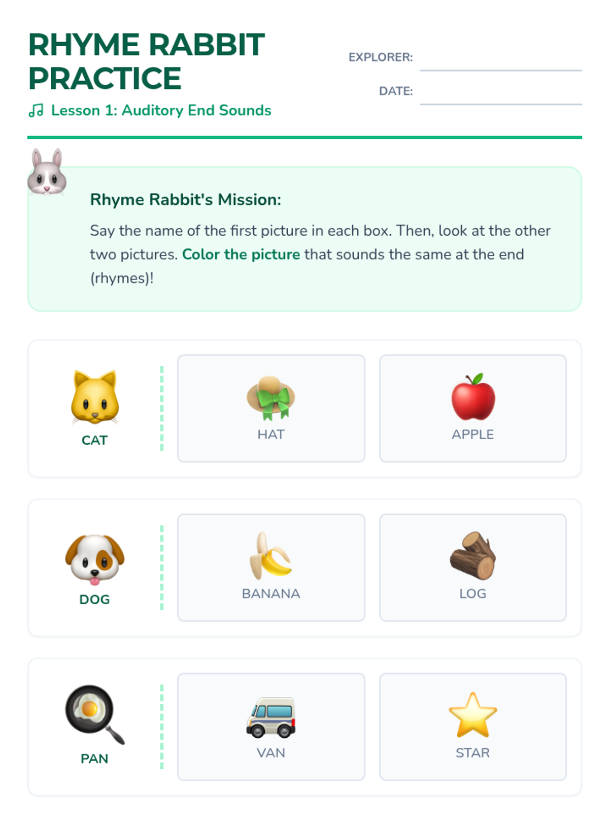 A Kindergarten phonics sequence focusing on phonological awareness through rhyming, progressing from auditory recognition to independent rhyme generation.