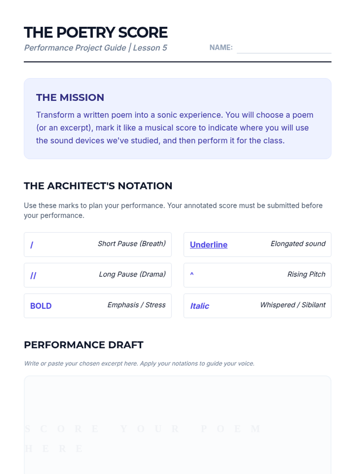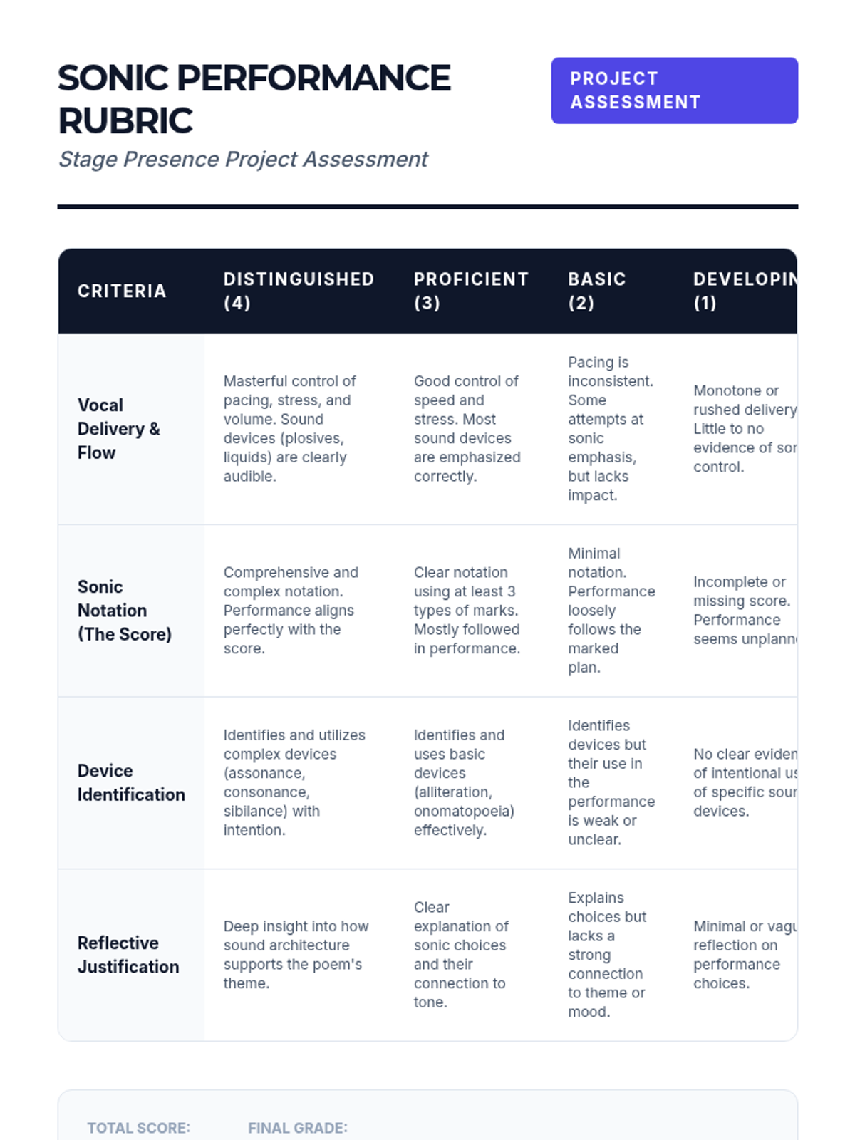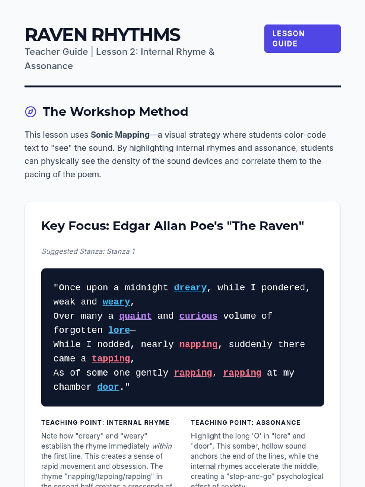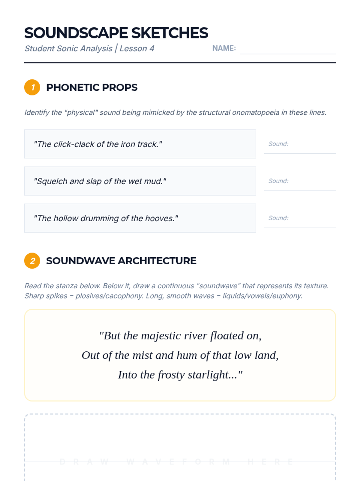 This sequence explores the auditory experience of poetry, focusing on how sound devices like euphony, cacophony, and internal rhyme manipulate emotional responses. Students move from basic identification to complex evaluation of poems as oral traditions designed for the ear.