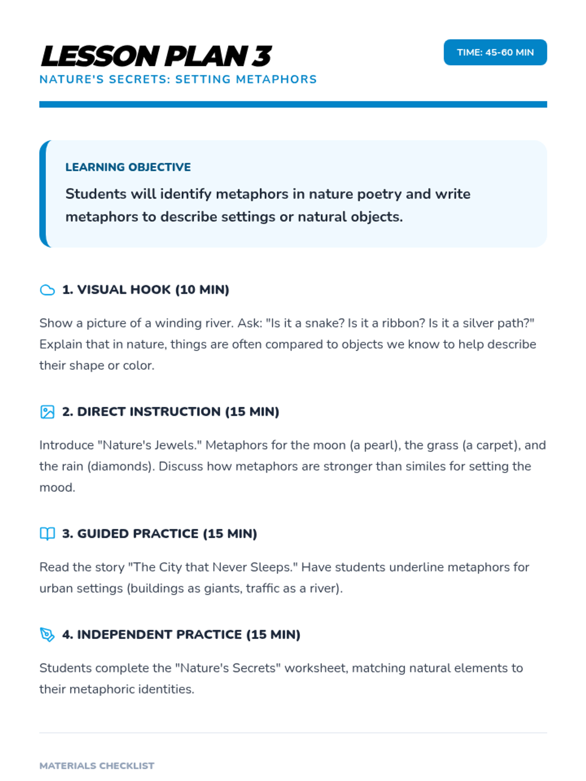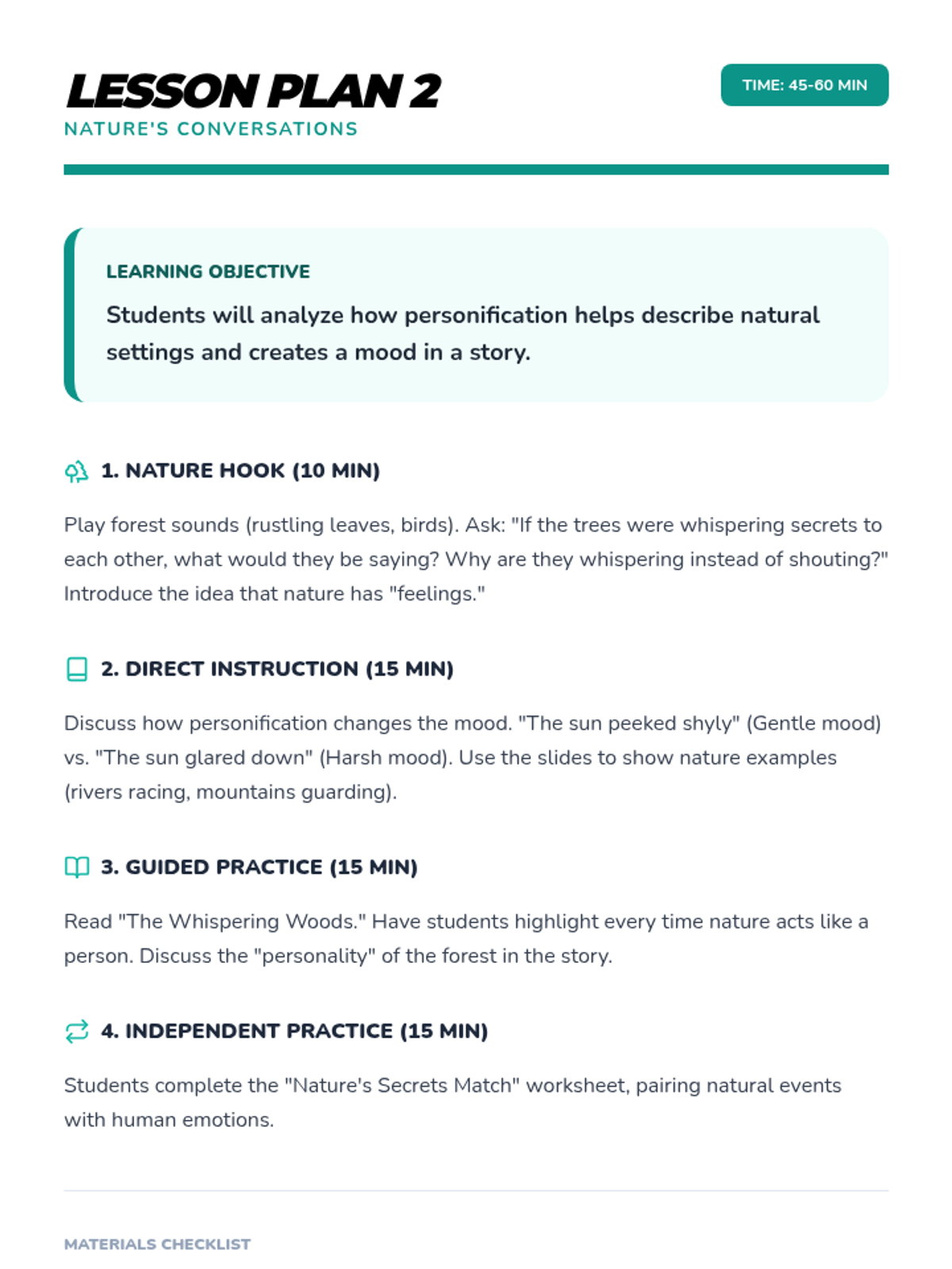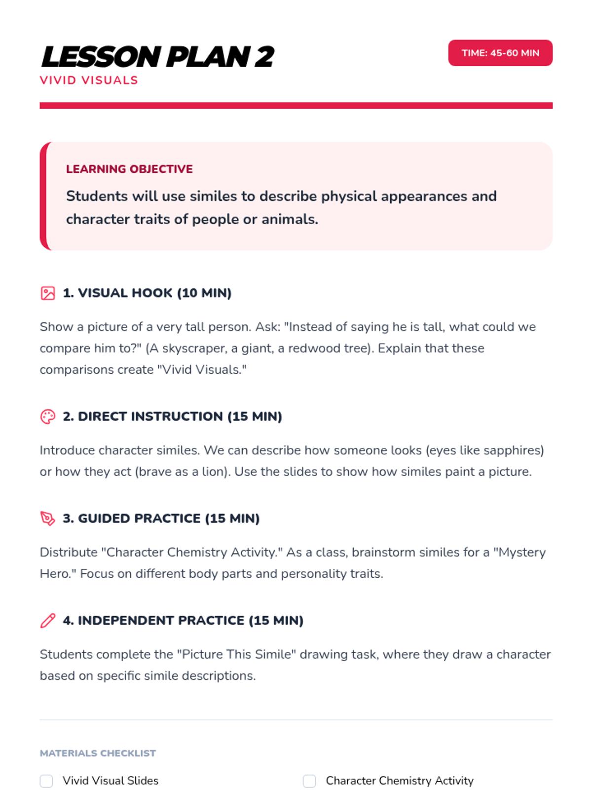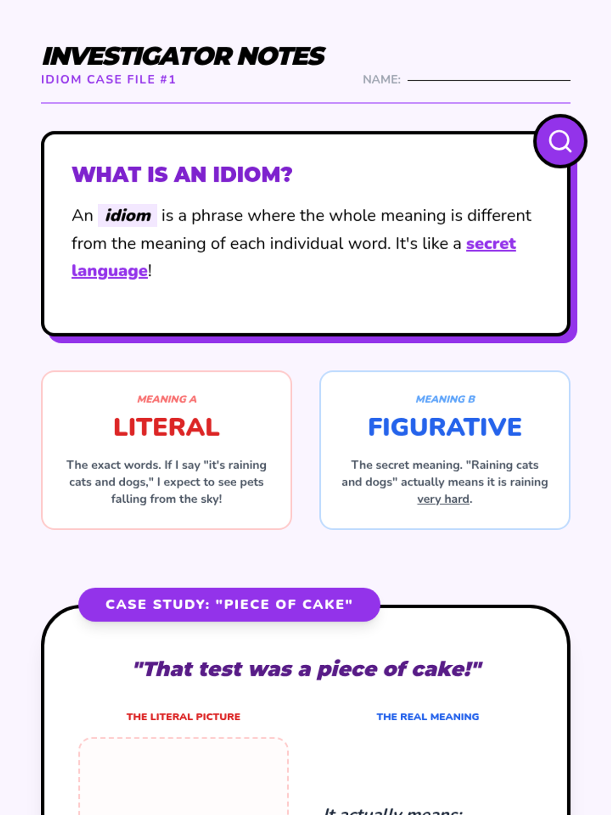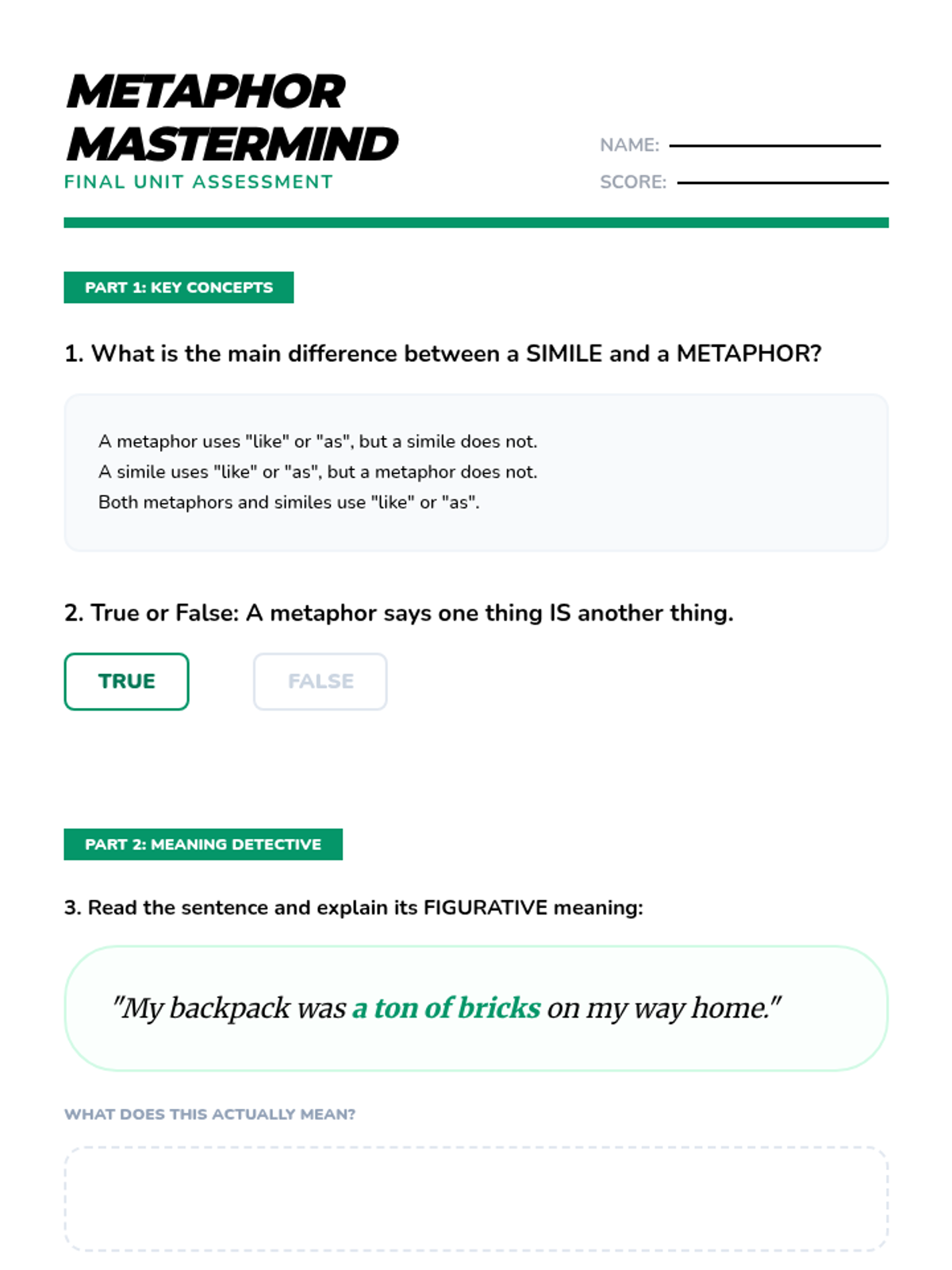 A comprehensive multi-unit sequence for 3rd and 4th grade students covering key literary devices: Introduction to Figurative Language, Onomatopoeia, Similes, Metaphors, Personification, and Idioms. Each unit provides 5 lesson plans, interactive notebook resources, and a wide variety of activities and stories designed to improve descriptive writing and reading comprehension.