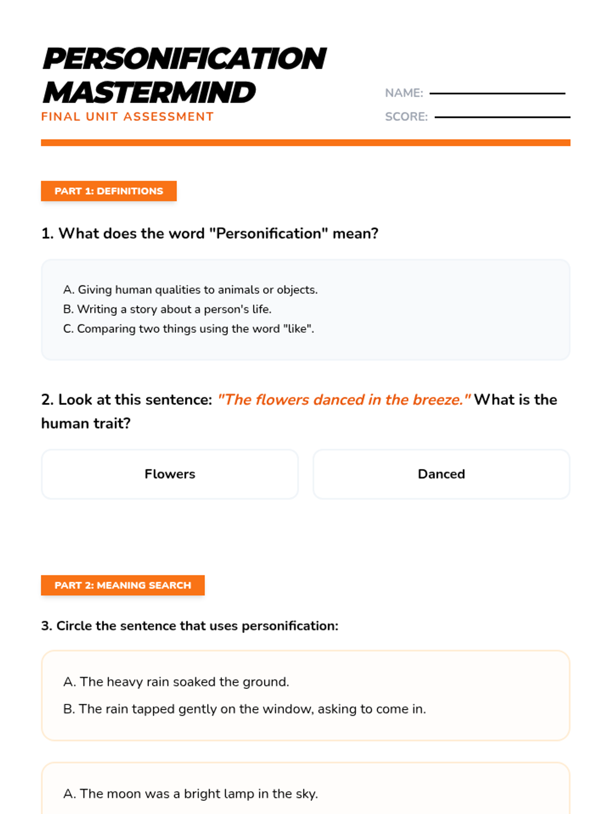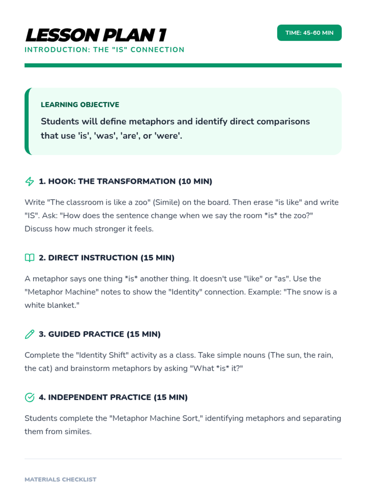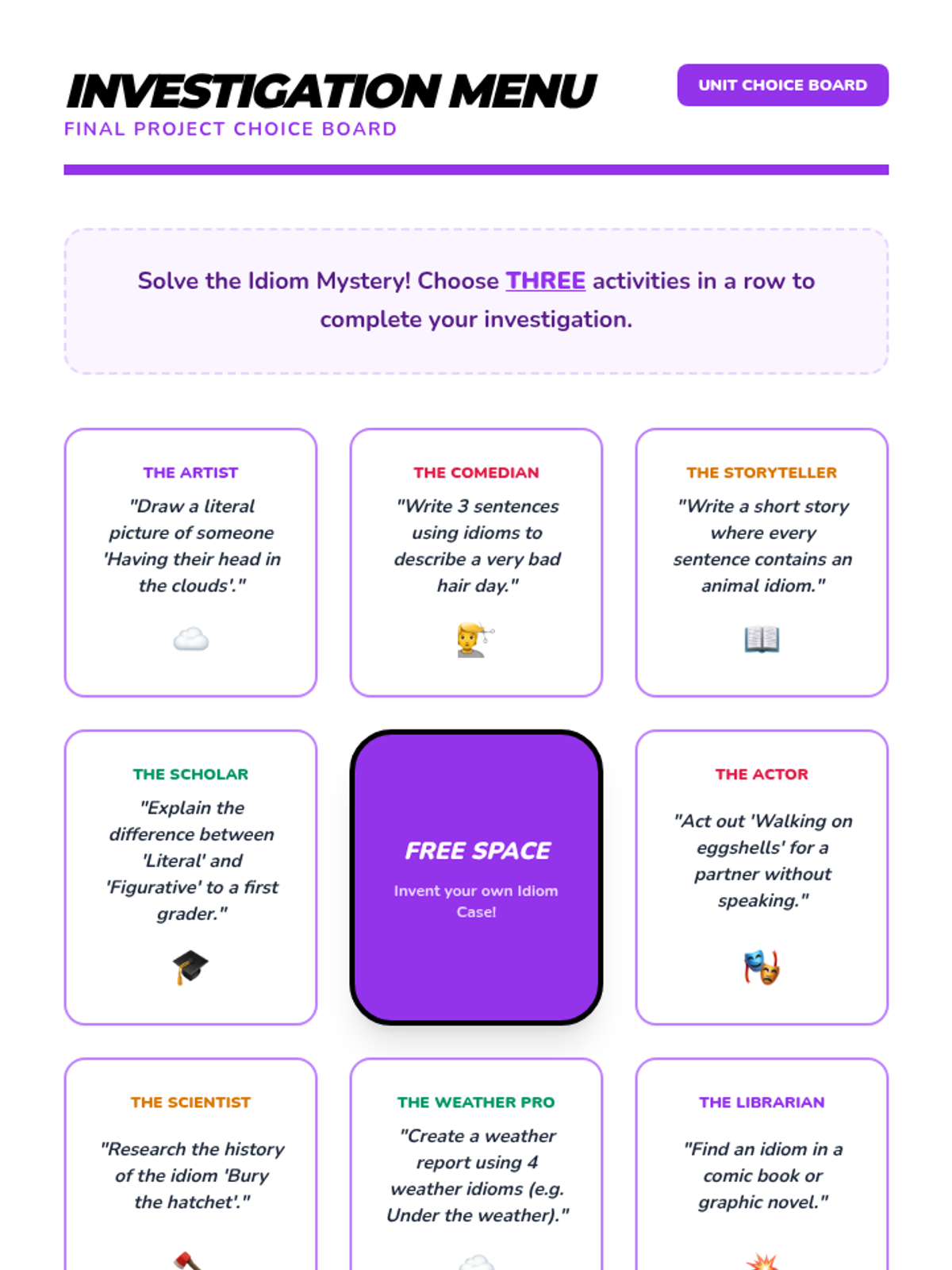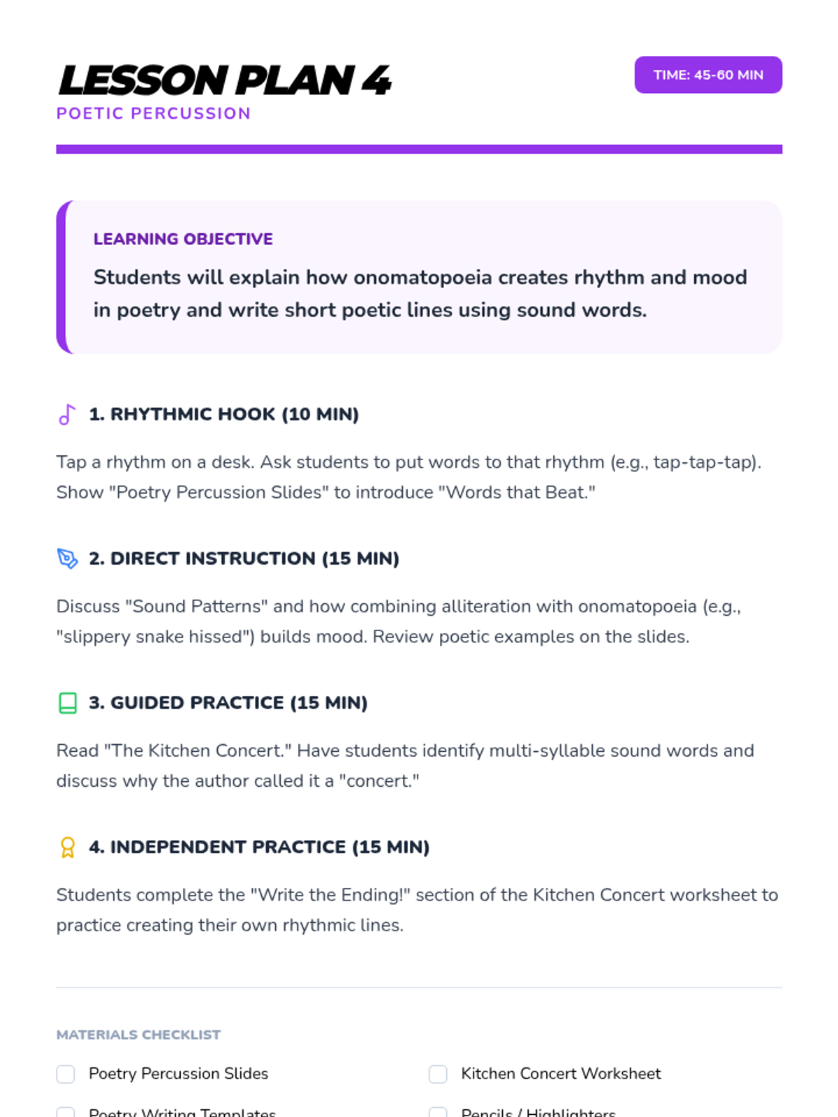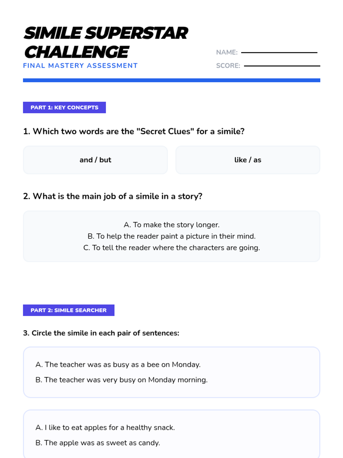 A comprehensive multi-unit sequence for 3rd and 4th grade students covering key literary devices: Introduction to Figurative Language, Onomatopoeia, Similes, Metaphors, Personification, and Idioms. Each unit provides 5 lesson plans, interactive notebook resources, and a wide variety of activities and stories designed to improve descriptive writing and reading comprehension.