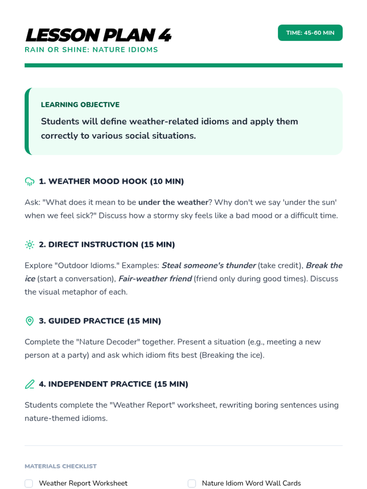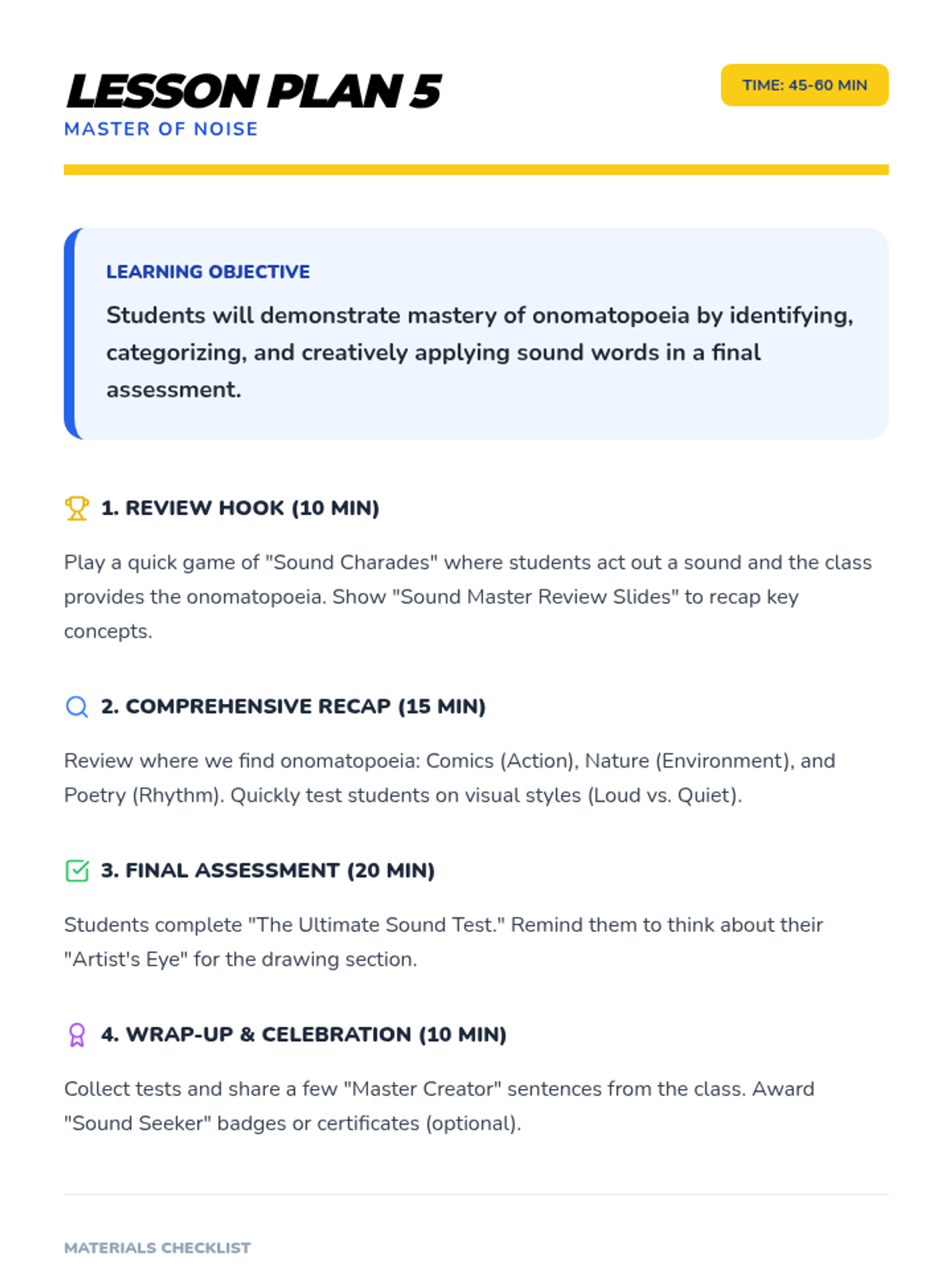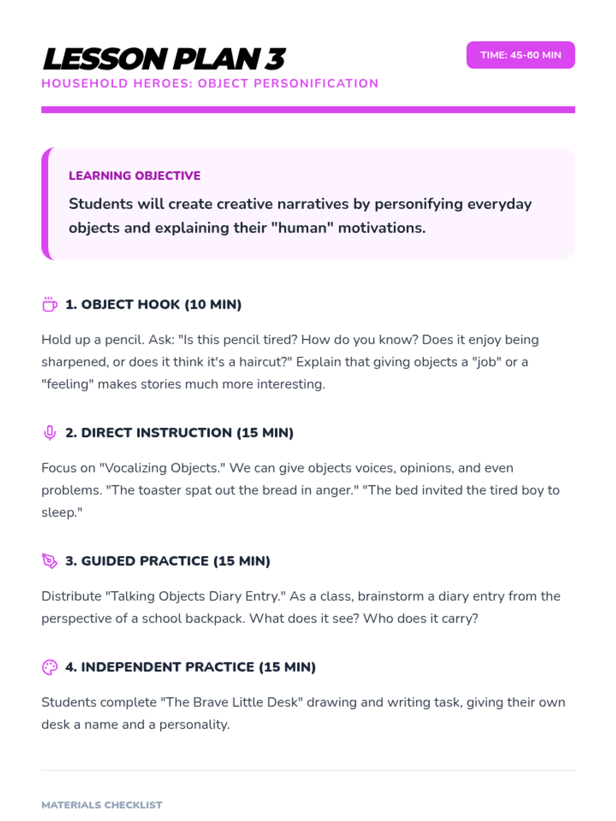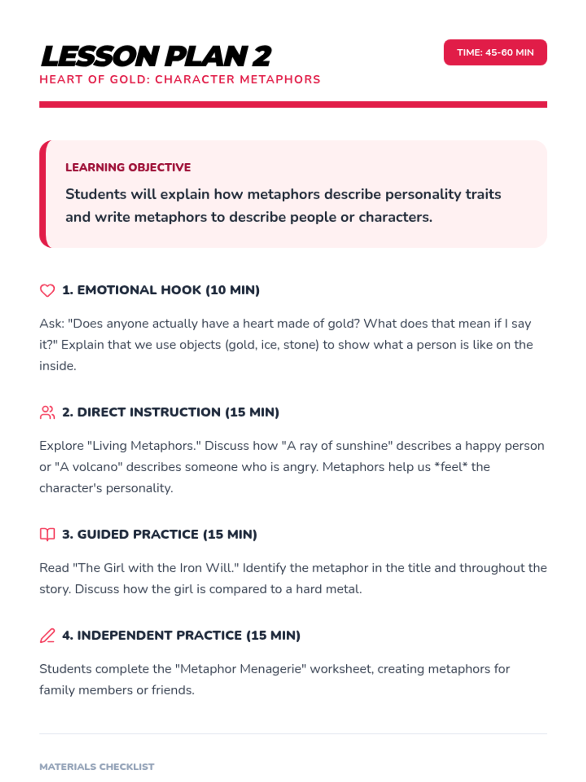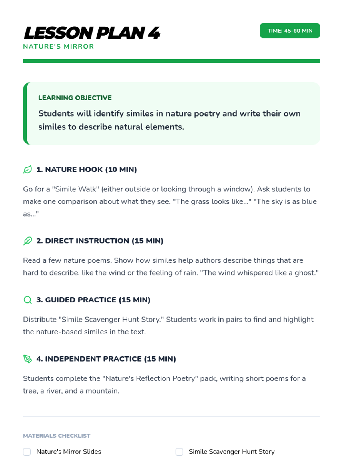 A comprehensive multi-unit sequence for 3rd and 4th grade students covering key literary devices: Introduction to Figurative Language, Onomatopoeia, Similes, Metaphors, Personification, and Idioms. Each unit provides 5 lesson plans, interactive notebook resources, and a wide variety of activities and stories designed to improve descriptive writing and reading comprehension.