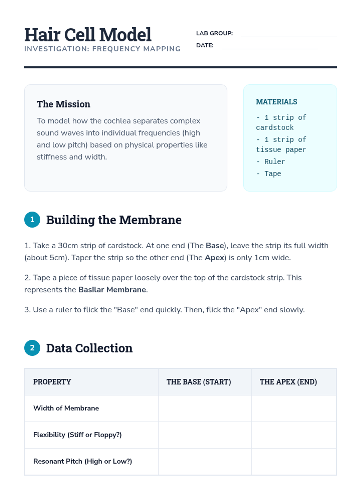 This sequence explores the intersection of physics and biology through the lens of human hearing. Students trace the transformation of sound waves into neural signals, analyze the logarithmic nature of sound intensity, and investigate the impact of noise on auditory health.